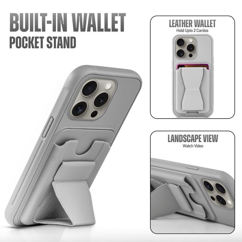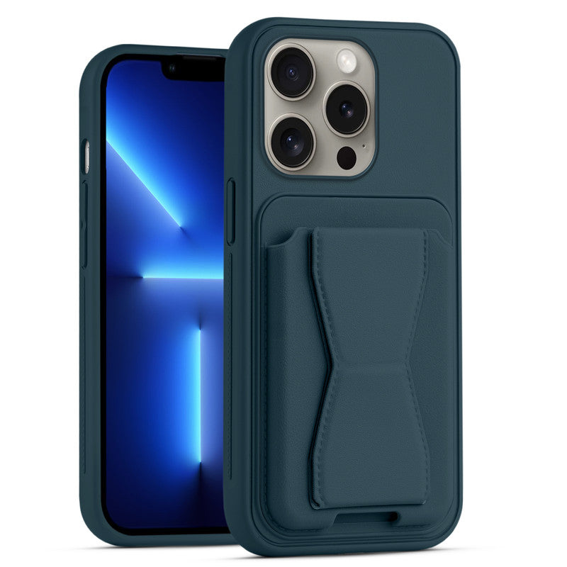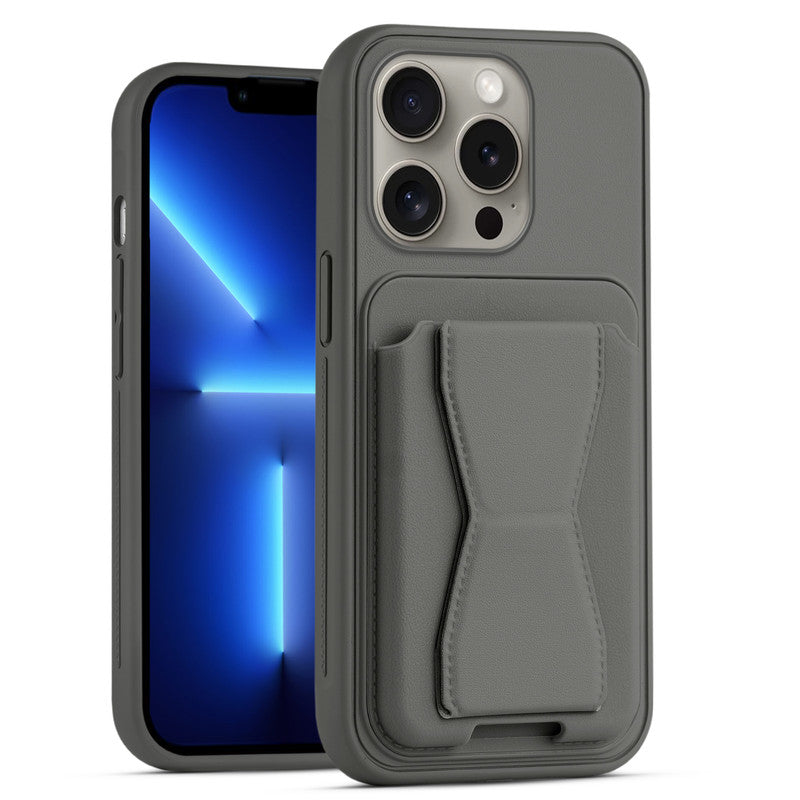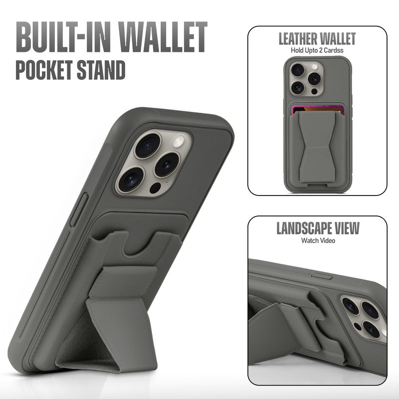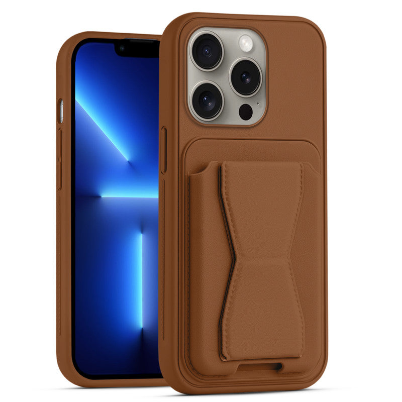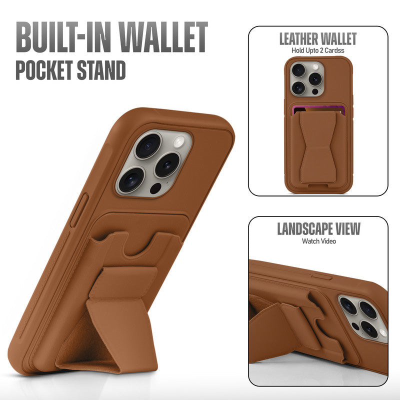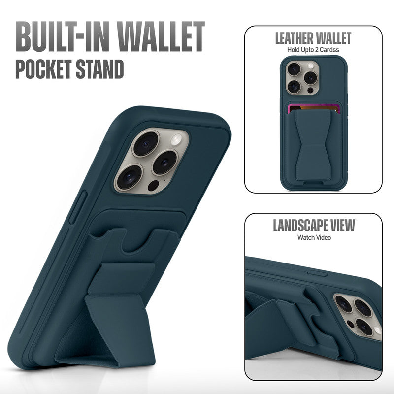 All in One Premium Leather Back Cover for Apple iPhone 13 Pro with Card Slot & Foldable Grip Holder