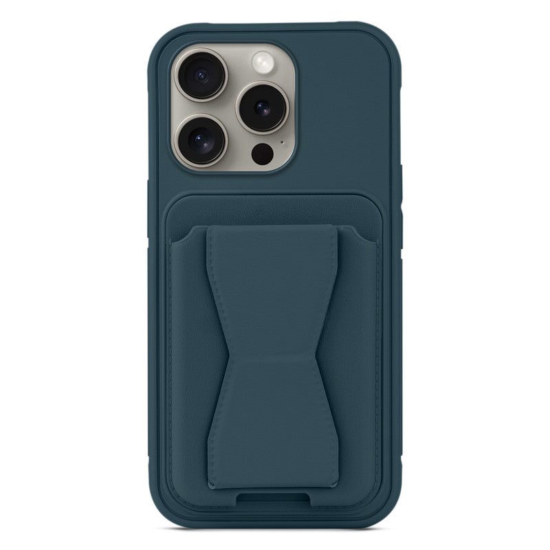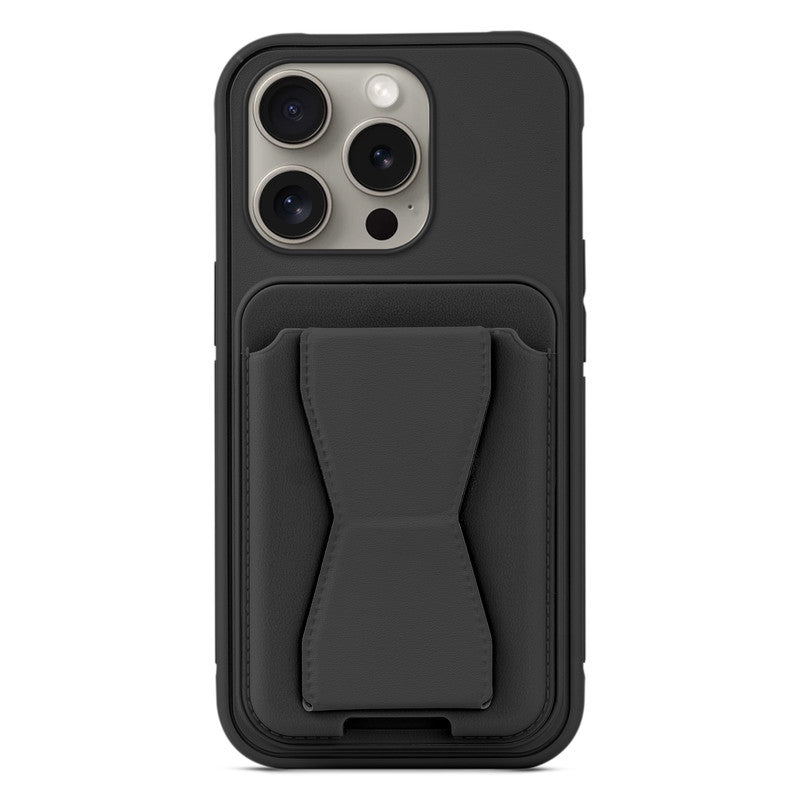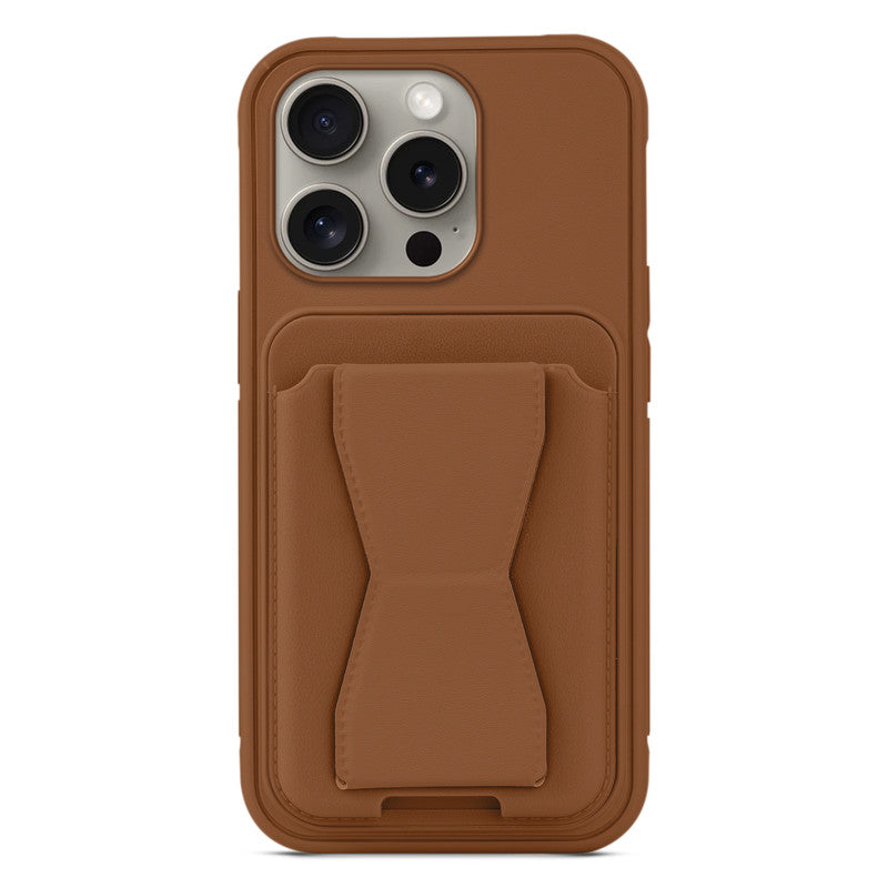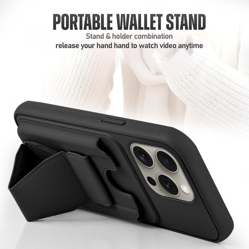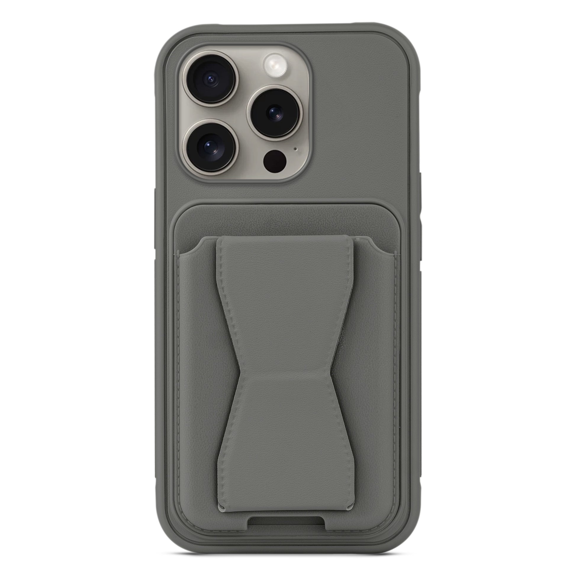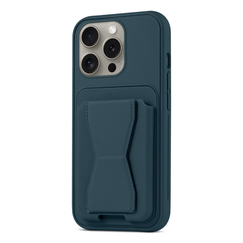 All in One Premium Leather Back Cover for Apple iPhone 13 Pro with Card Slot & Foldable Grip Holder