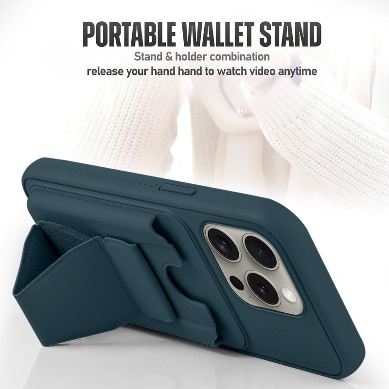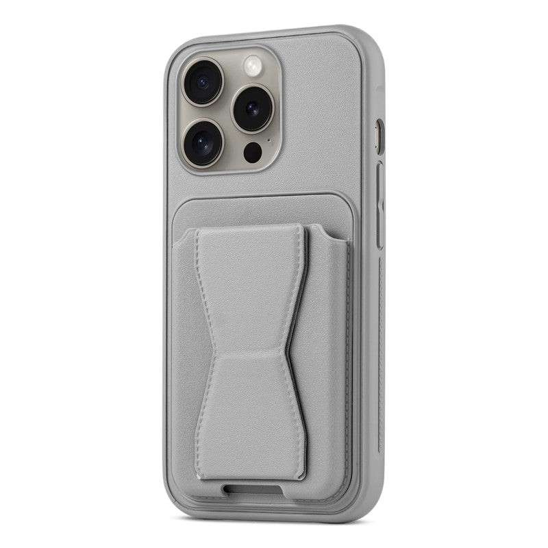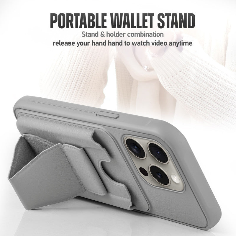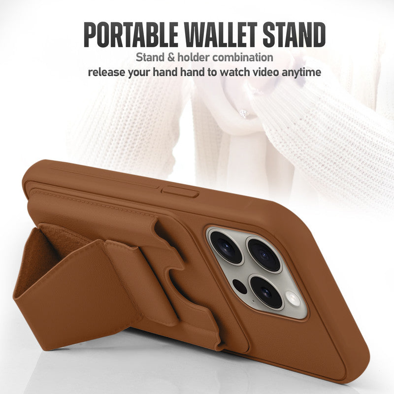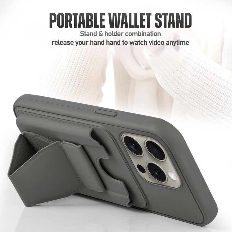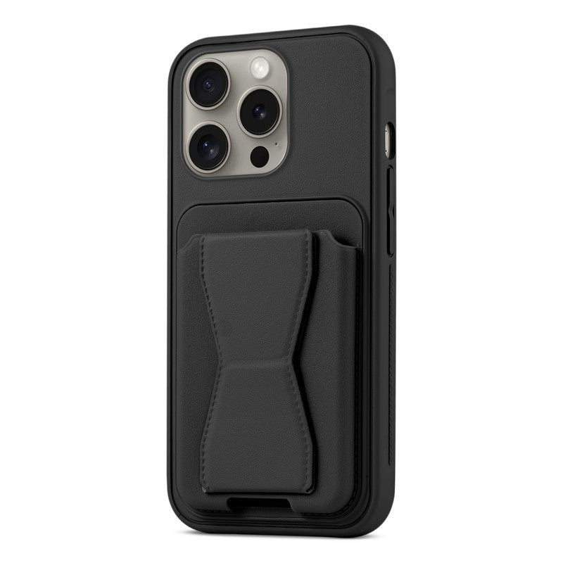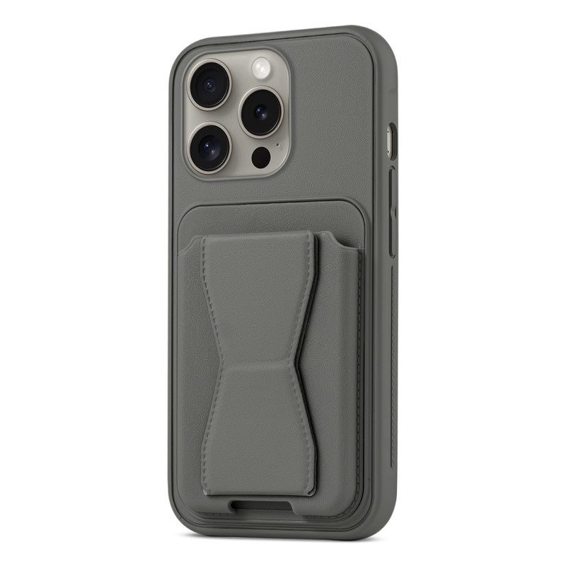 All in One Premium Leather Back Cover for Apple iPhone 13 Pro with Card Slot & Foldable Grip Holder