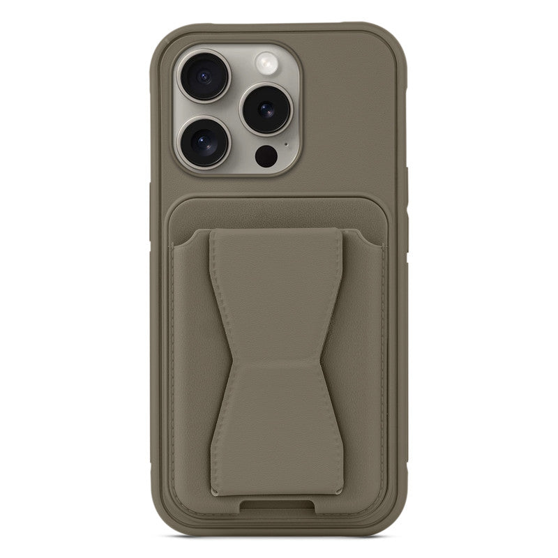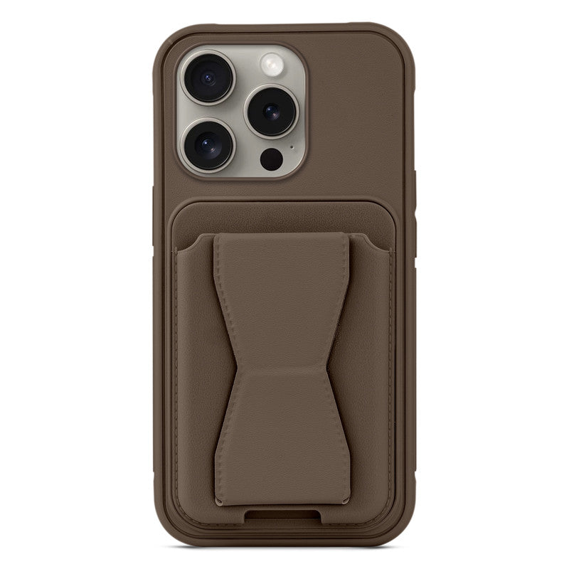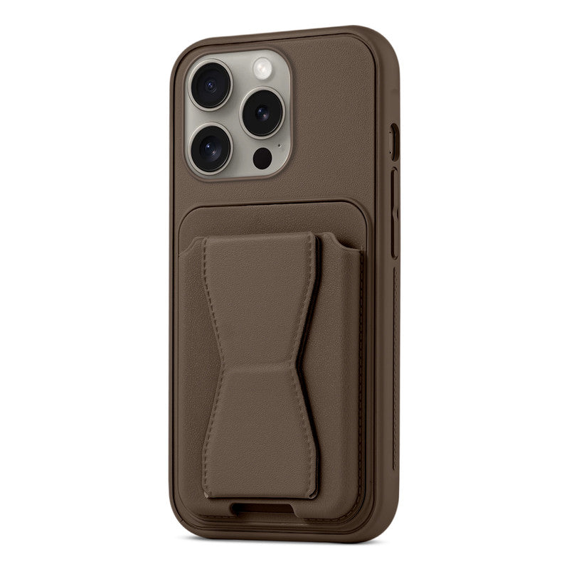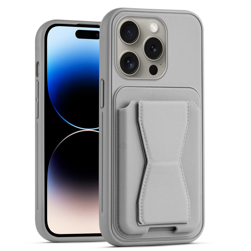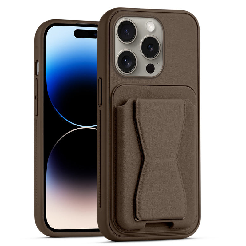 All in One Premium Leather Back Cover for Apple iPhone 14 Pro with Card Slot & Foldable Grip Holder