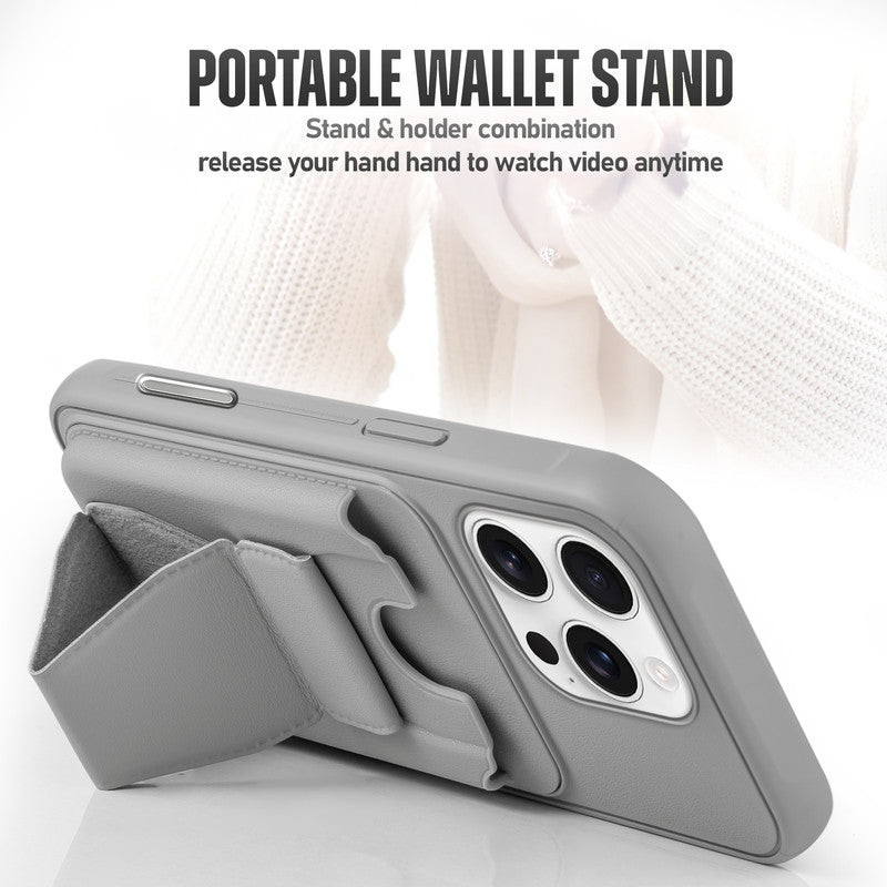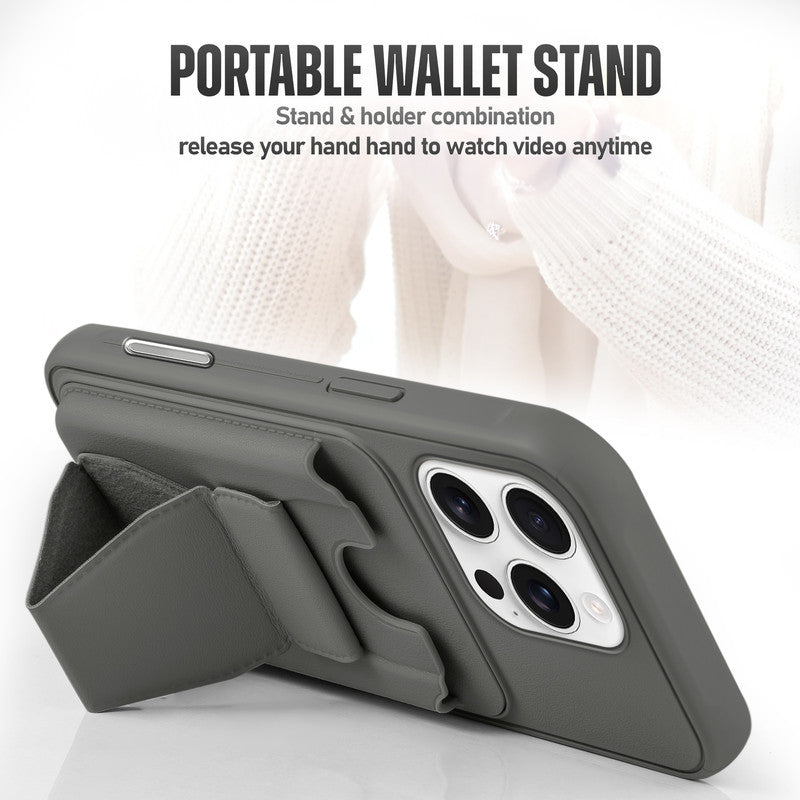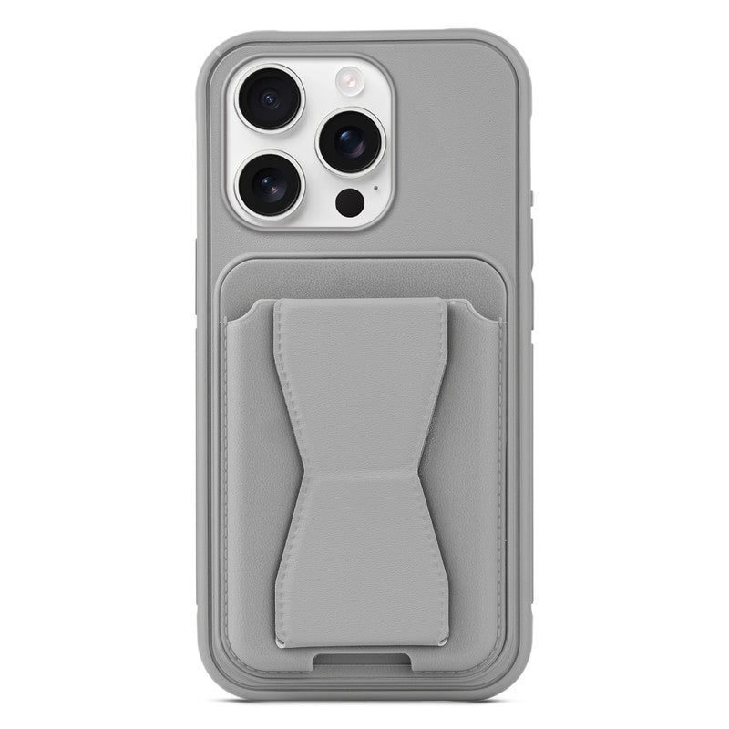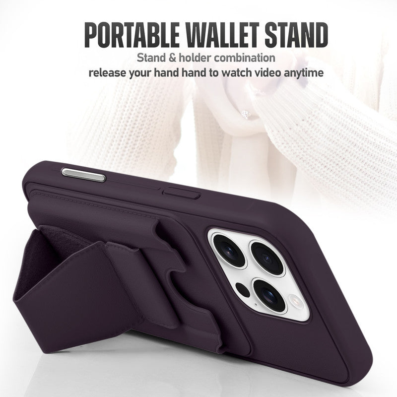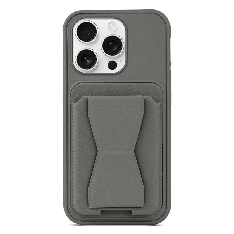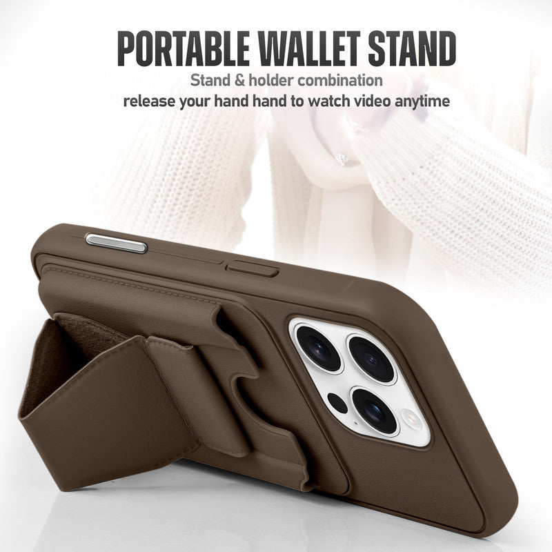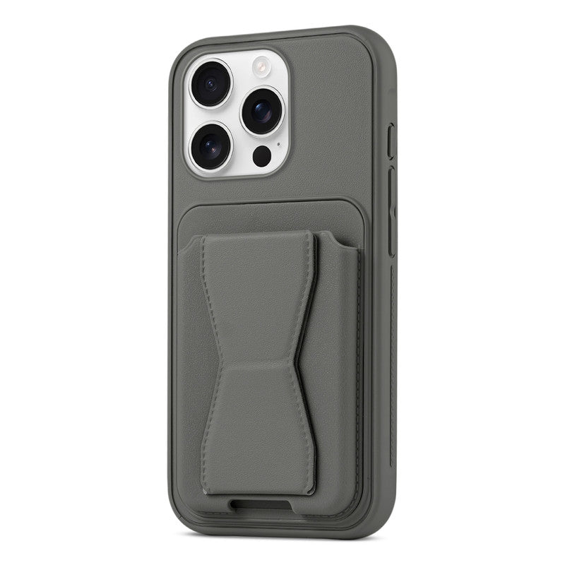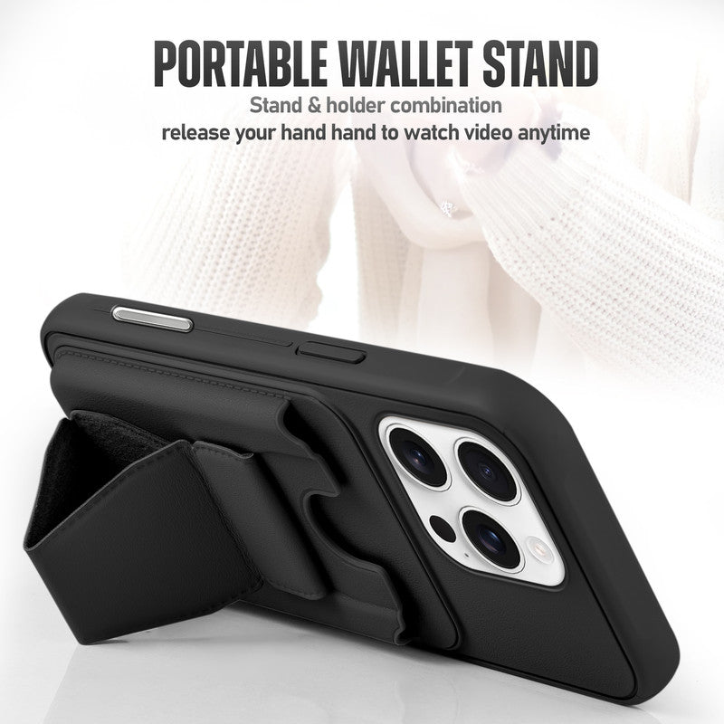 All in One Premium Leather Back Cover for Apple iPhone 16 Pro with Card Slot & Foldable Grip Holder