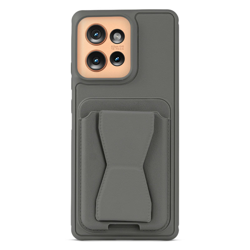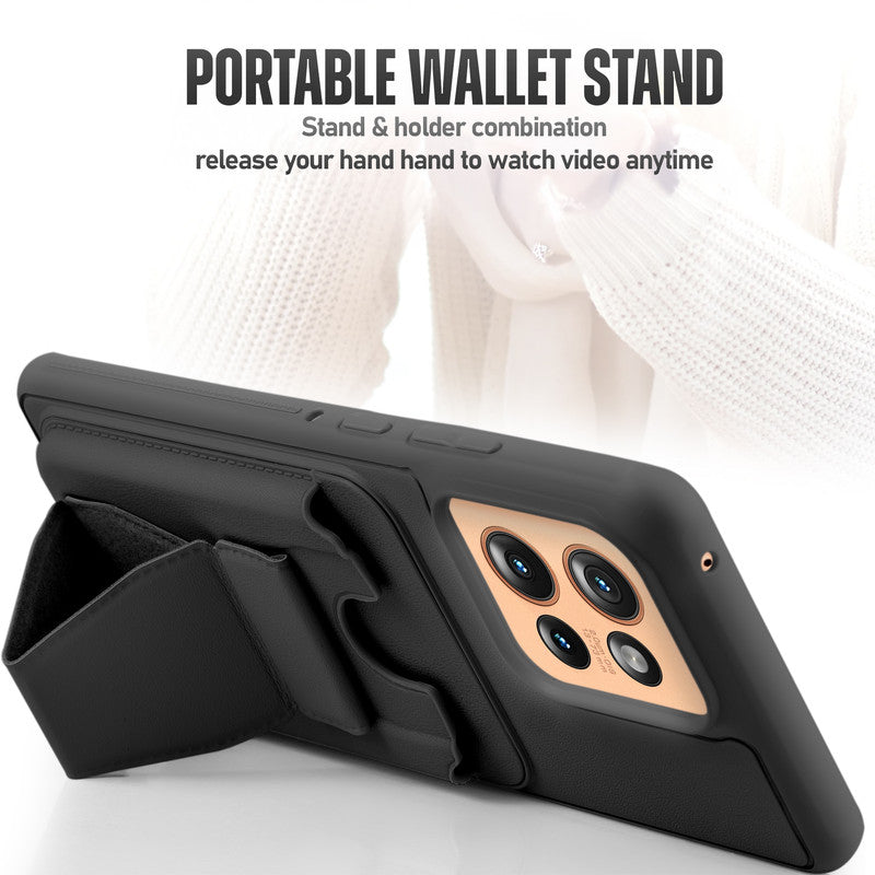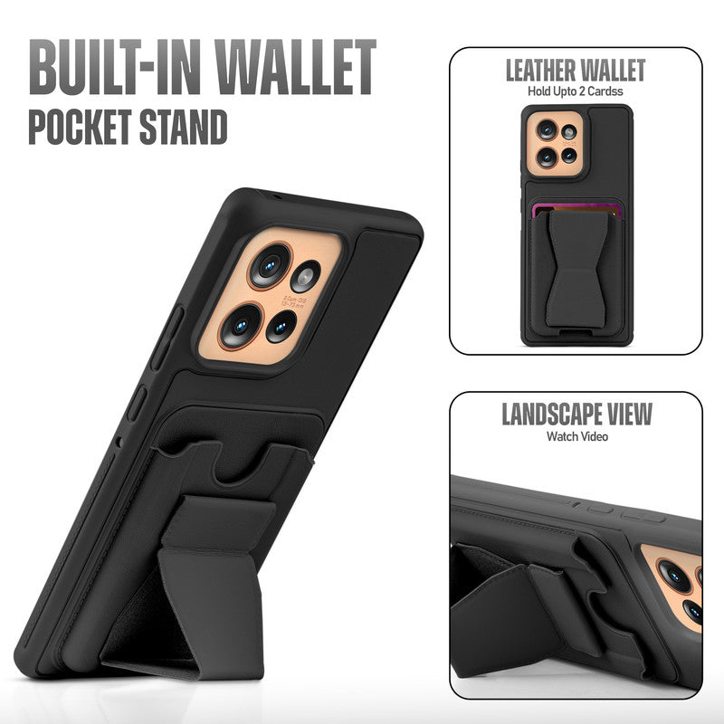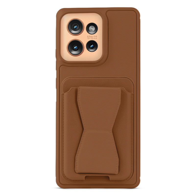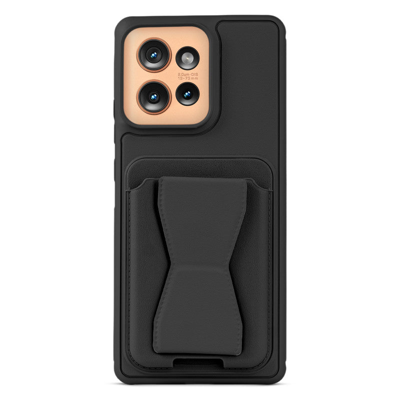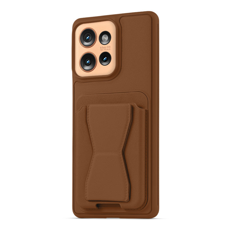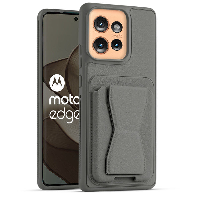 All in One Premium Leather Back Cover for Motorola Moto Edge 50 5G with Card Slot & Foldable Grip Holder