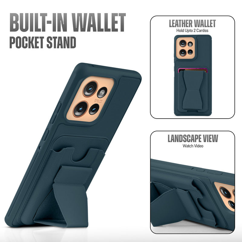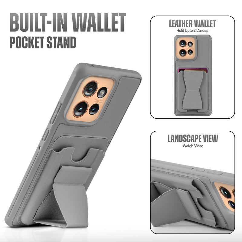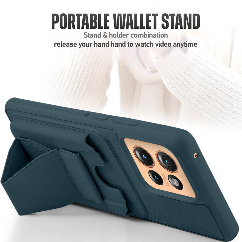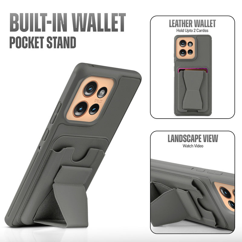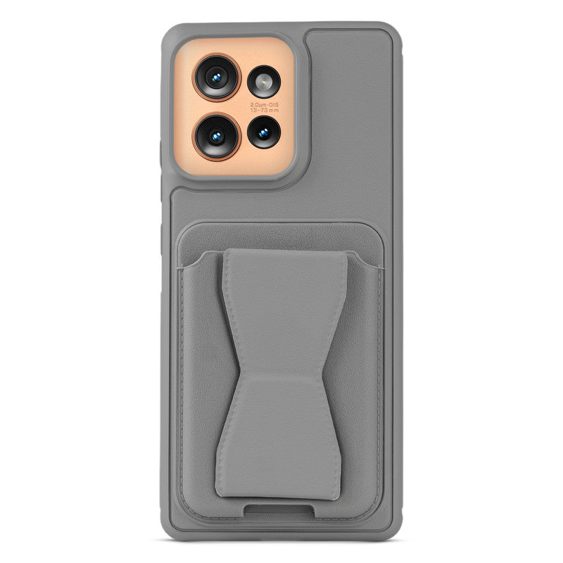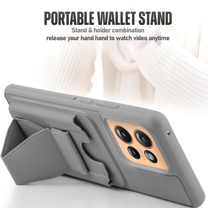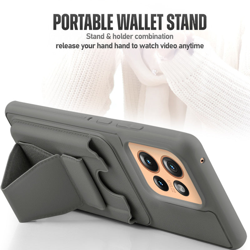 All in One Premium Leather Back Cover for Motorola Moto Edge 50 5G with Card Slot & Foldable Grip Holder