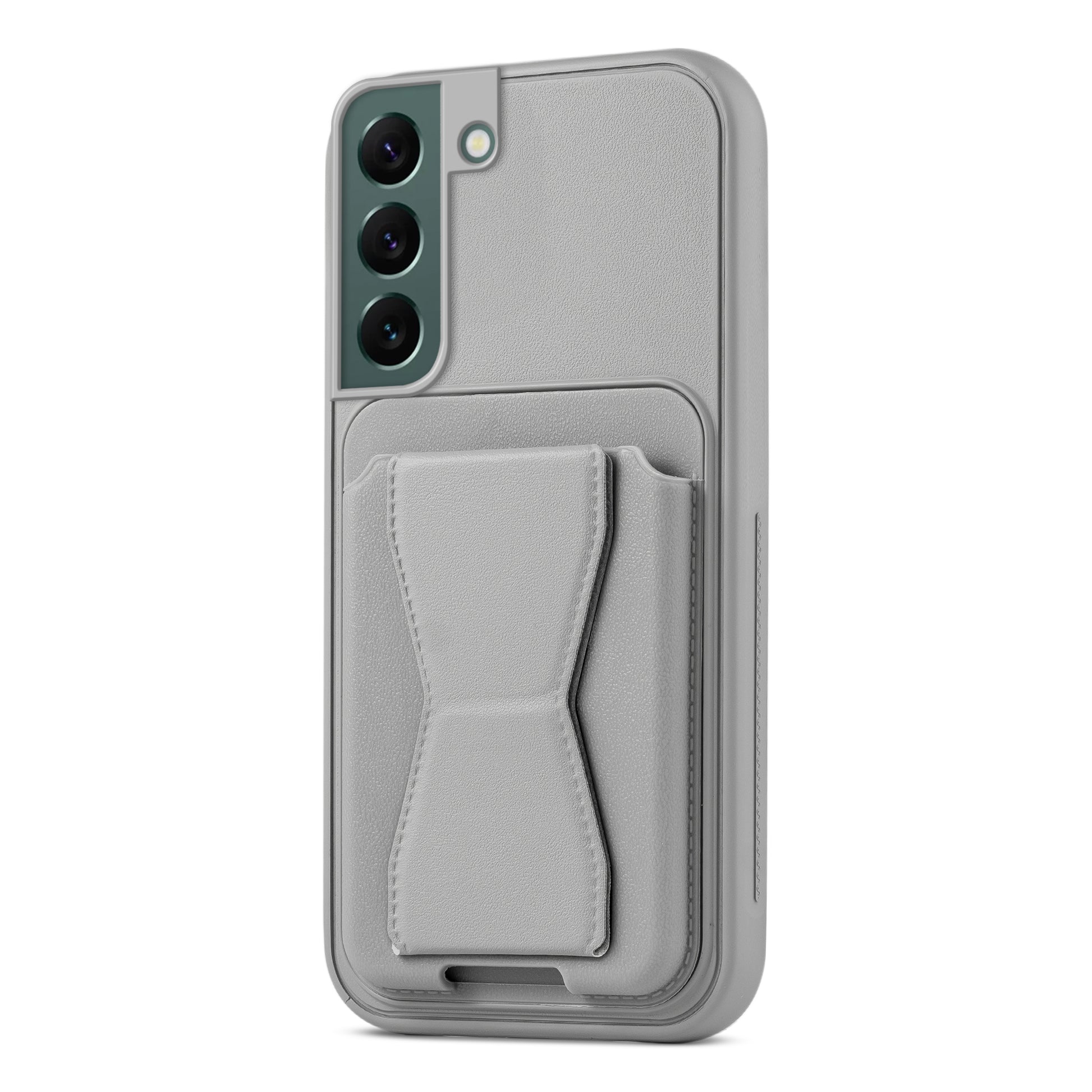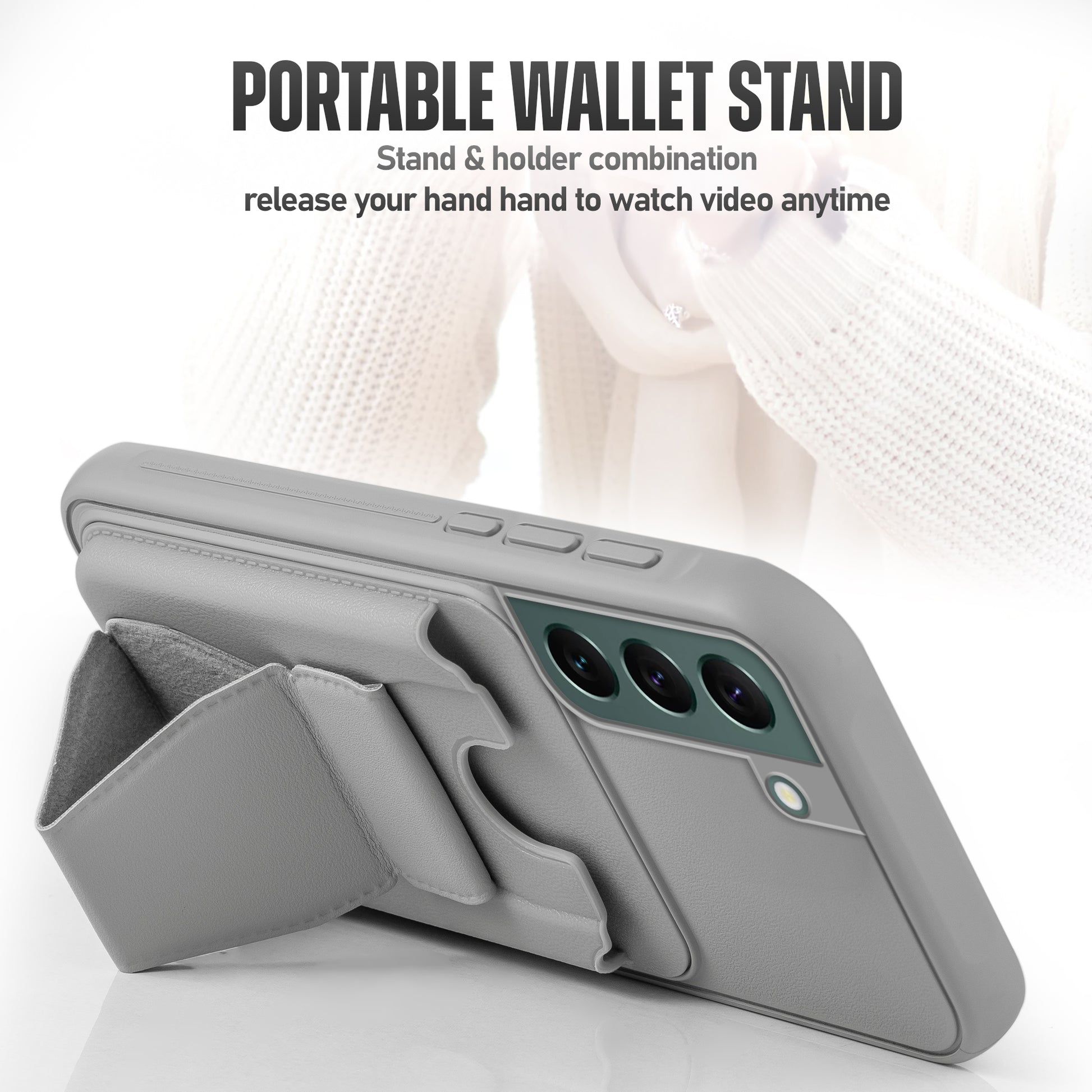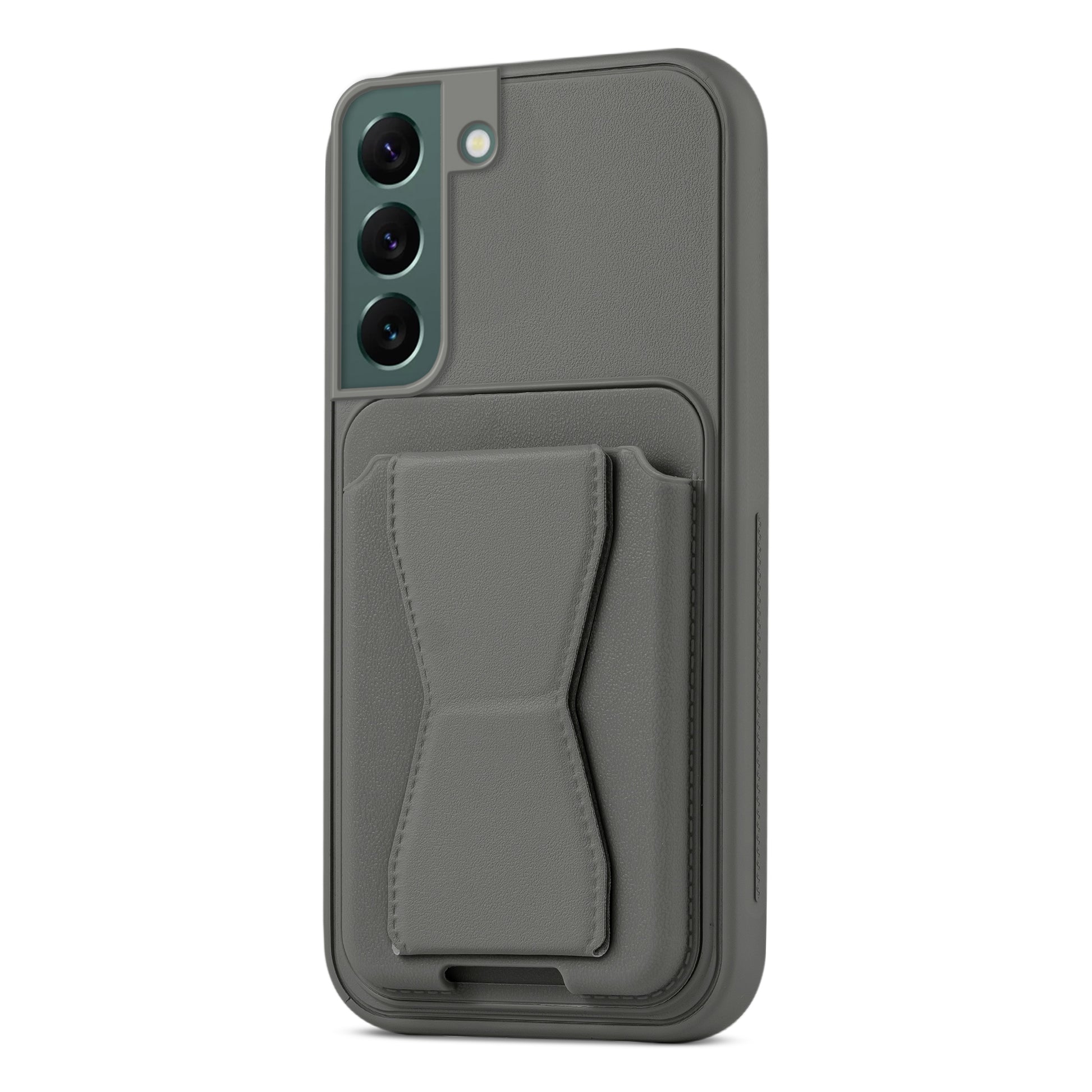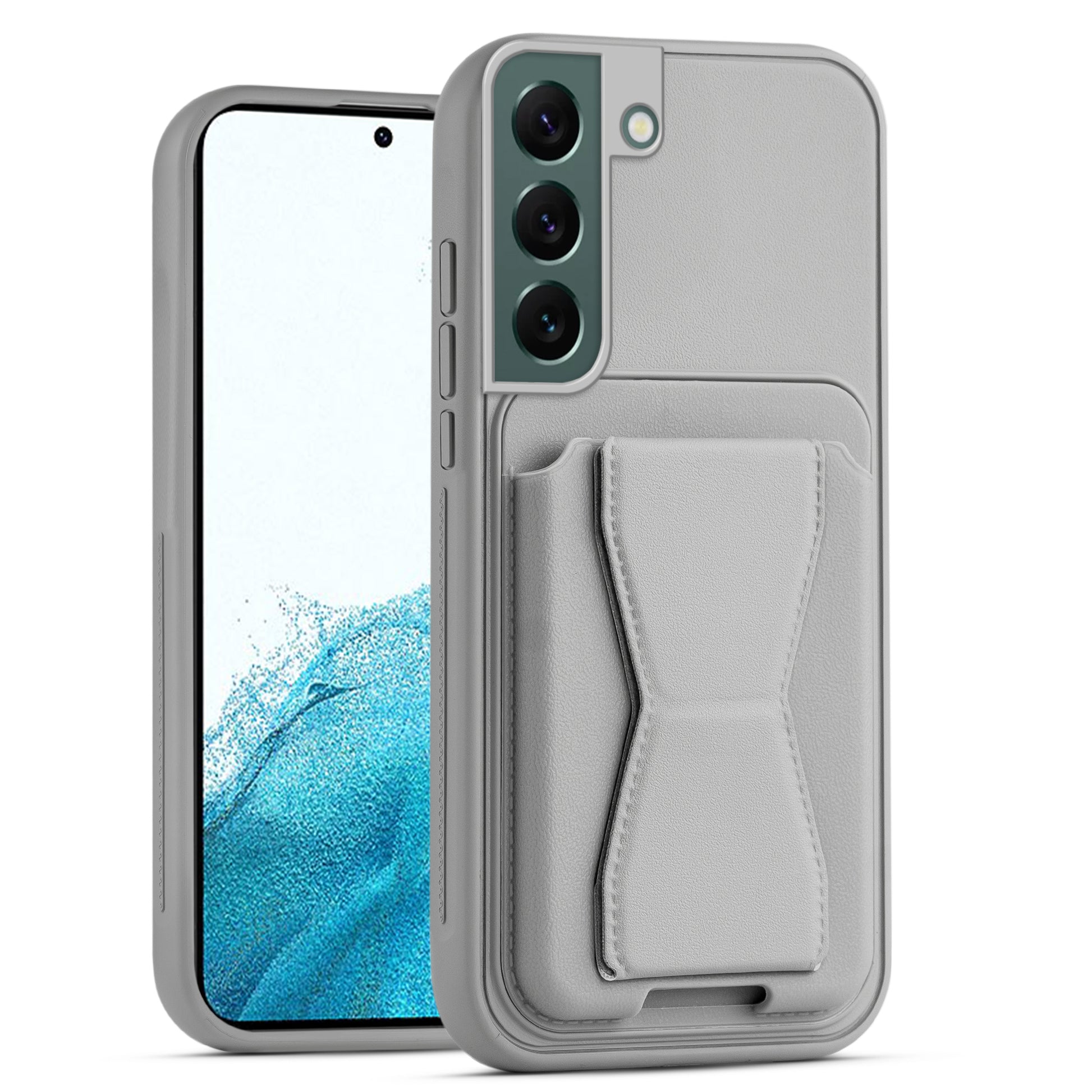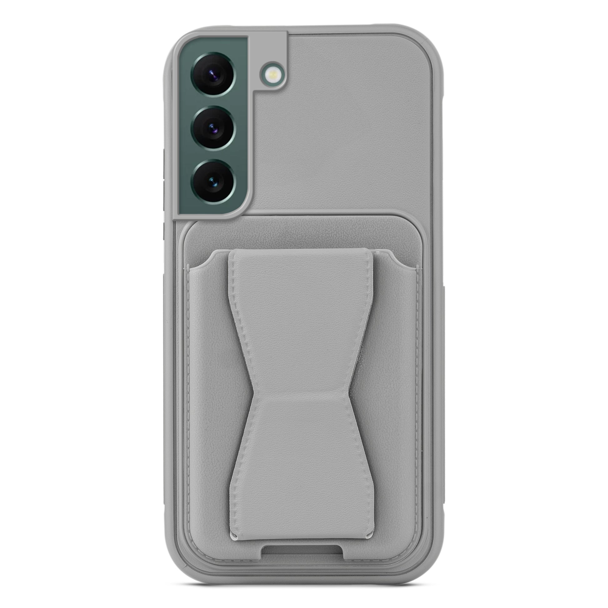 All in One Premium Leather Back Cover for Samsung S22 5G with Card Slot & Foldable Grip Holder