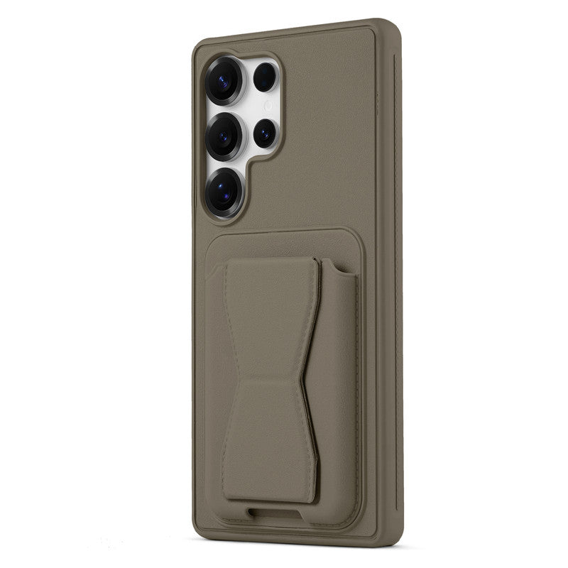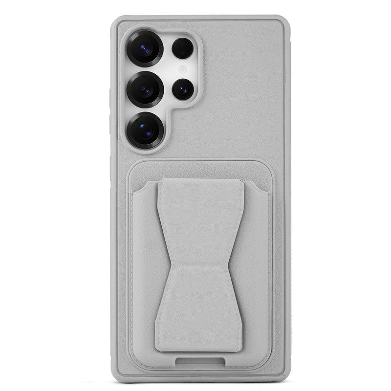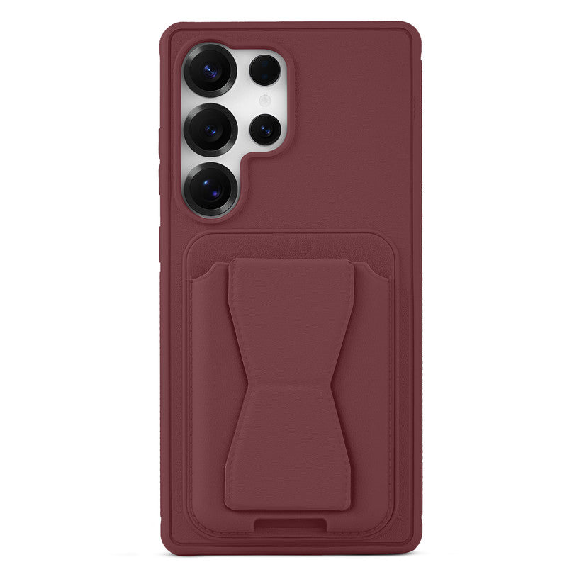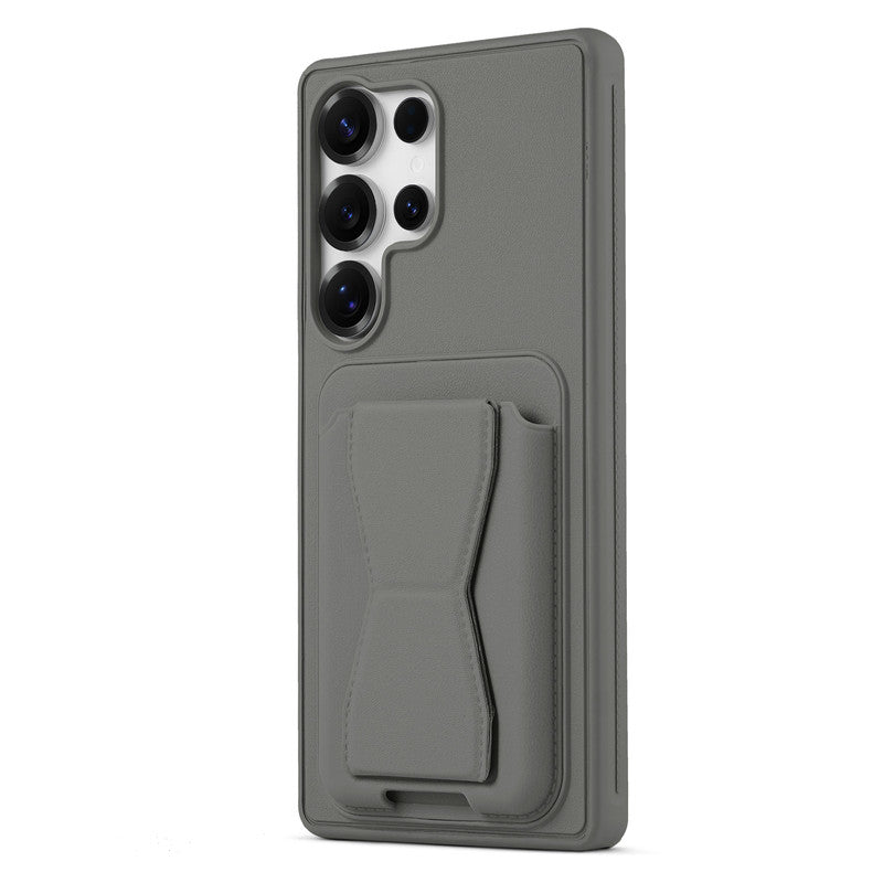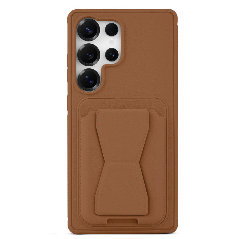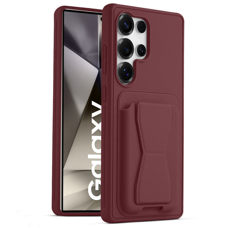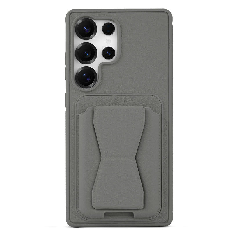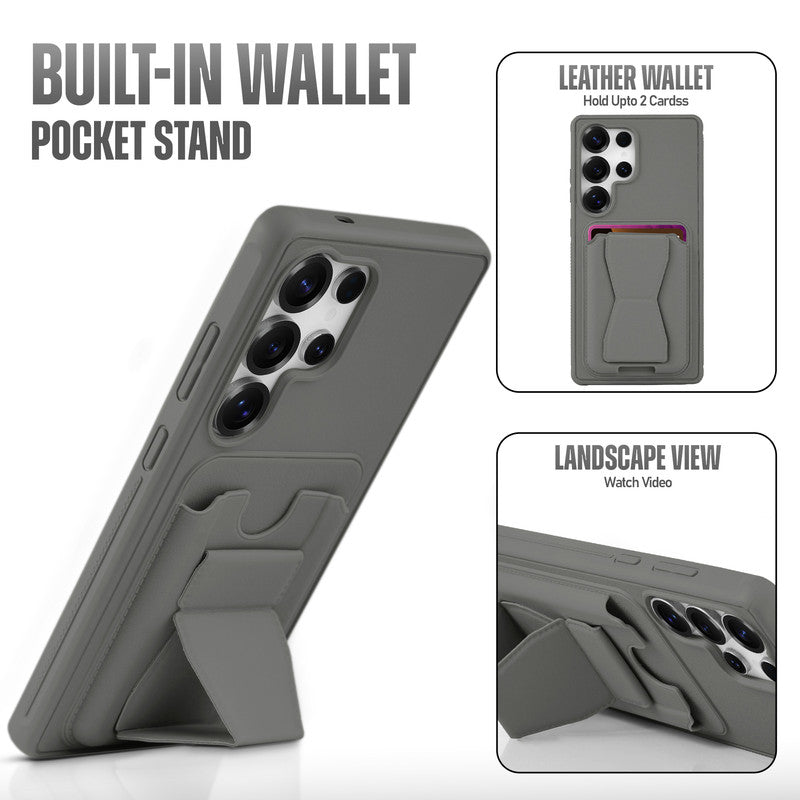 All in One Premium Leather Back Cover for Samsung S24 Ultra 5G with Card Slot & Foldable Grip Holder