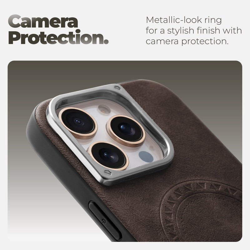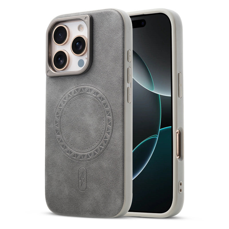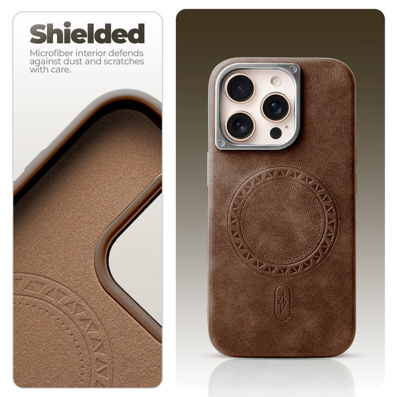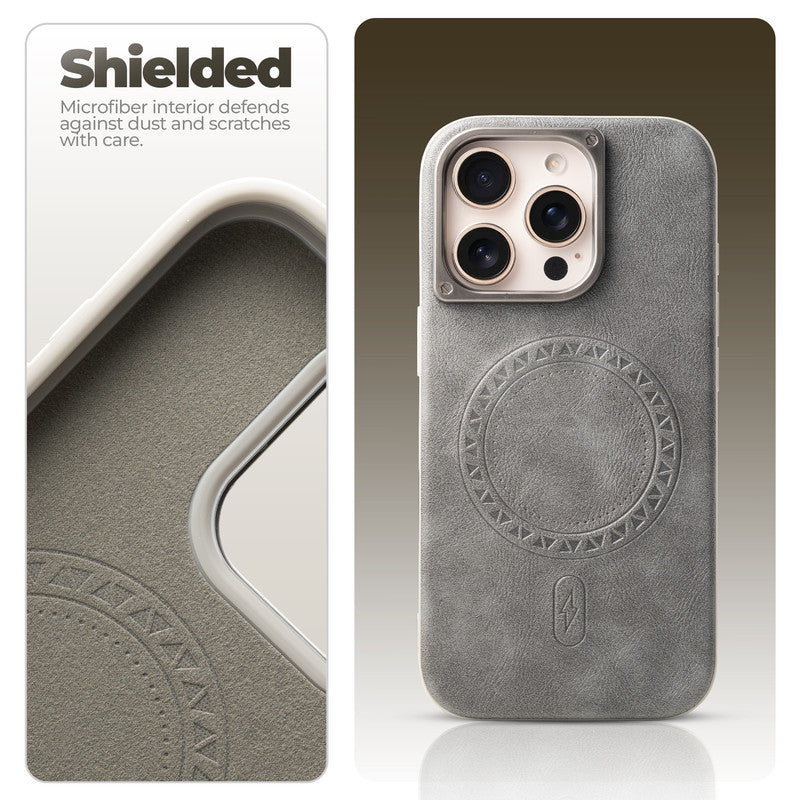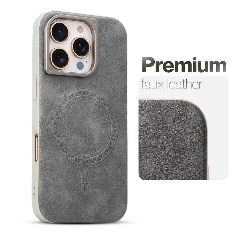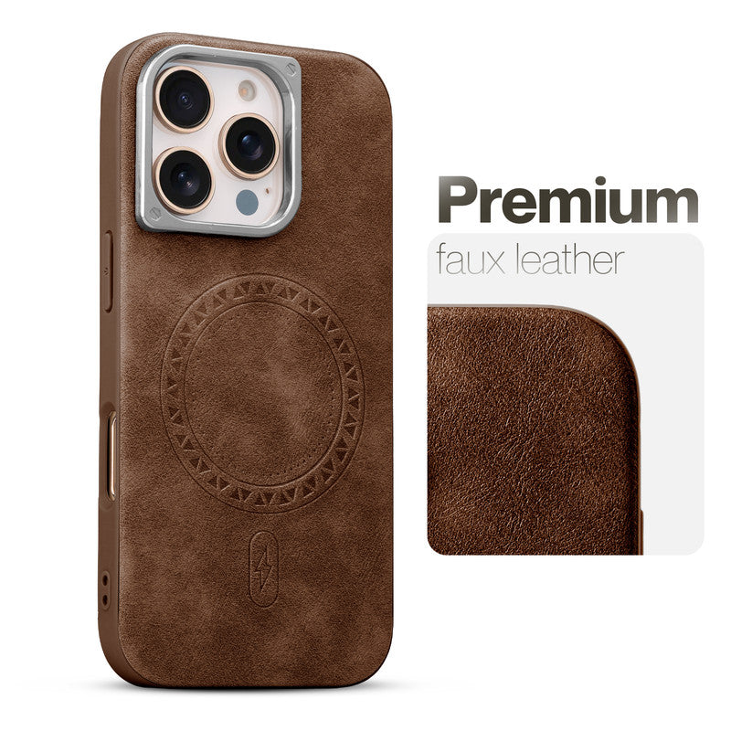 Alloy Camera Ring Faux Leather Back Case for Apple iphone 16 Pro Max , Hard Shell with MagSafe Support