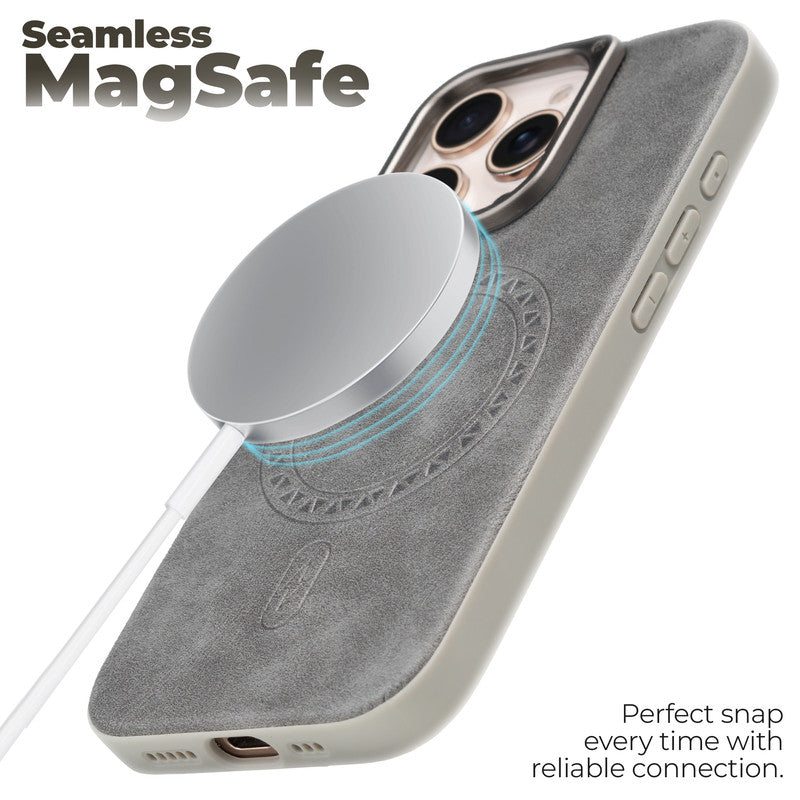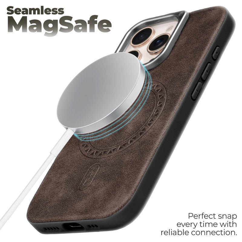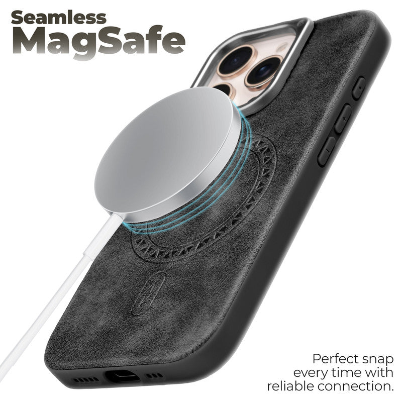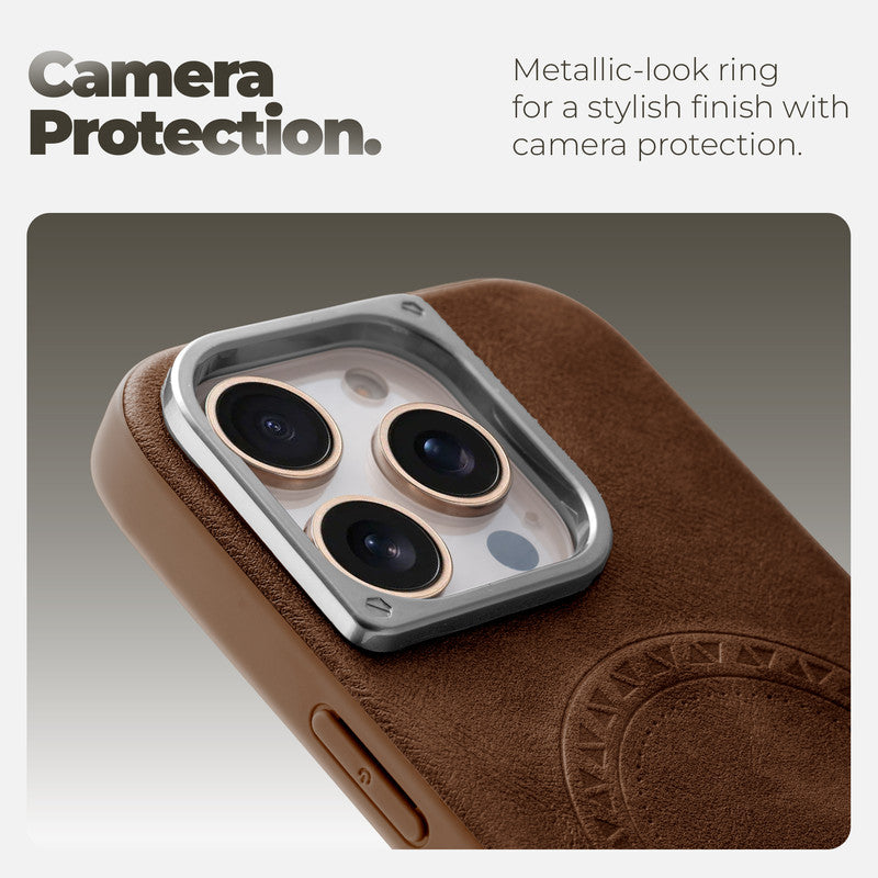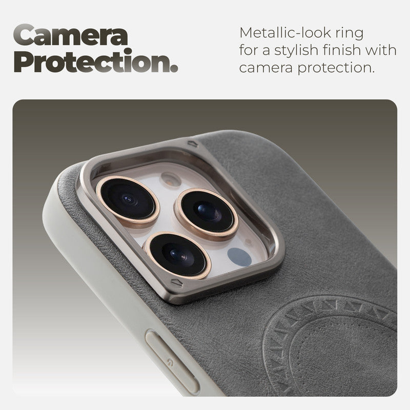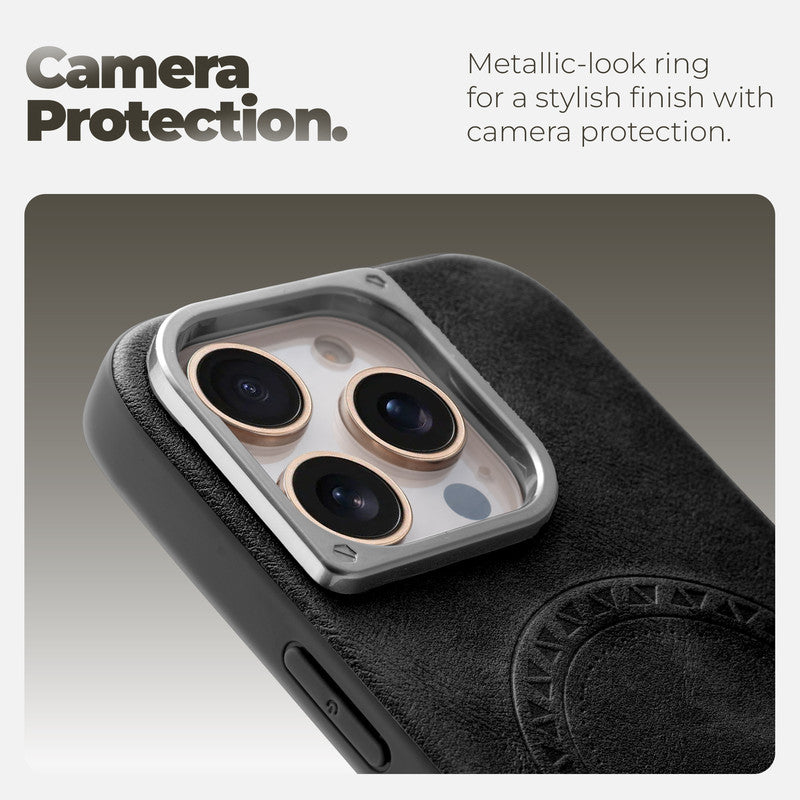 Alloy Camera Ring Faux Leather Back Case for Apple iphone 16 Pro Max , Hard Shell with MagSafe Support
