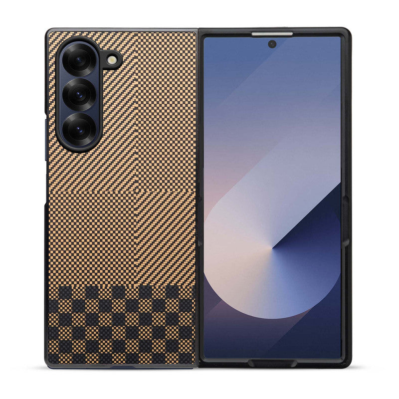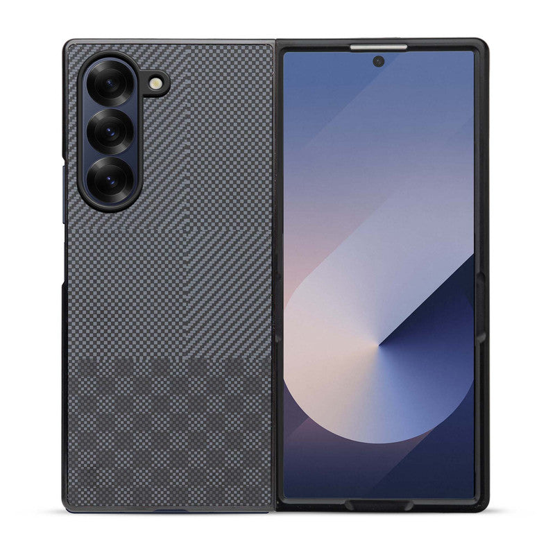Carbon Fiber TPU Back Cover for Samsung Z Fold 6 with Checkered Printed Designs
