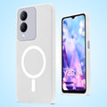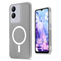 Clear hard back case compatibility guide showing fit for Vivo Y28 5G and not compatible with other models