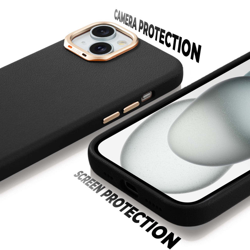 Exclusive Hard Back Case for Apple iPhone 15 with Leather Textured Finish, Matte finish Buttons and Soft Inner Fabric