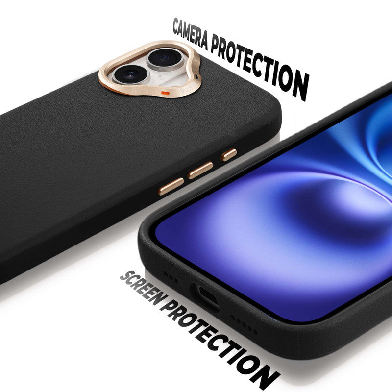 Exclusive Hard Back Case for Apple iPhone 16 with Leather Textured Finish, Matte finish Buttons and Soft Inner Fabric