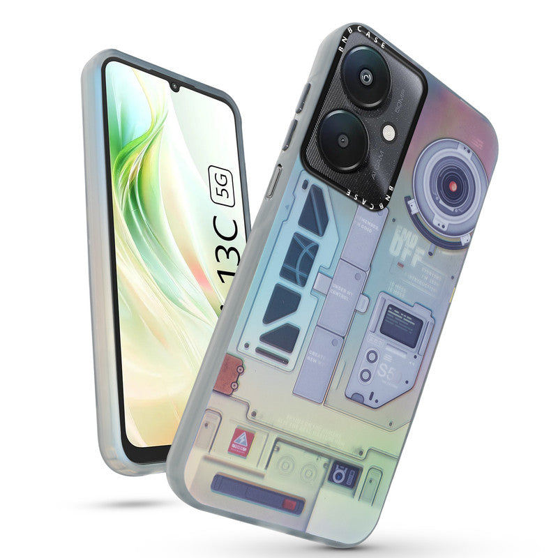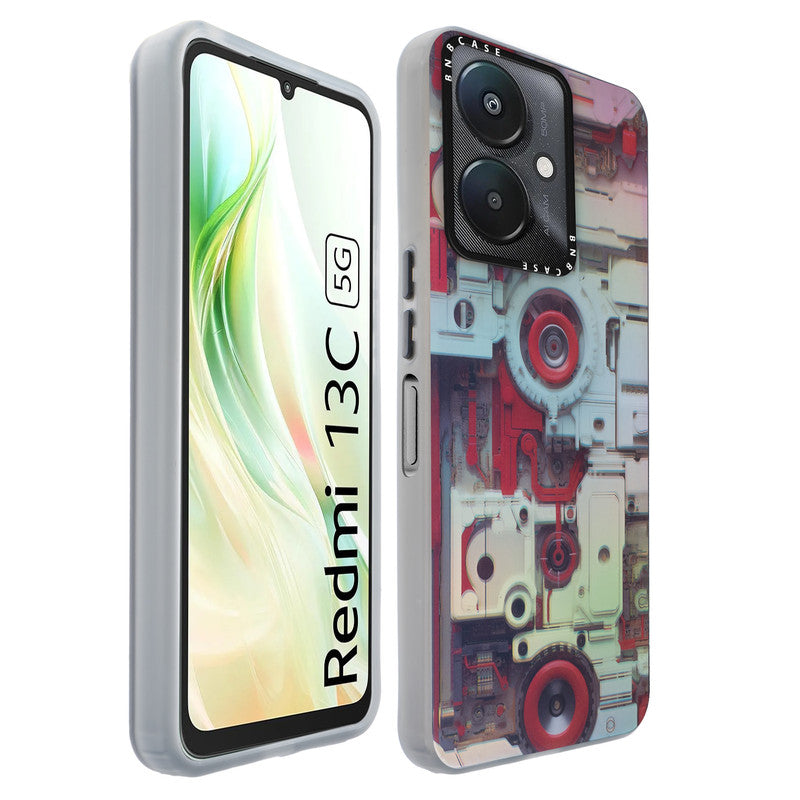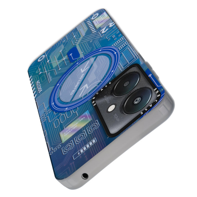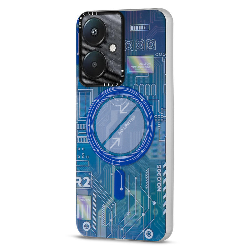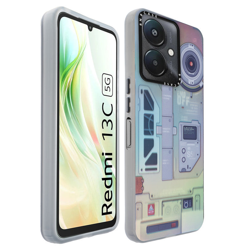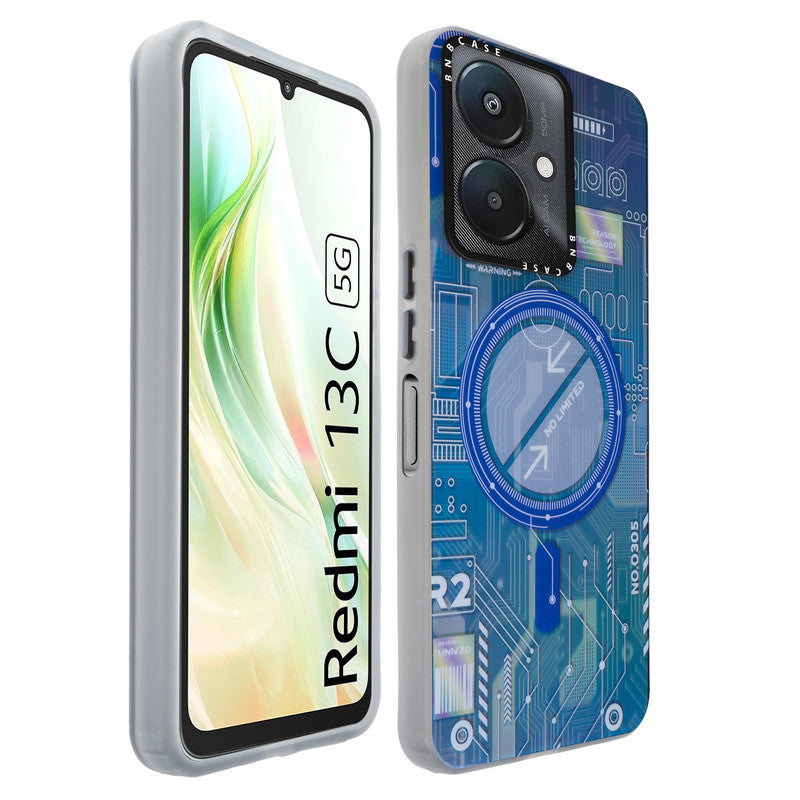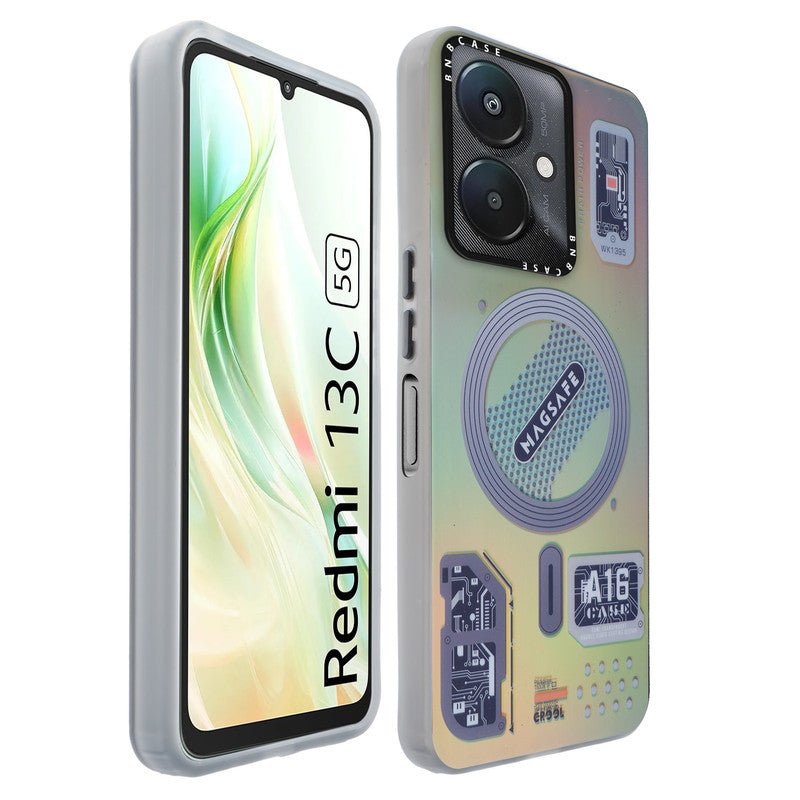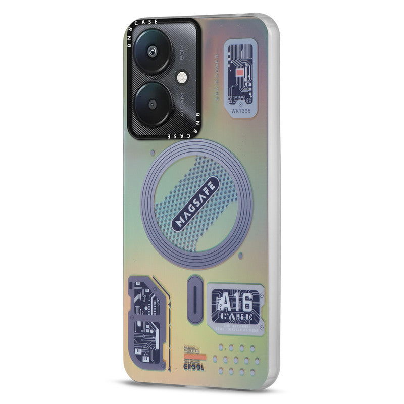 Futuristic Rainbow Effect Circuit Print Hard Back Cover For Redmi 13C 5G