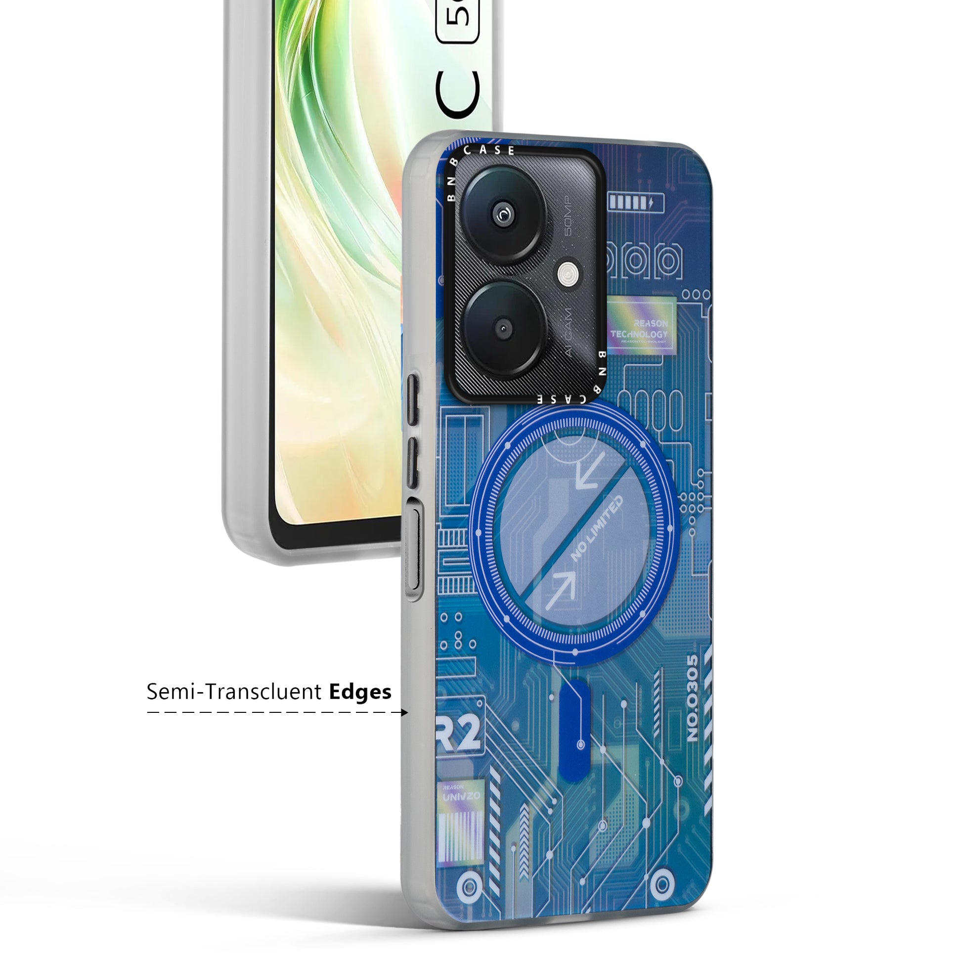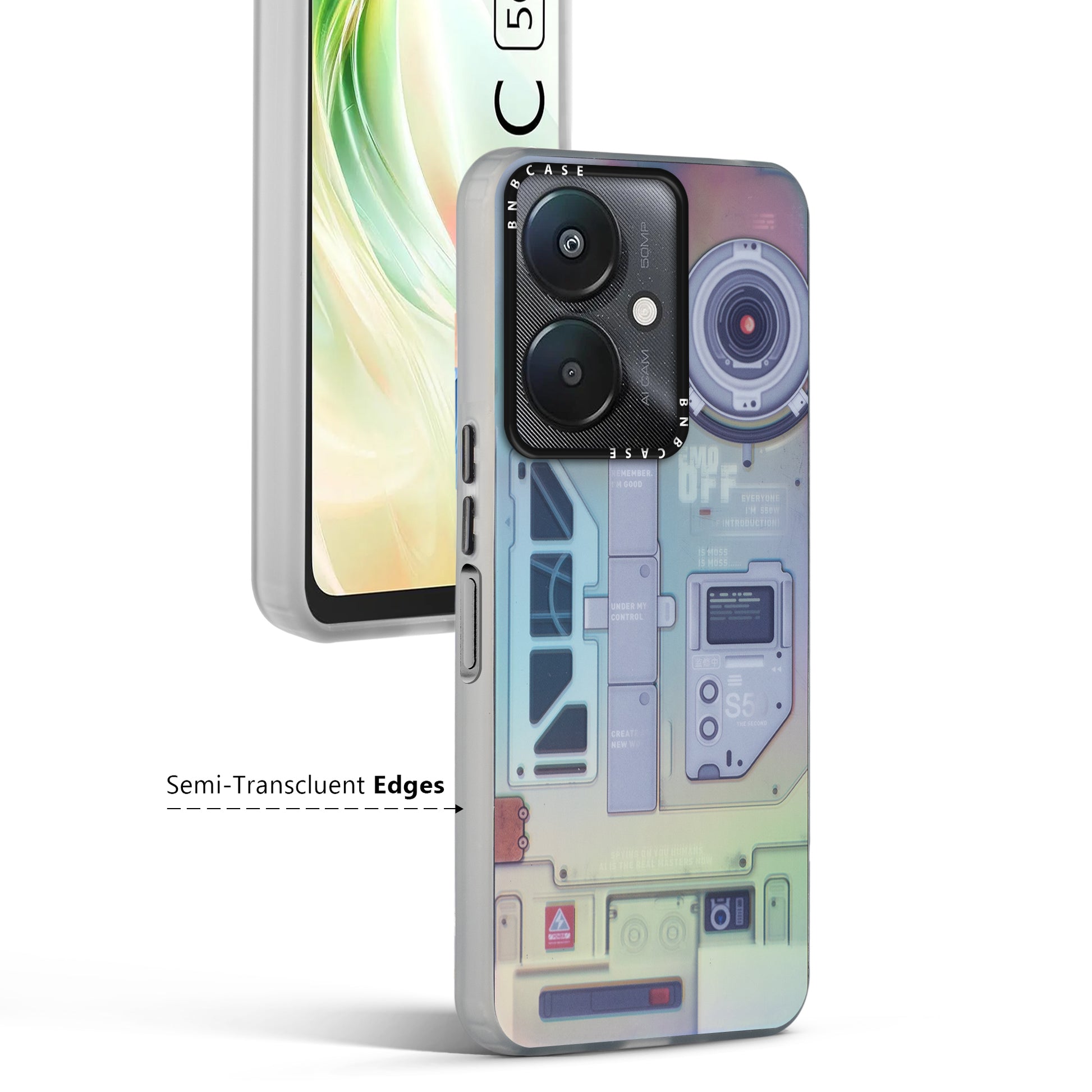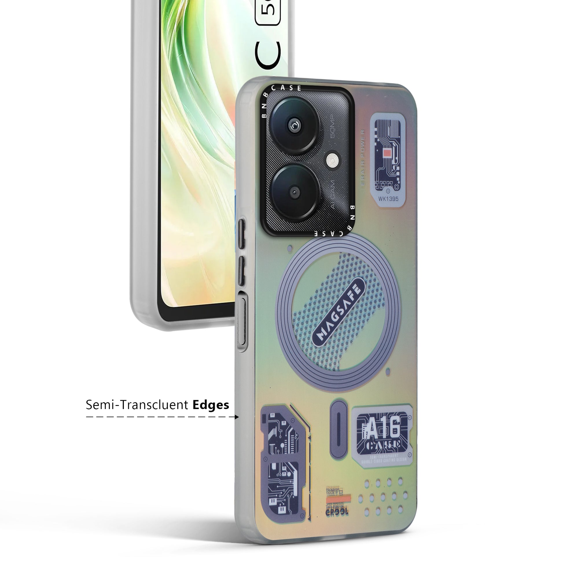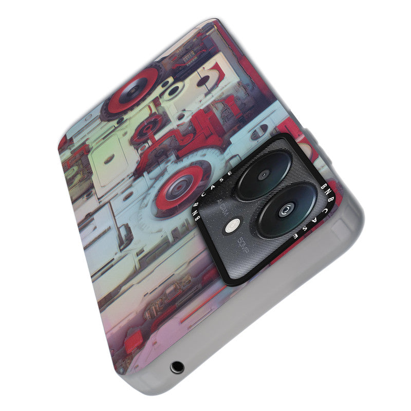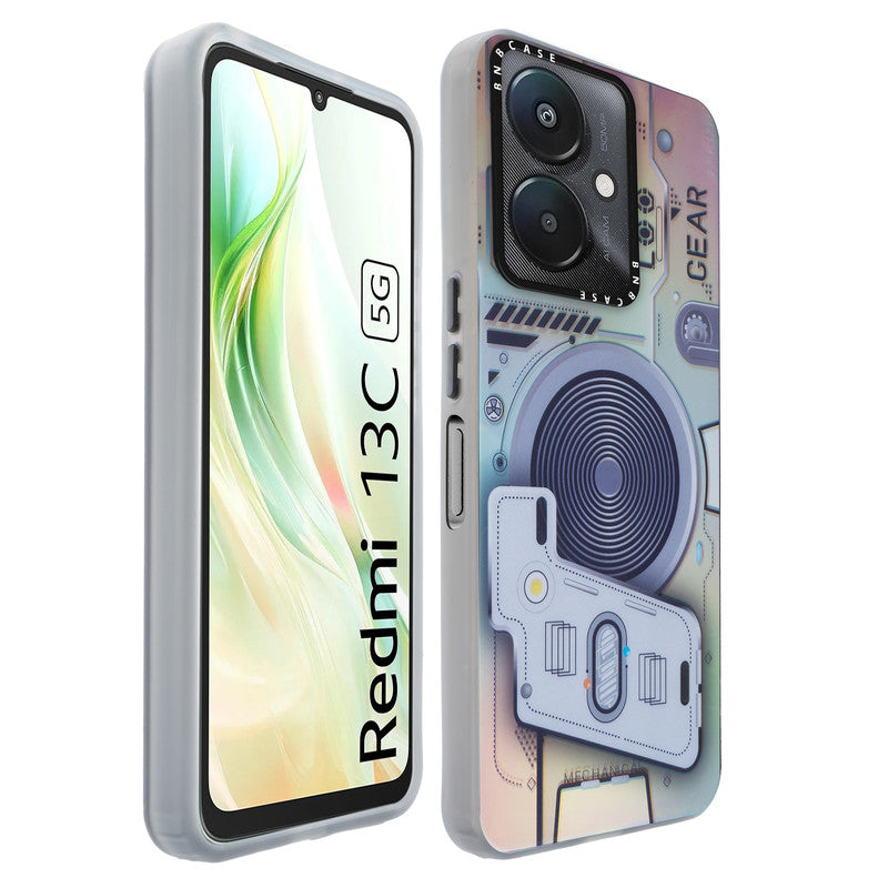 Futuristic Rainbow Effect Circuit Print Hard Back Cover For Redmi 13C 5G