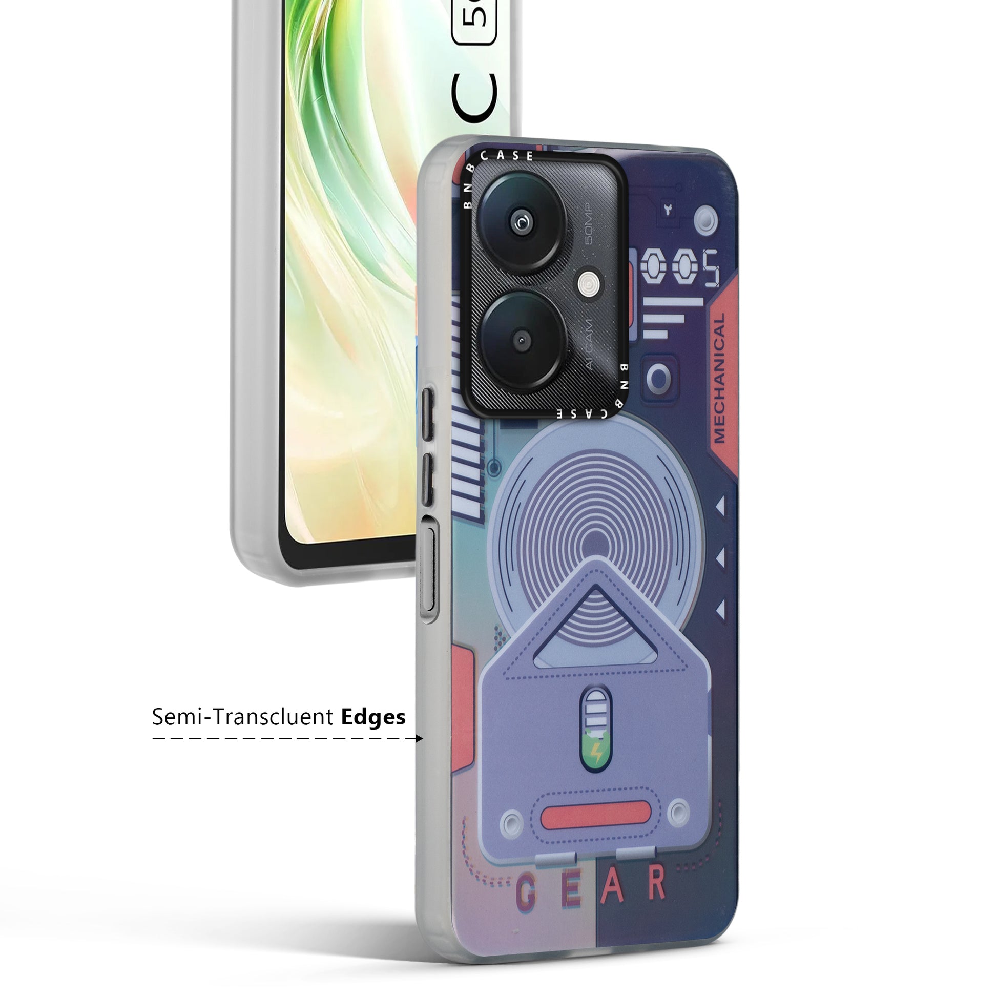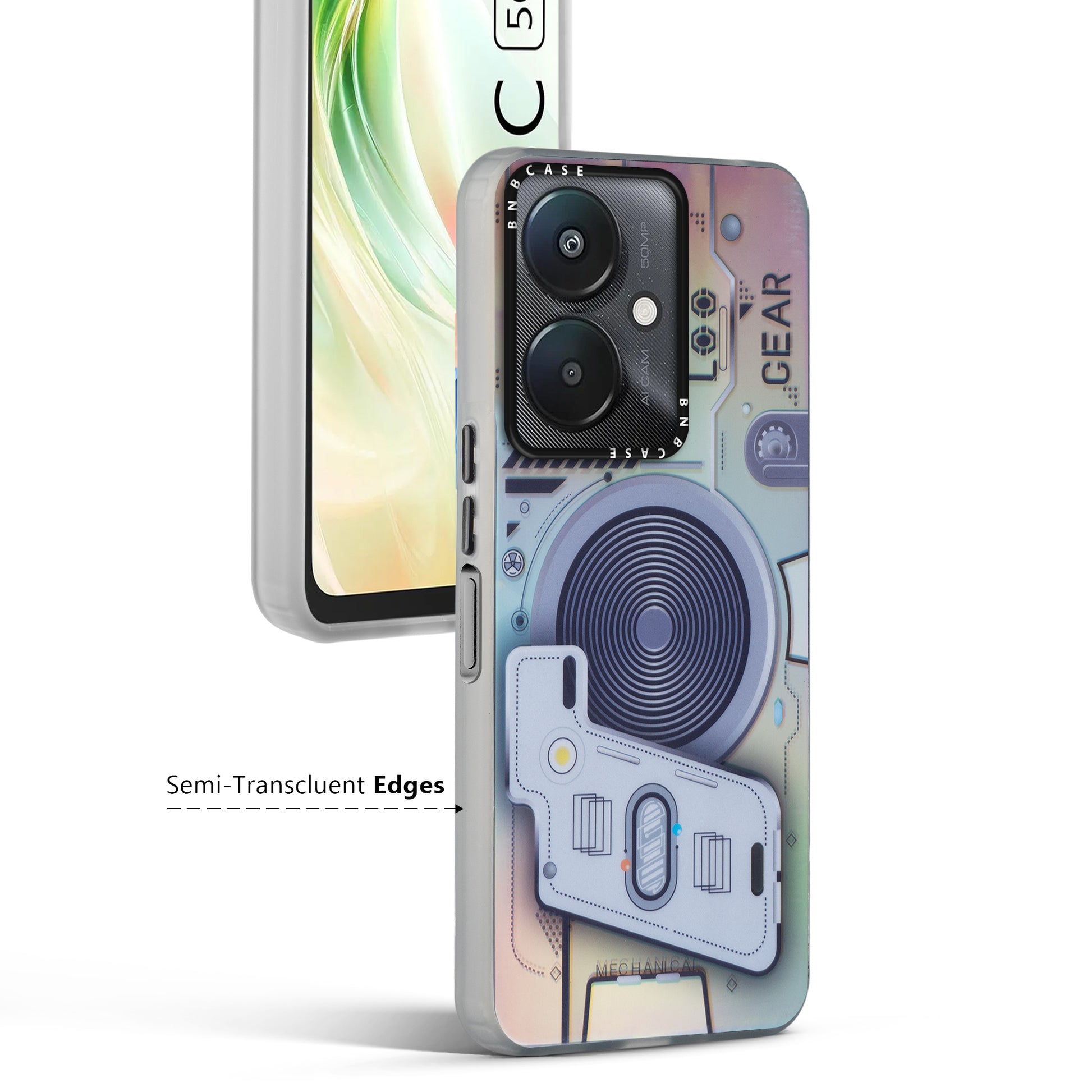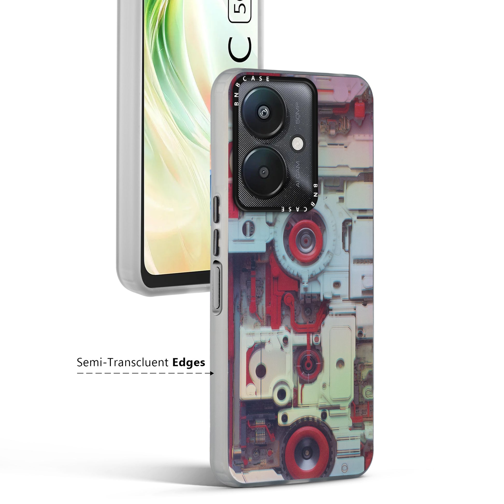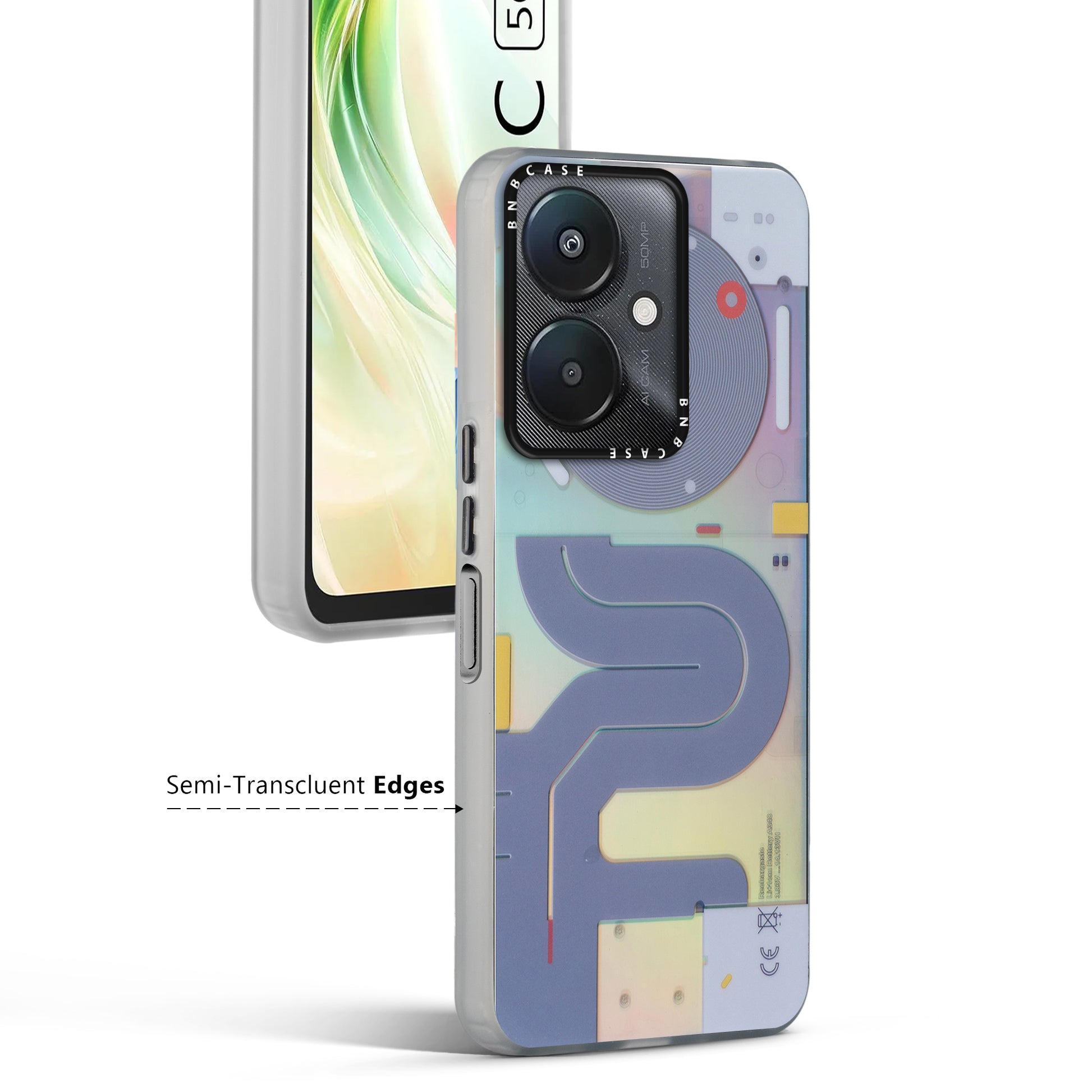 Futuristic Rainbow Effect Circuit Print Hard Back Cover For Redmi 13C 5G