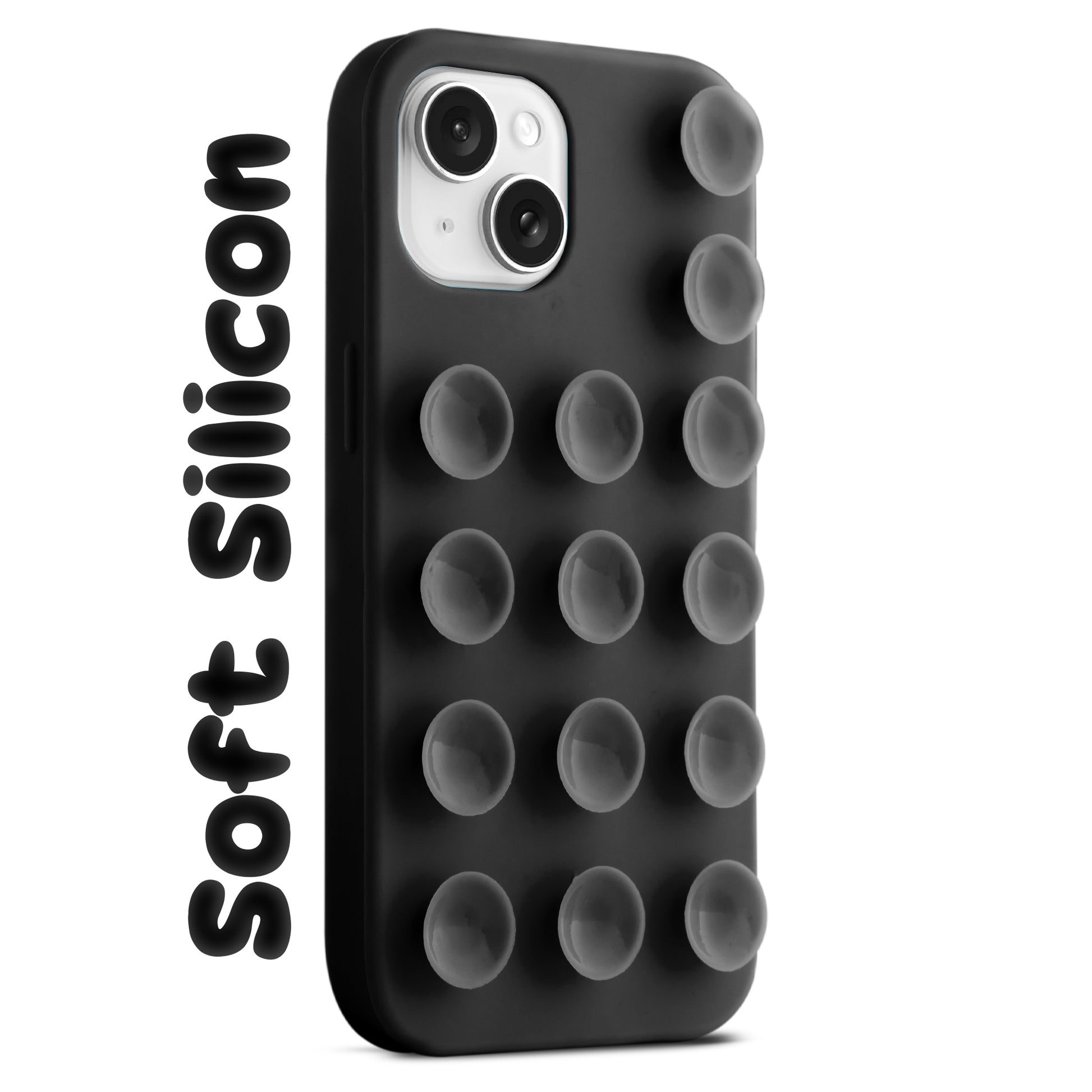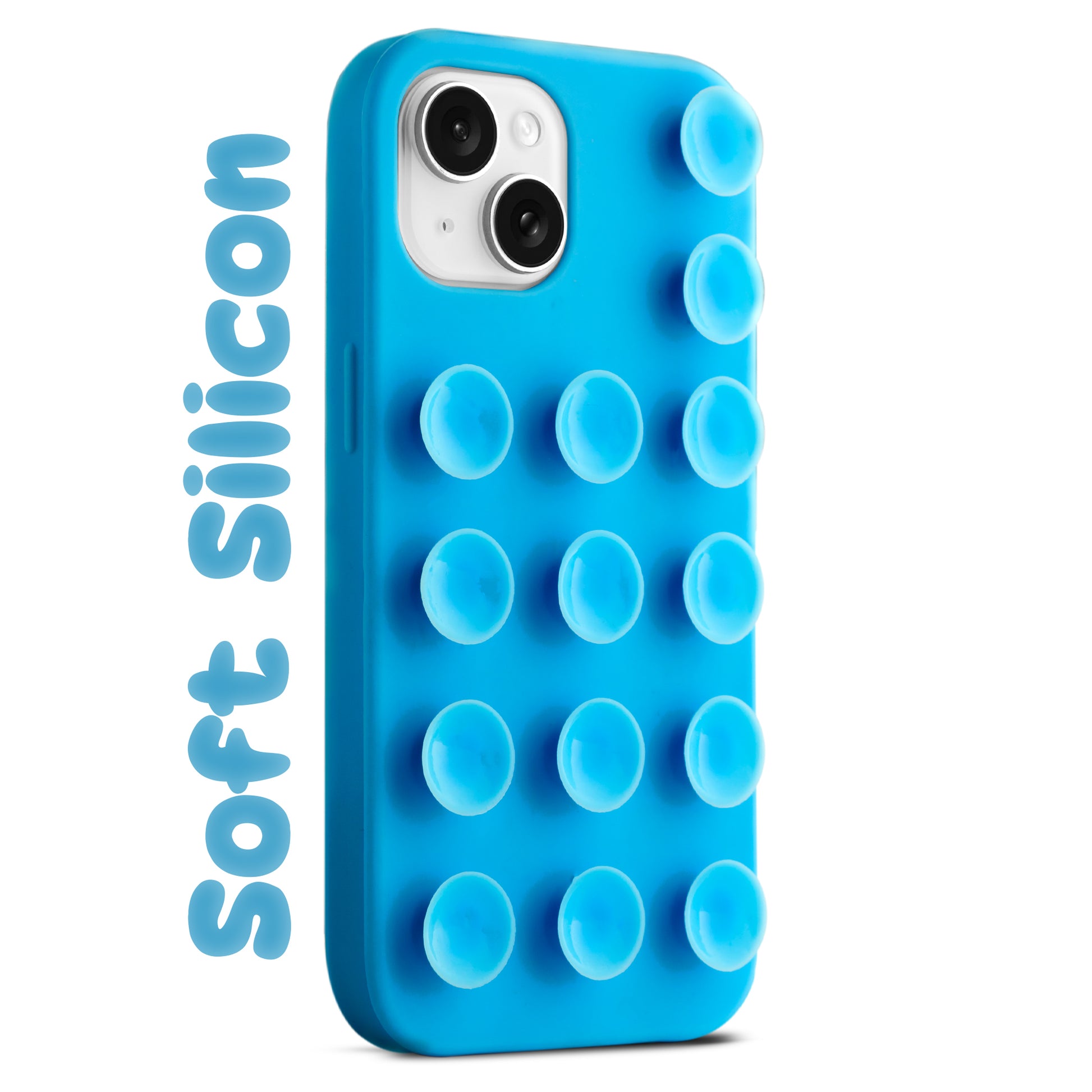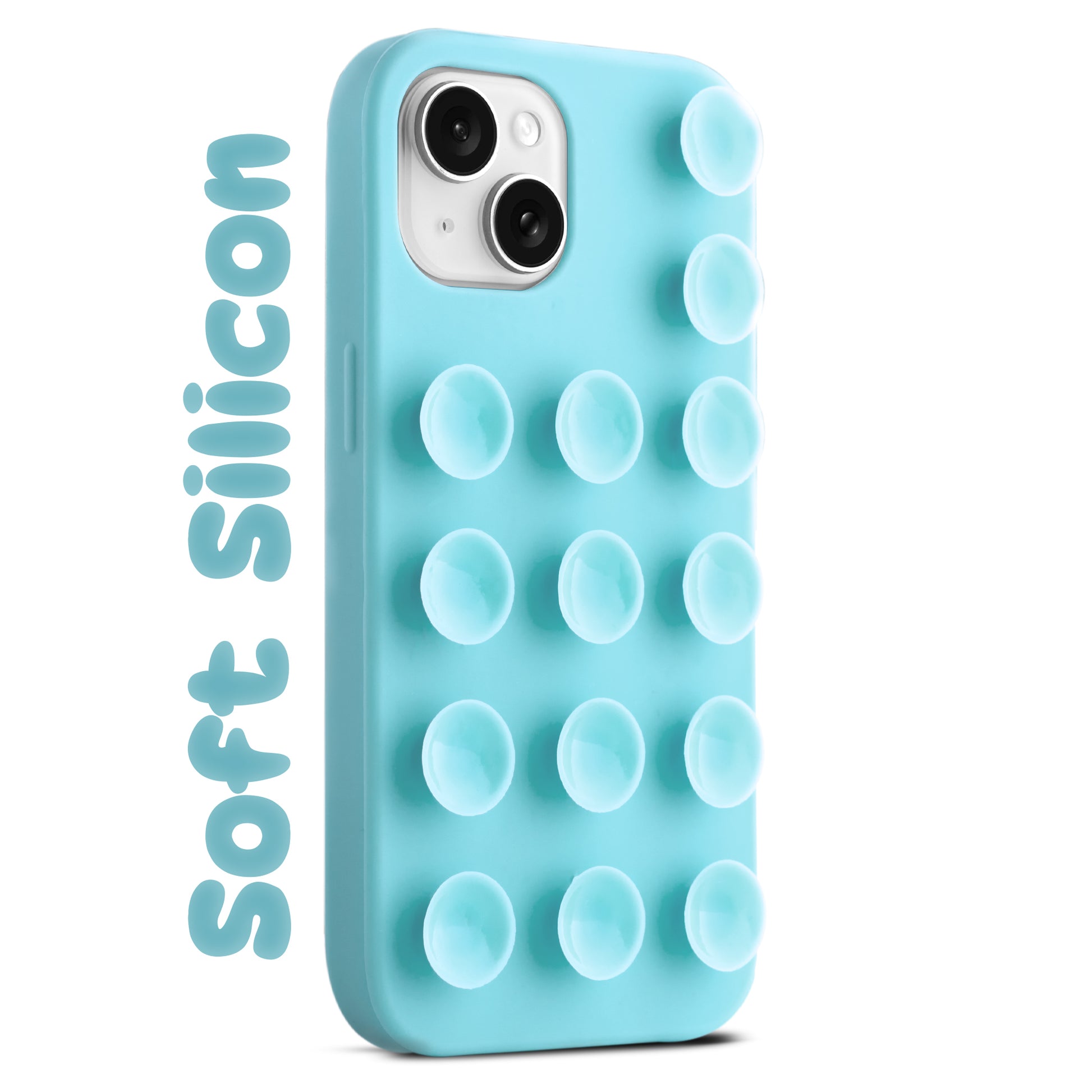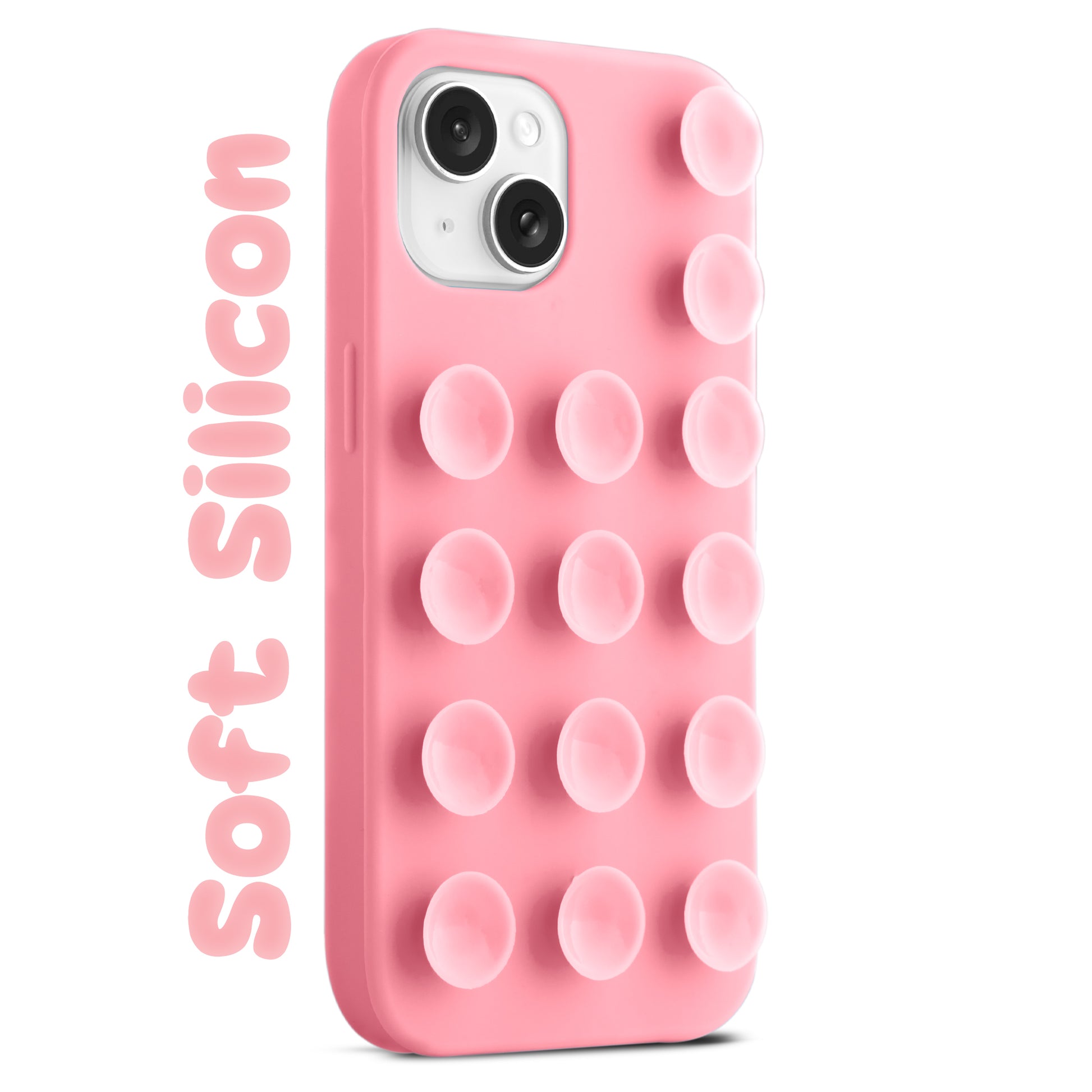 Glossy Colorful Liquid Silicone Comfort Grip Suction Case for Apple iPhone 15 Plus with Soft Touch Matte Finish & Built in Suction Pads