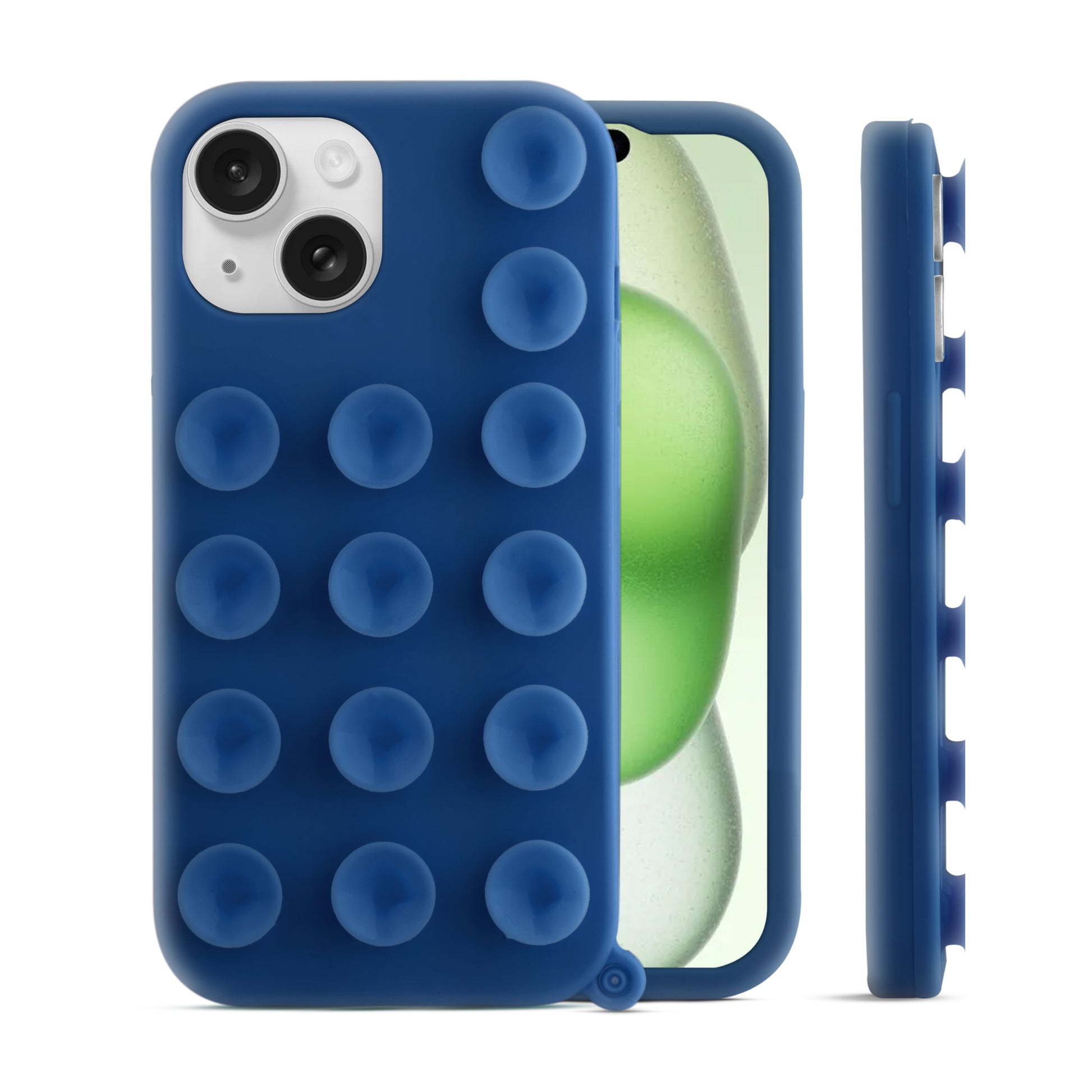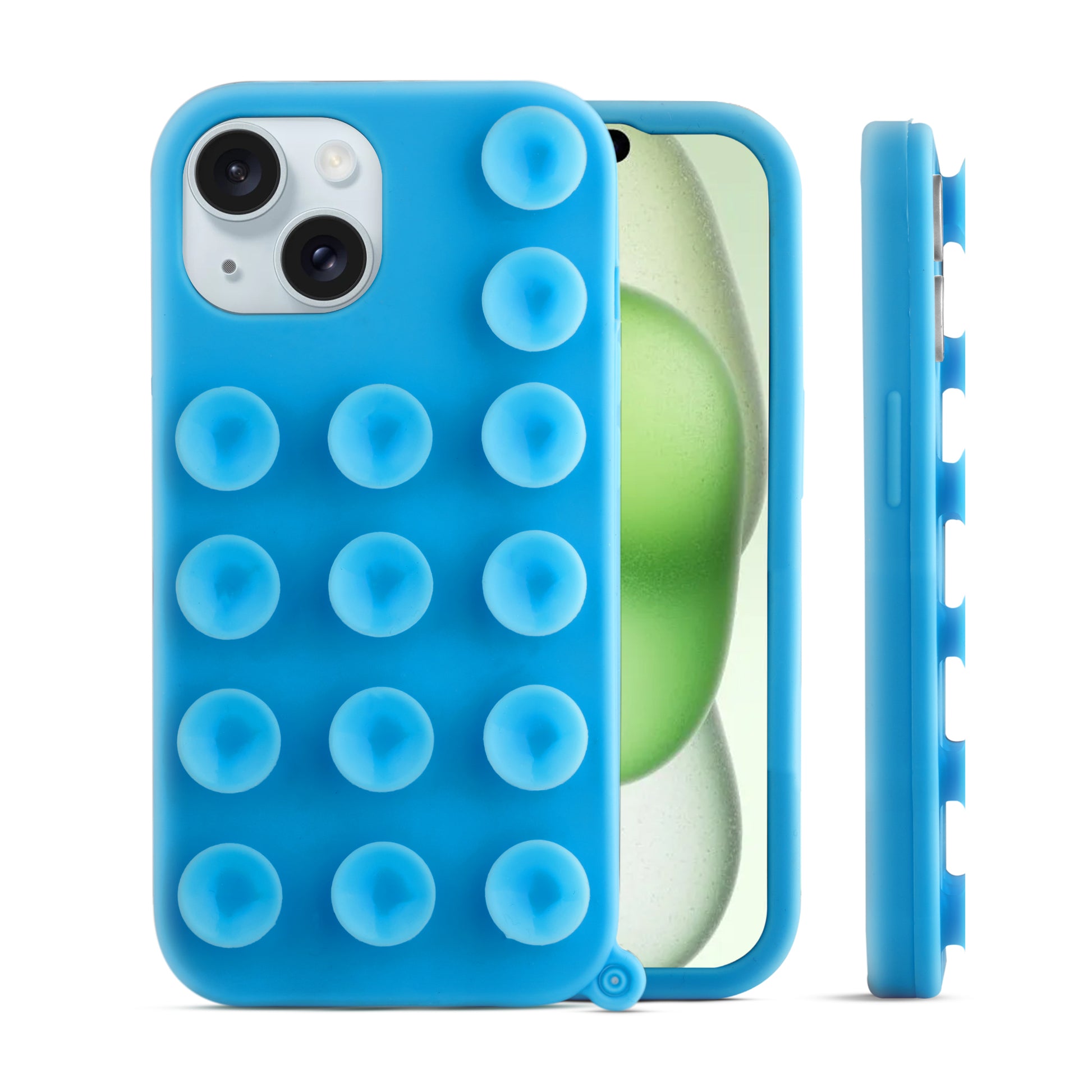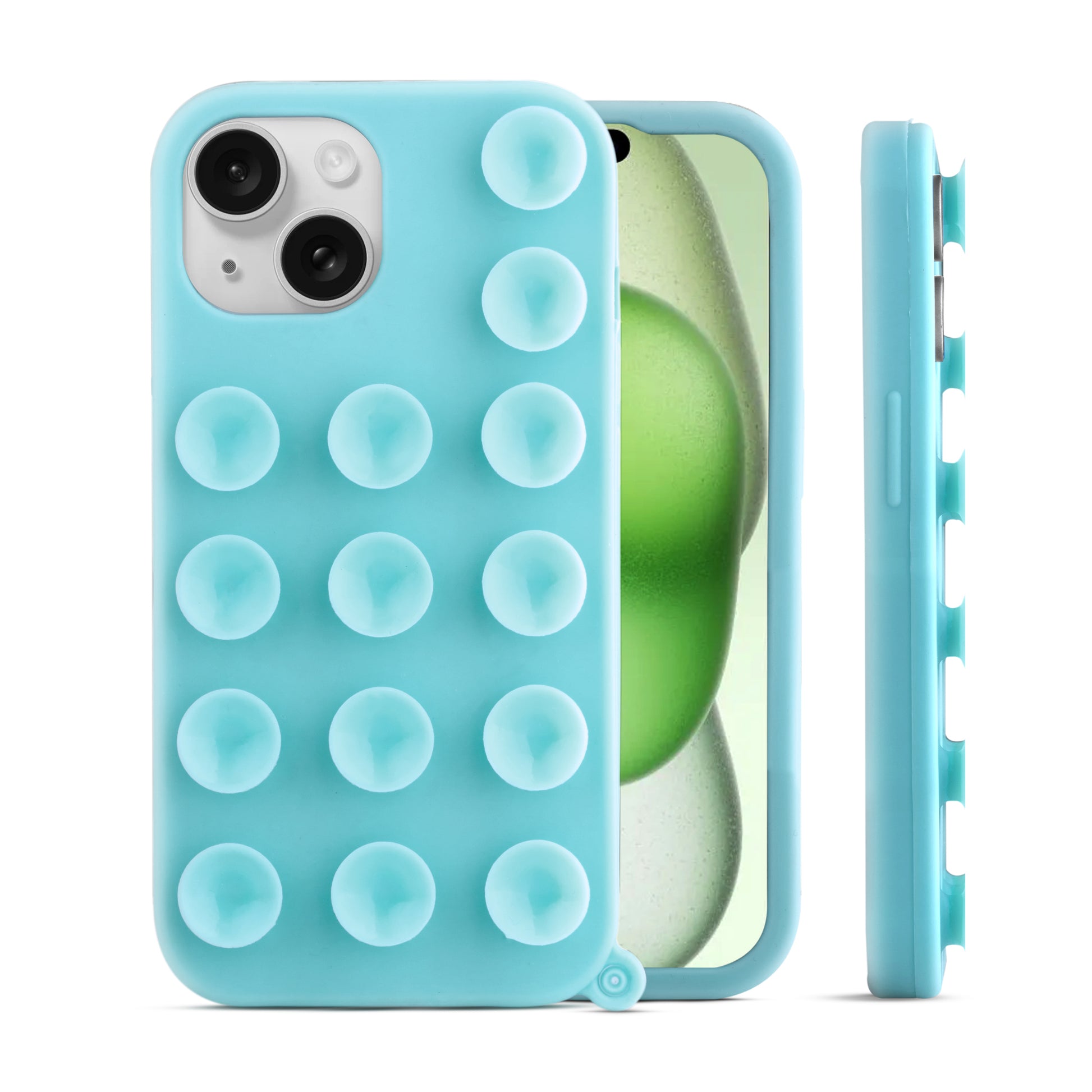Glossy Colorful Liquid Silicone Comfort Grip Suction Case for Apple iPhone 15 Plus with Soft Touch Matte Finish & Built in Suction Pads