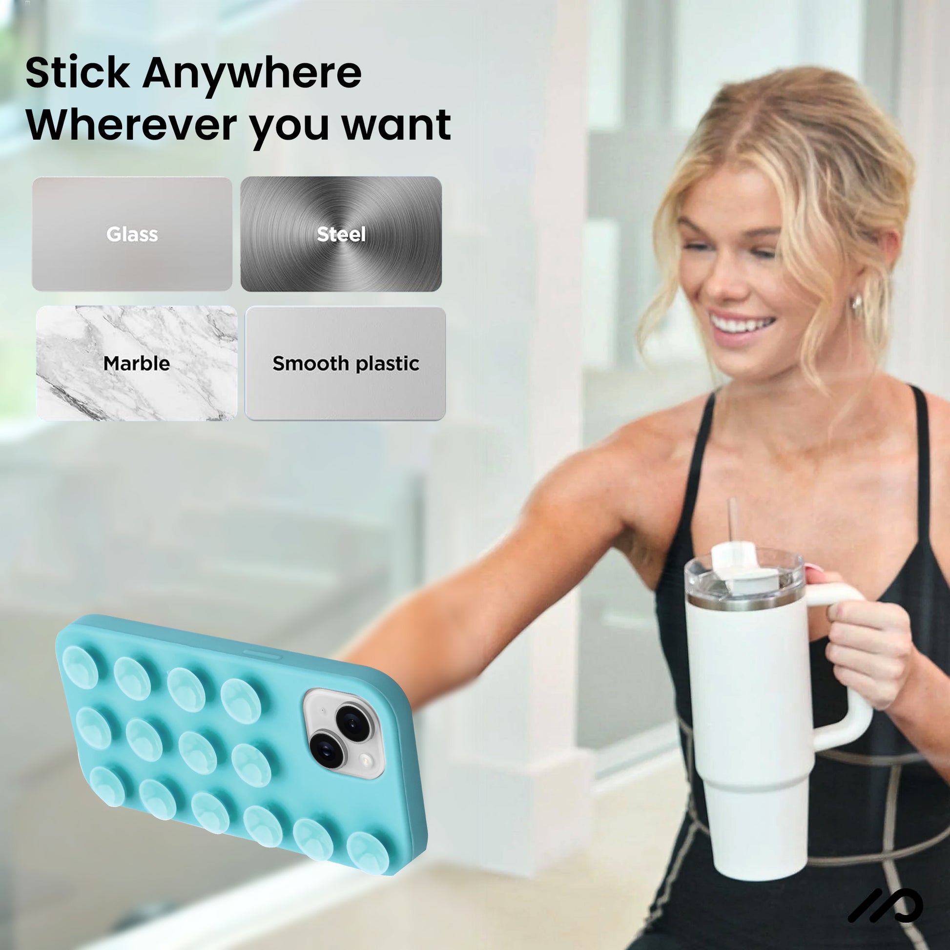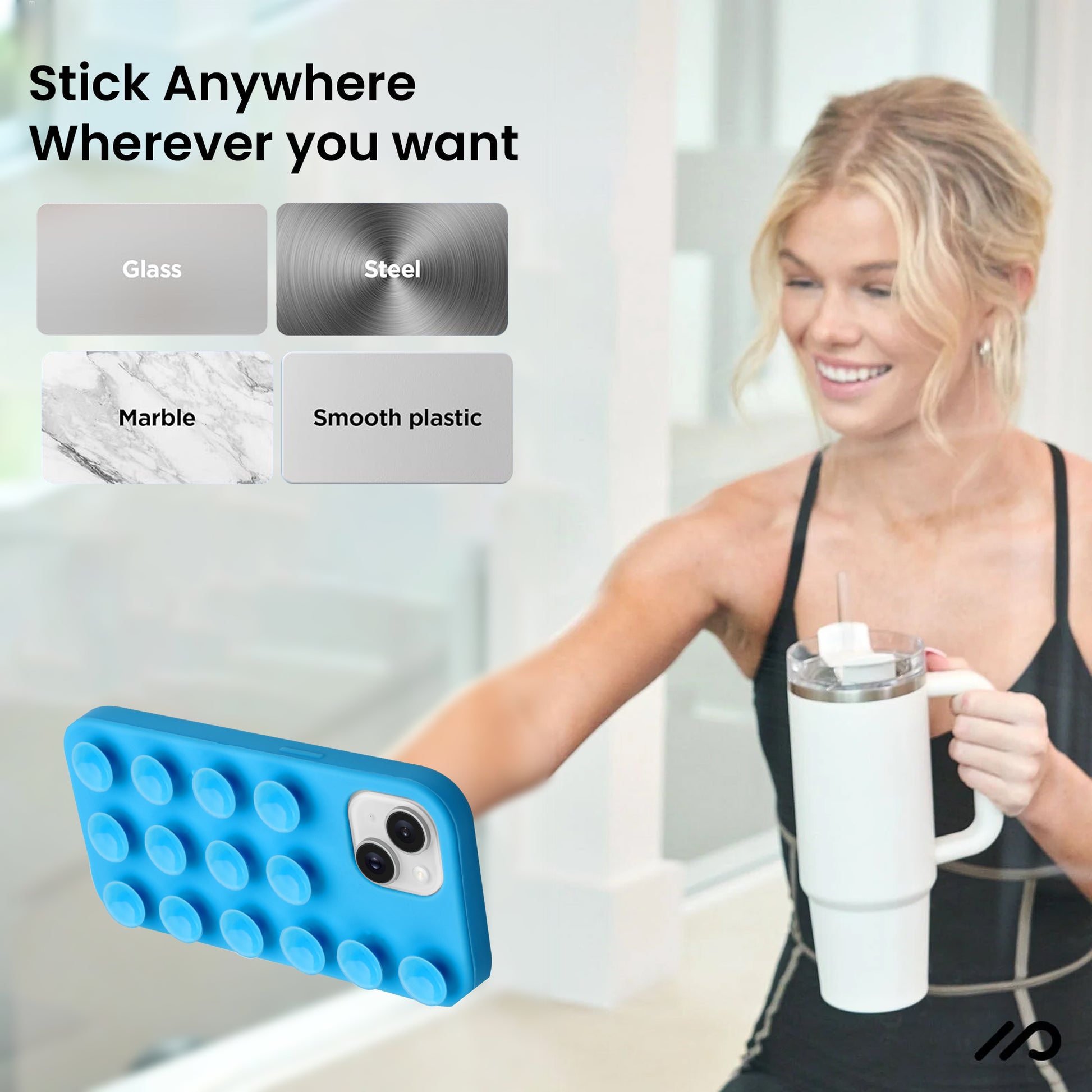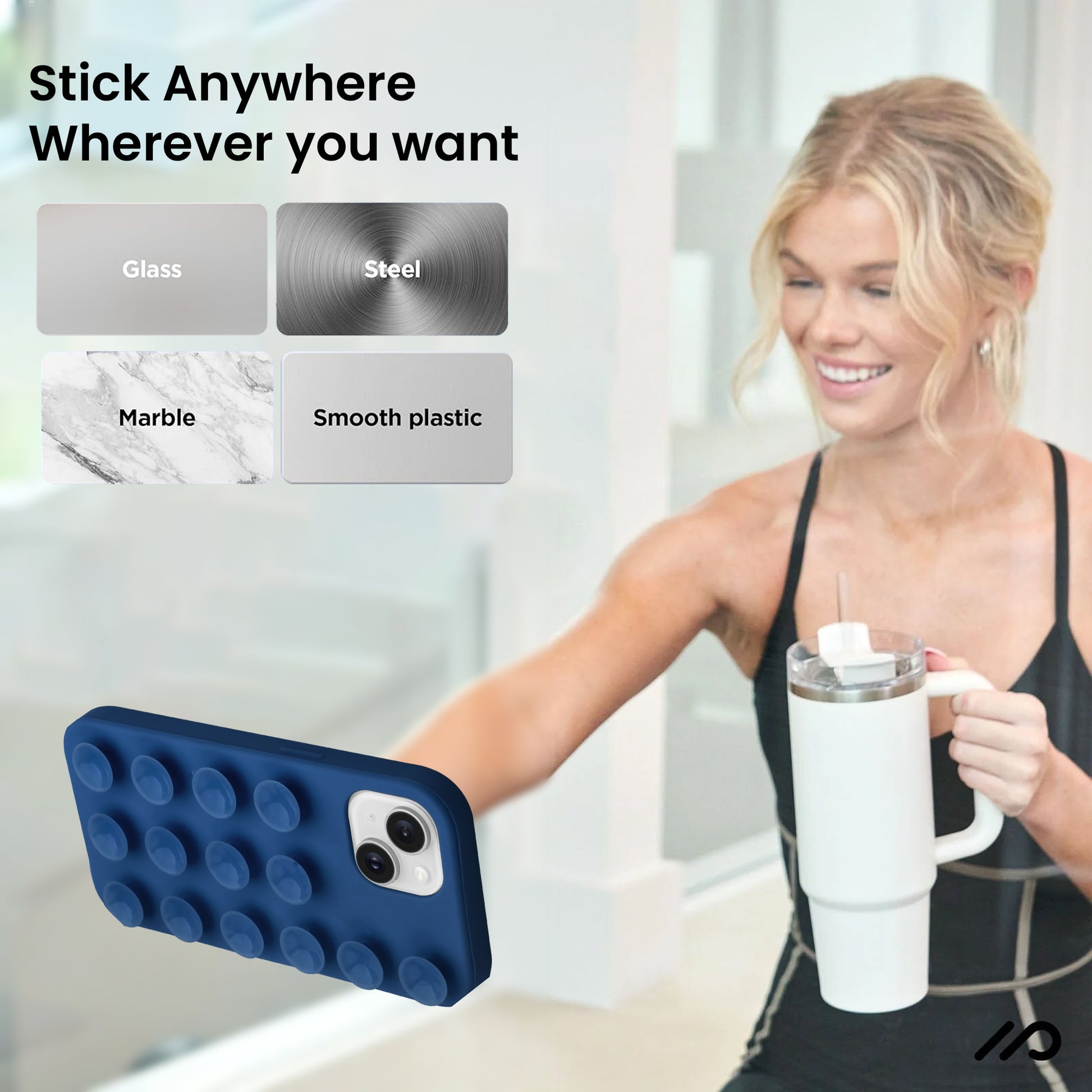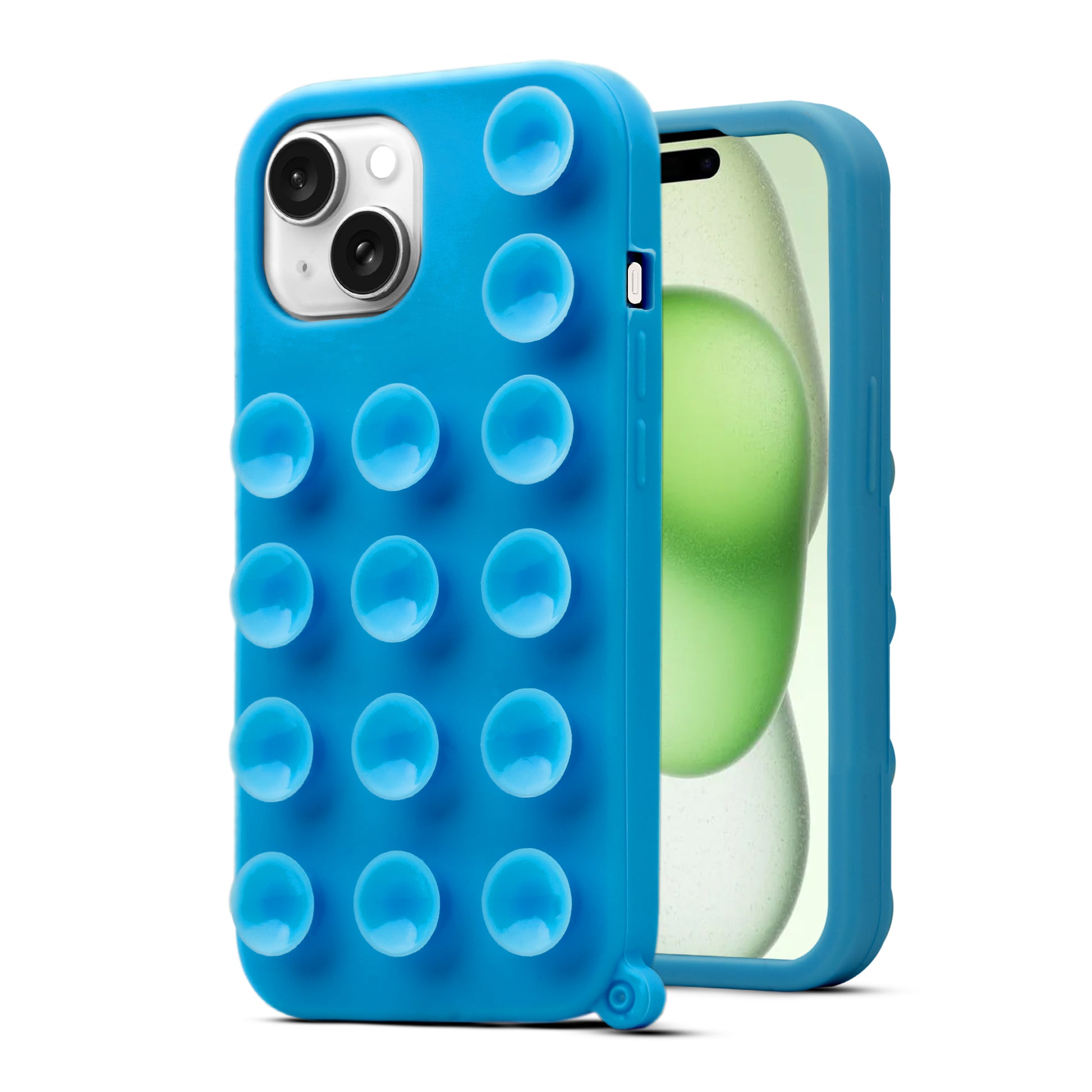 Glossy Colorful Liquid Silicone Comfort Grip Suction Case for Apple iPhone 15 Plus with Soft Touch Matte Finish & Built in Suction Pads