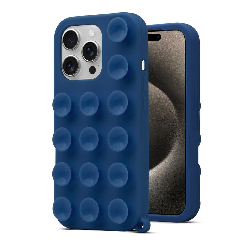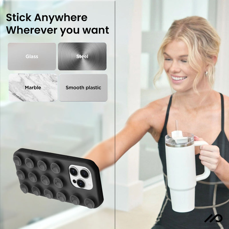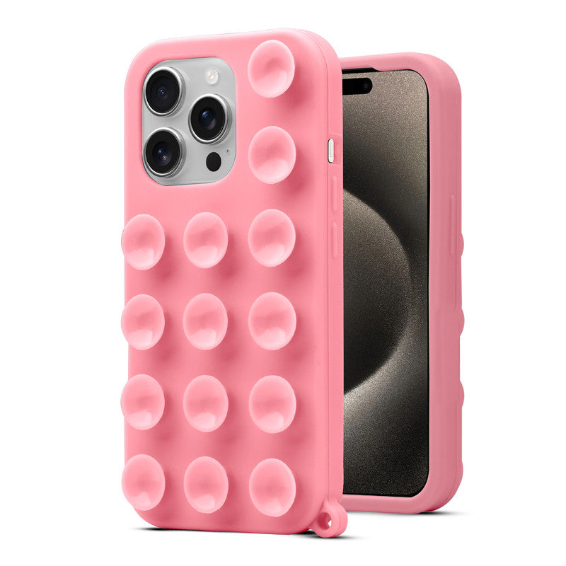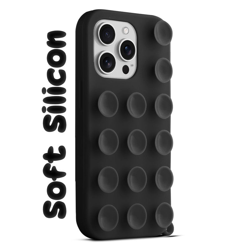 Glossy Colorful Liquid Silicone Comfort Grip Suction Case for Apple iPhone 15 Pro Max with Soft Touch Matte Finish & Built in Suction Pads