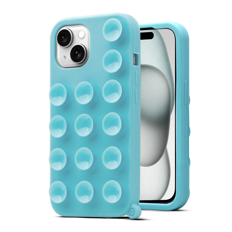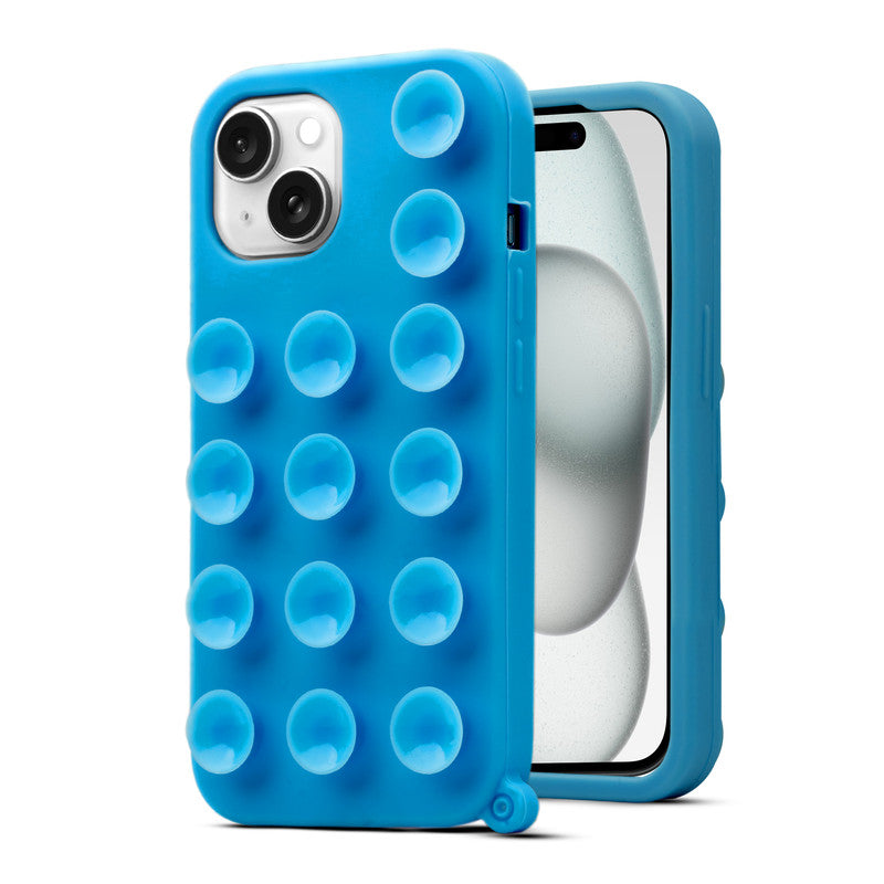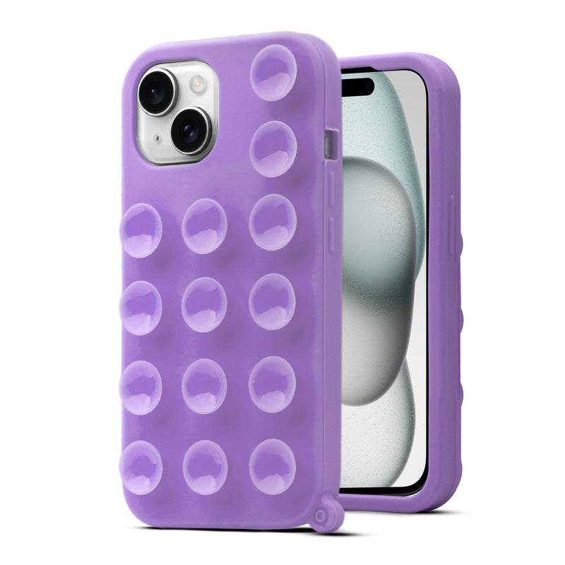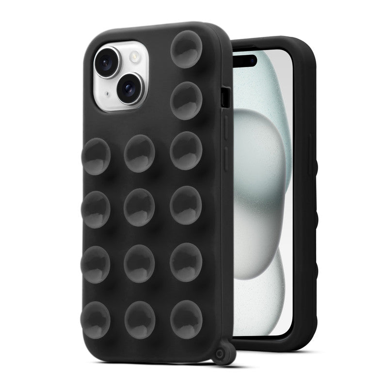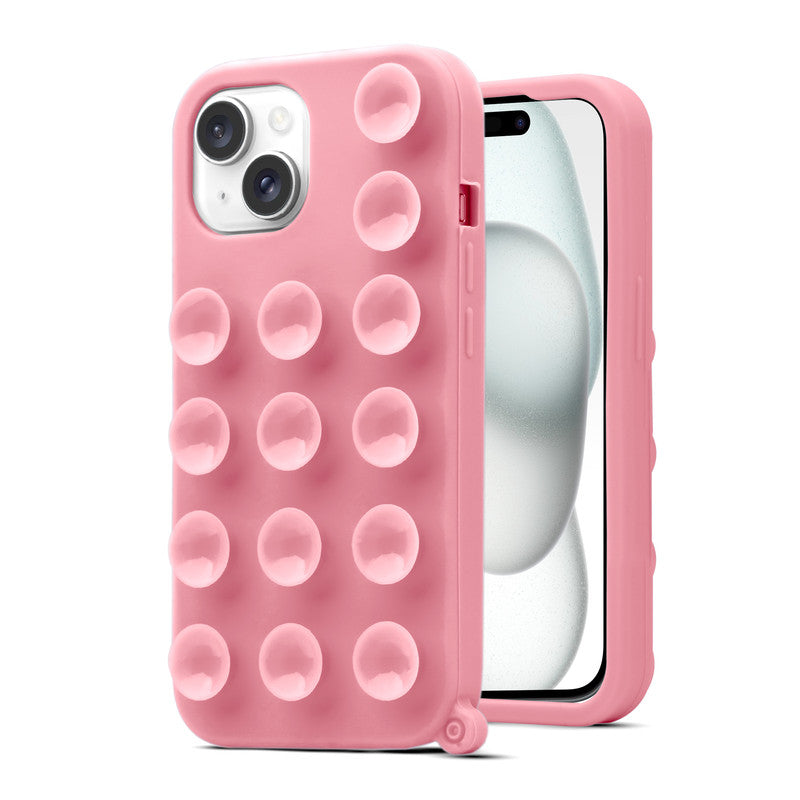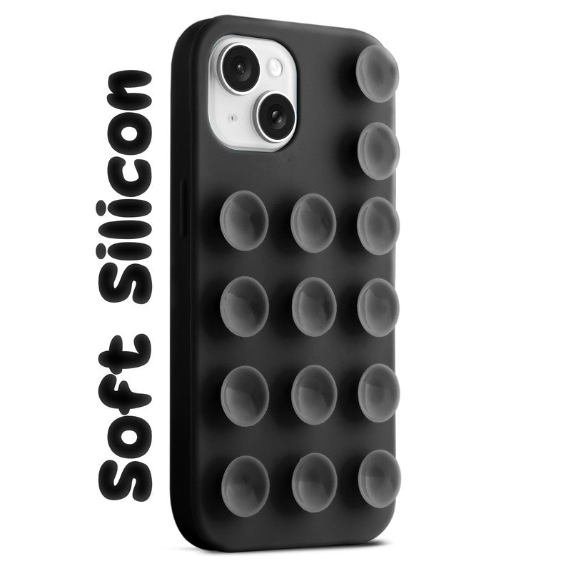 Glossy Colorful Liquid Silicone Comfort Grip Suction Case for Apple iPhone 15 with Soft Touch Matte Finish & Built in Suction Pads
