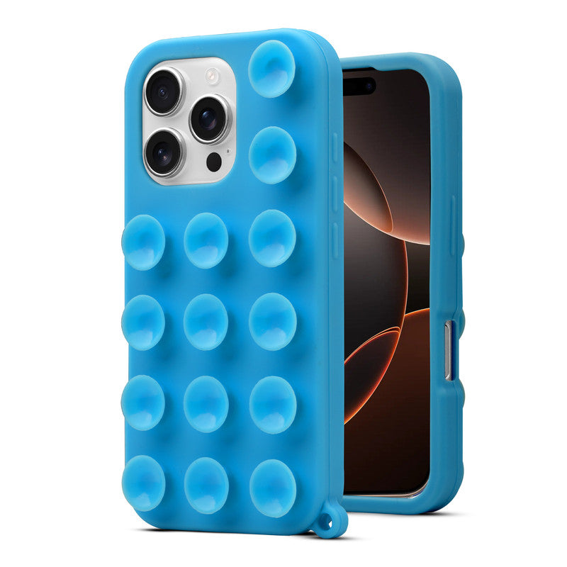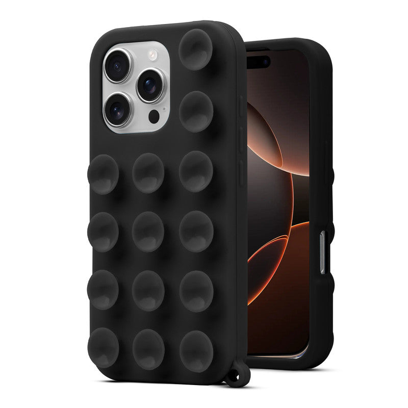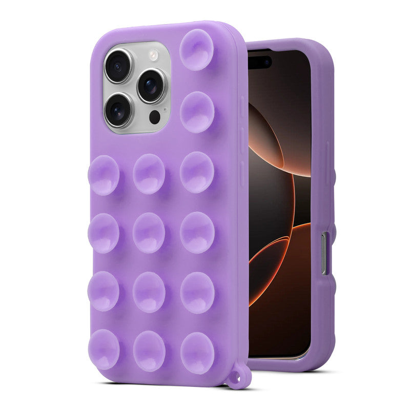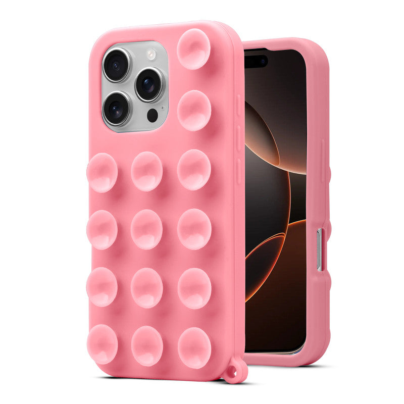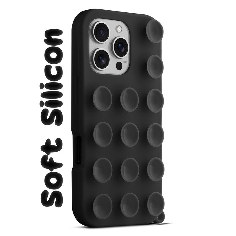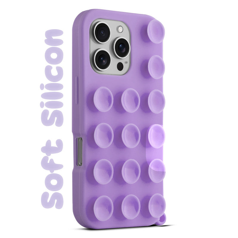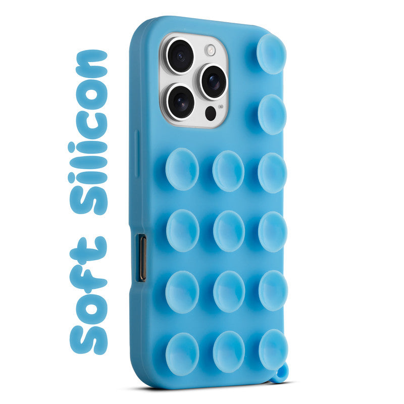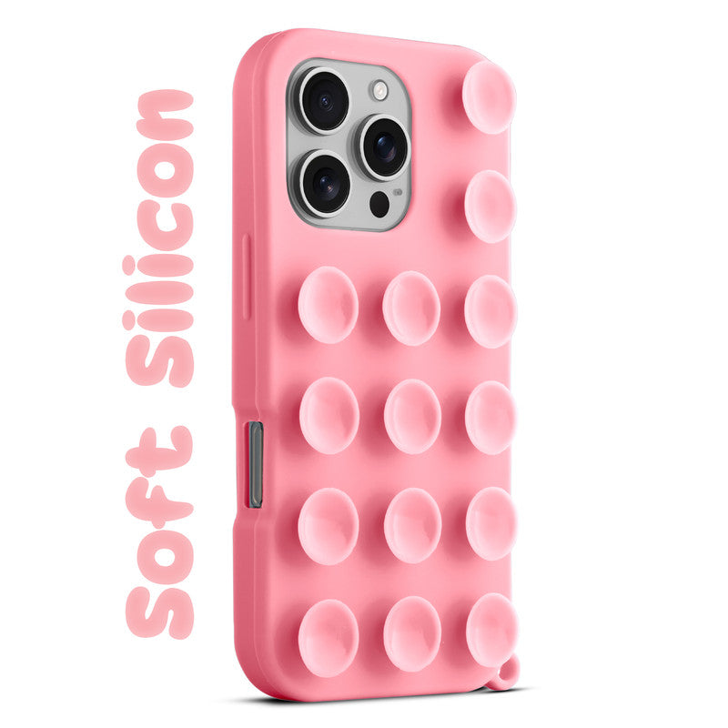 Glossy Colorful Liquid Silicone Comfort Grip Suction Case for Apple iPhone 16 Pro with Soft Touch Matte Finish & Built in Suction Pads