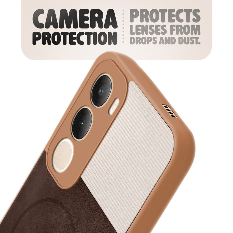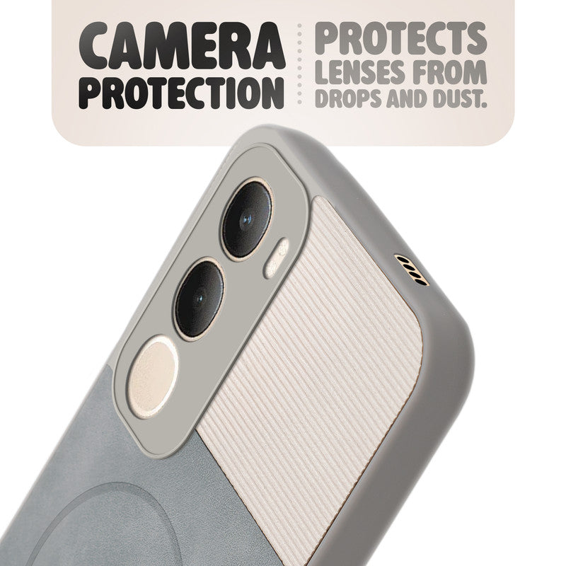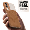- Hybrid Material Construction : Features a hard back with half faux leather (textured and smooth) for a premium look, paired with shock absorbing silicone sides that provide enhanced grip and drop protection.
