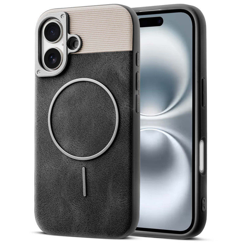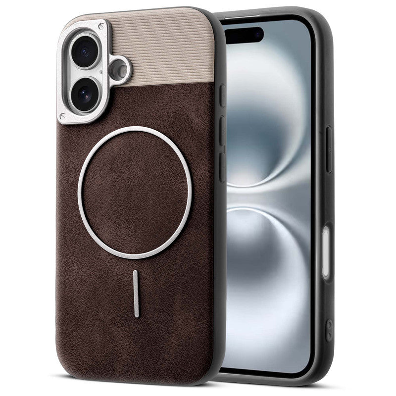 Luxury PU Leather Hard Back Case for Apple iPhone 16, With Micro-Fiber Cloth inside, MagSafe Compatible