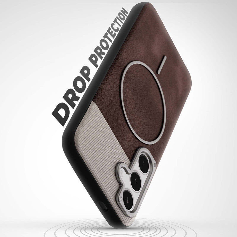 Luxury PU Leather Hard Back Case for Samsung S25 5G, With Micro-Fiber Cloth inside, MagSafe Compatible