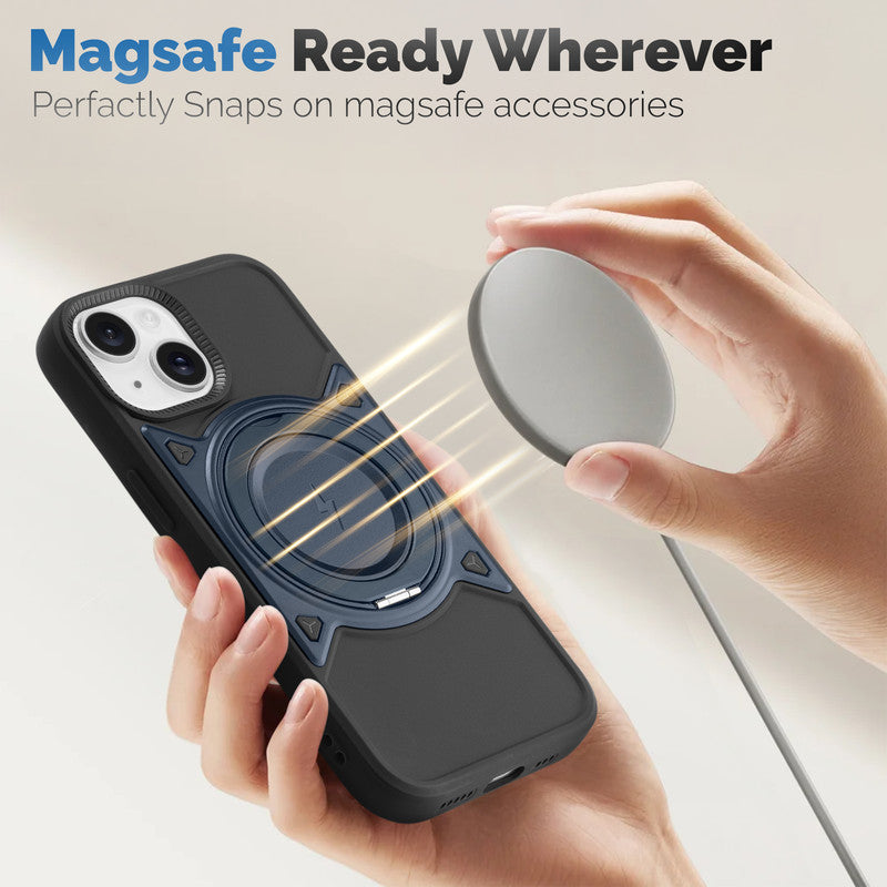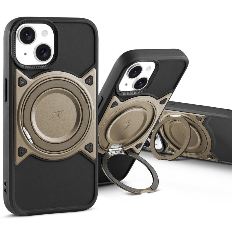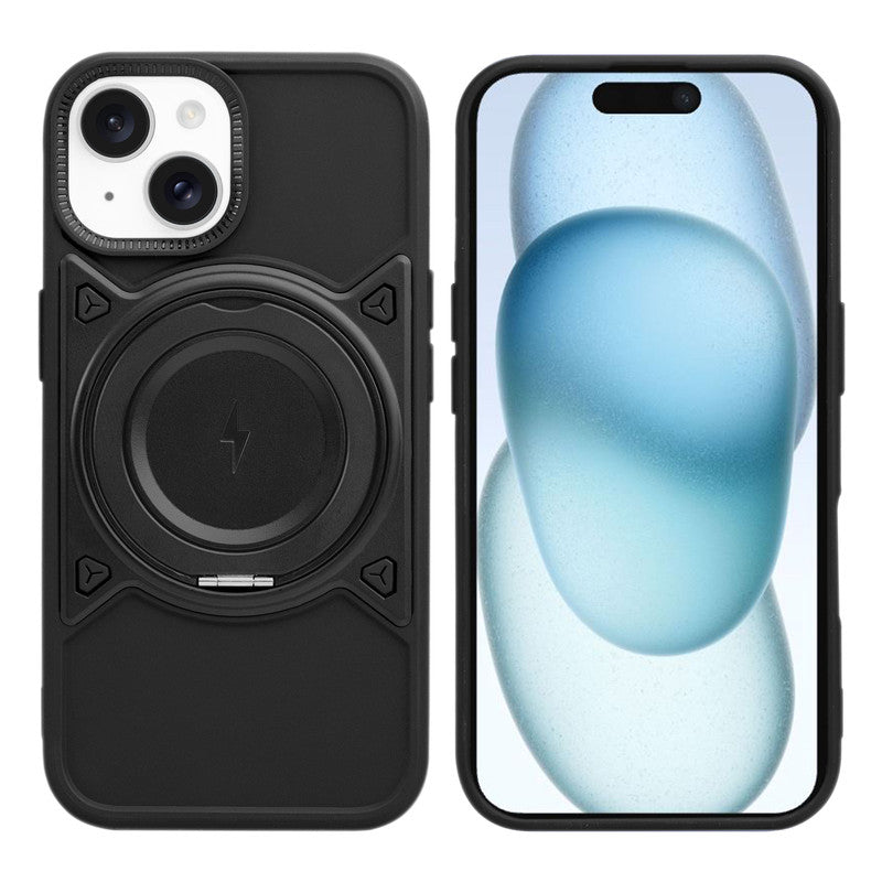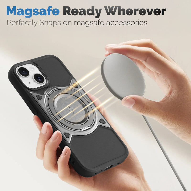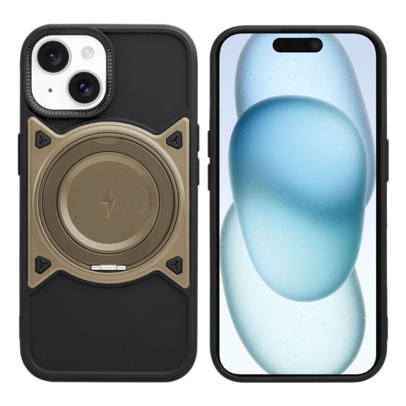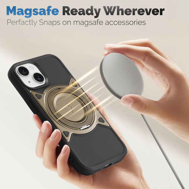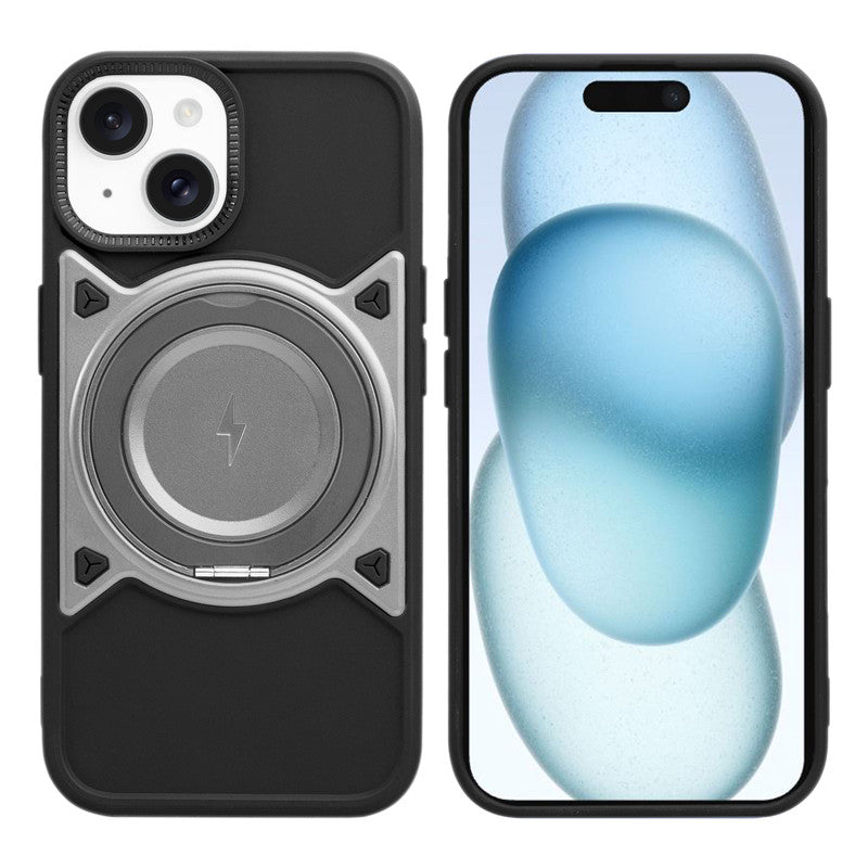 MagSafe Compatible with Metal Finish Ring Stand & Silicone Grip Back Case For Apple iPhone 15