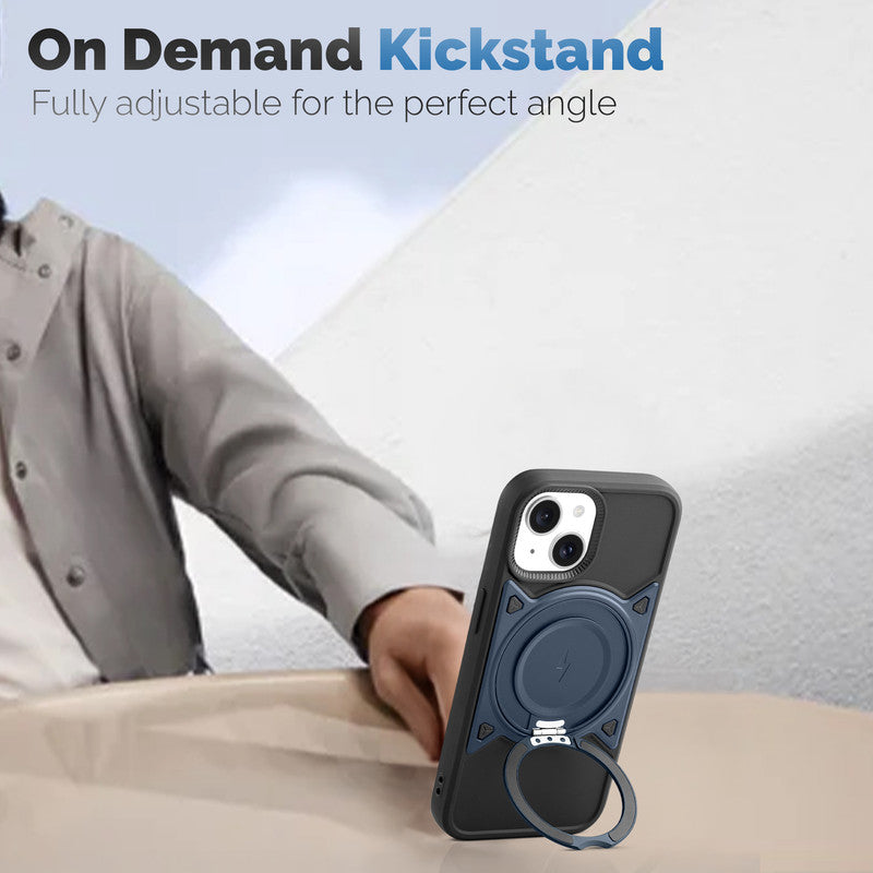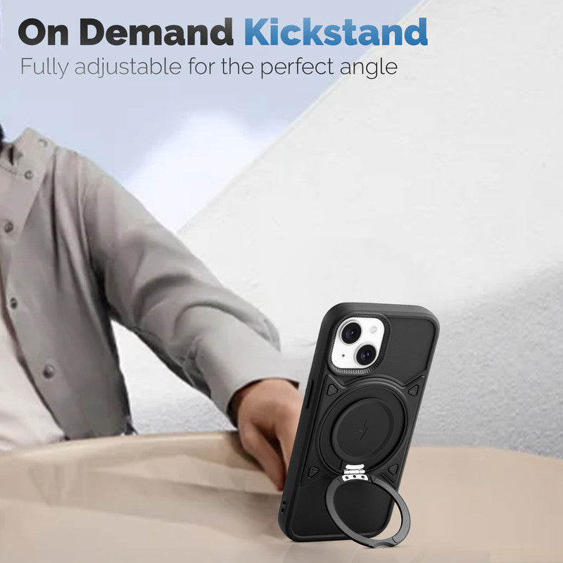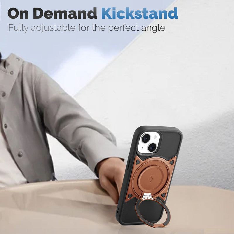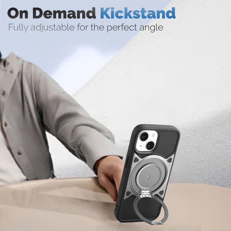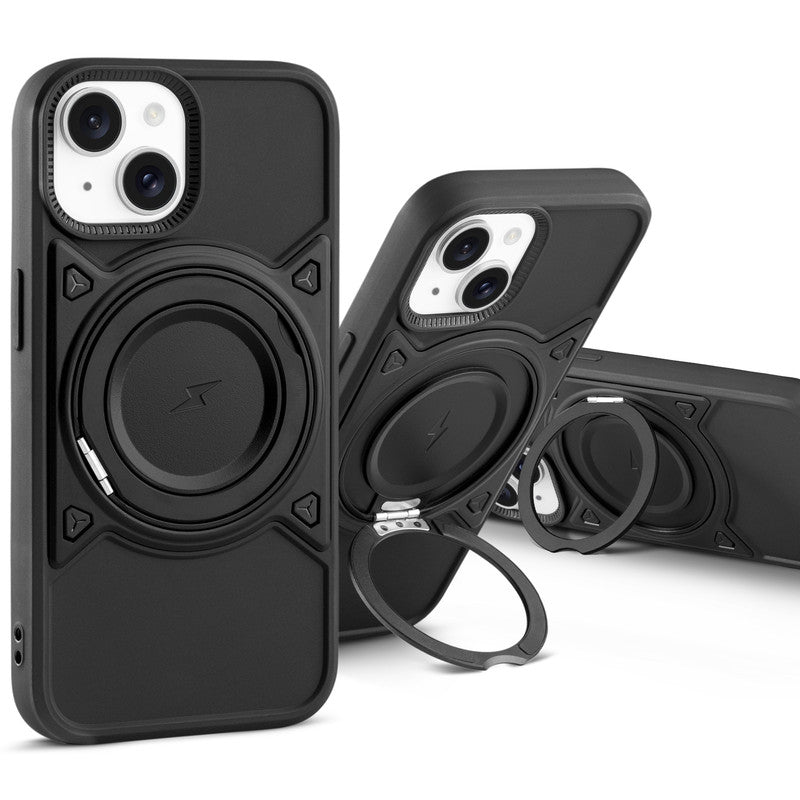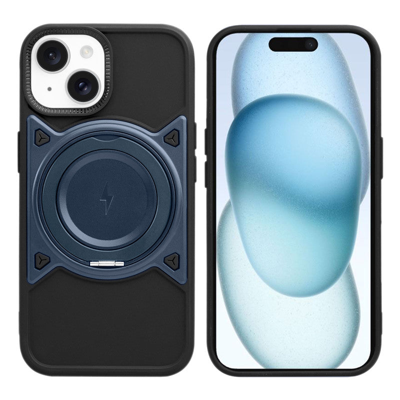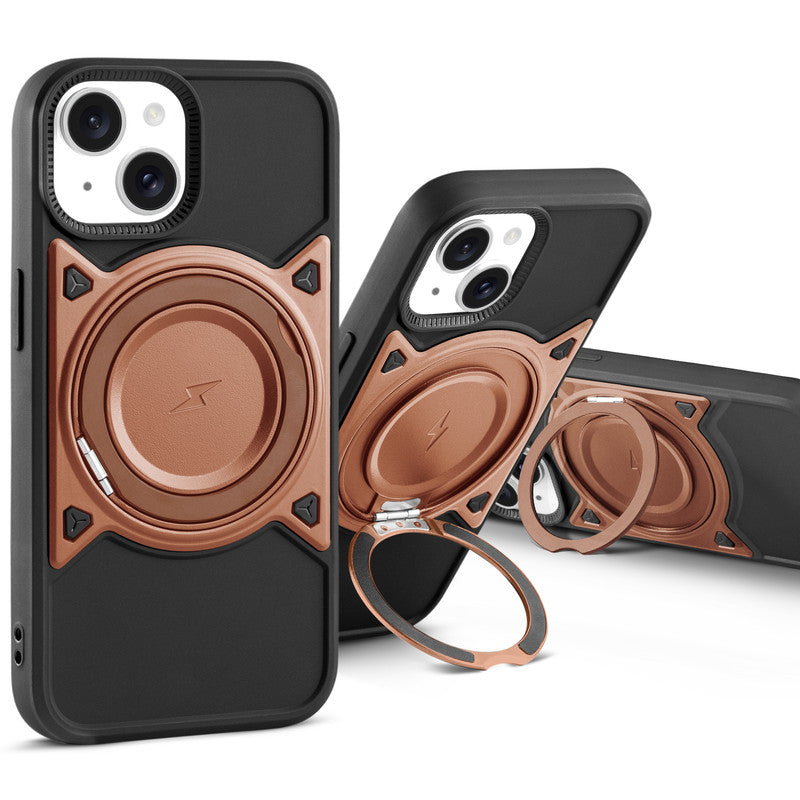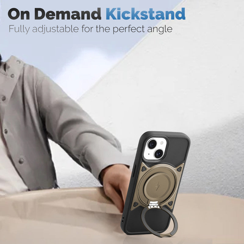MagSafe Compatible with Metal Finish Ring Stand & Silicone Grip Back Case For Apple iPhone 15