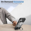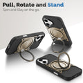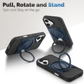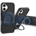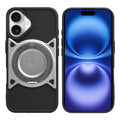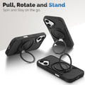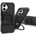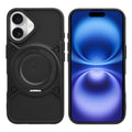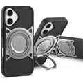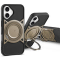 Wireless Charging Support Compatible with Metal Finish Ring Stand & Silicone Grip Back Case For Apple iPhone 16