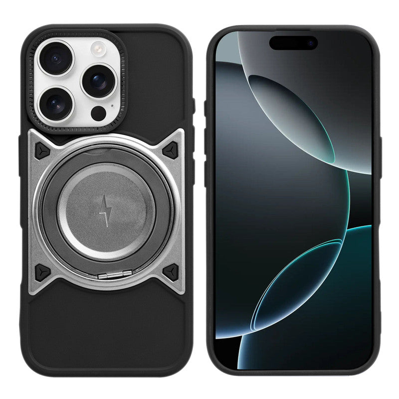 MagSafe Support with Metal Finish Ring Stand & Silicone Grip Back Case For Apple iphone 16 Pro Max