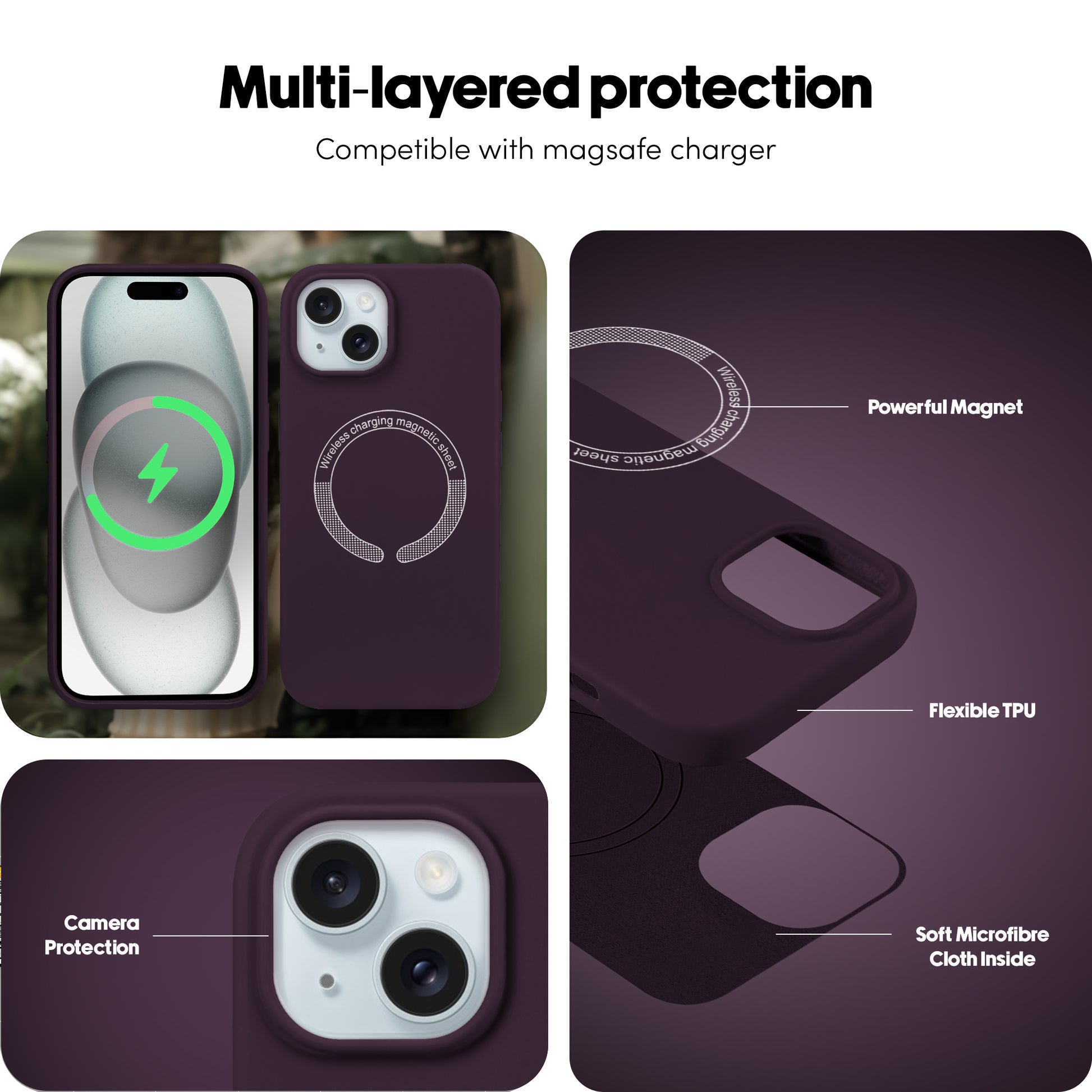MagSafe Compatible Silicone Back Cover for- Apple iPhone 15
