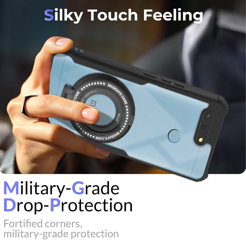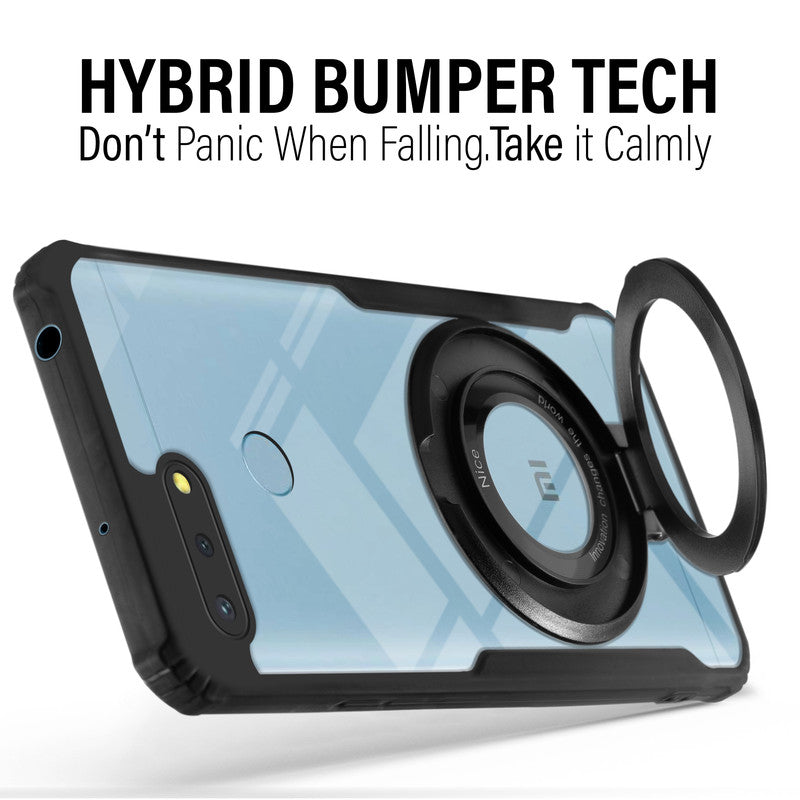 Premium Acrylic Transparent Case with Matte Ring Holder Kickstand Back Cover for Redmi 6