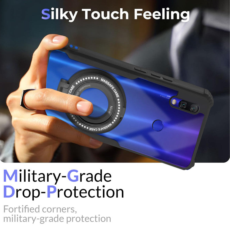 Premium Acrylic Transparent Case with Matte Ring Holder Kickstand Back Cover for Redmi Note 7