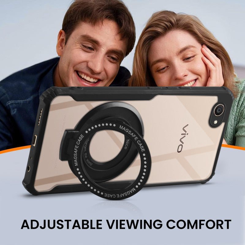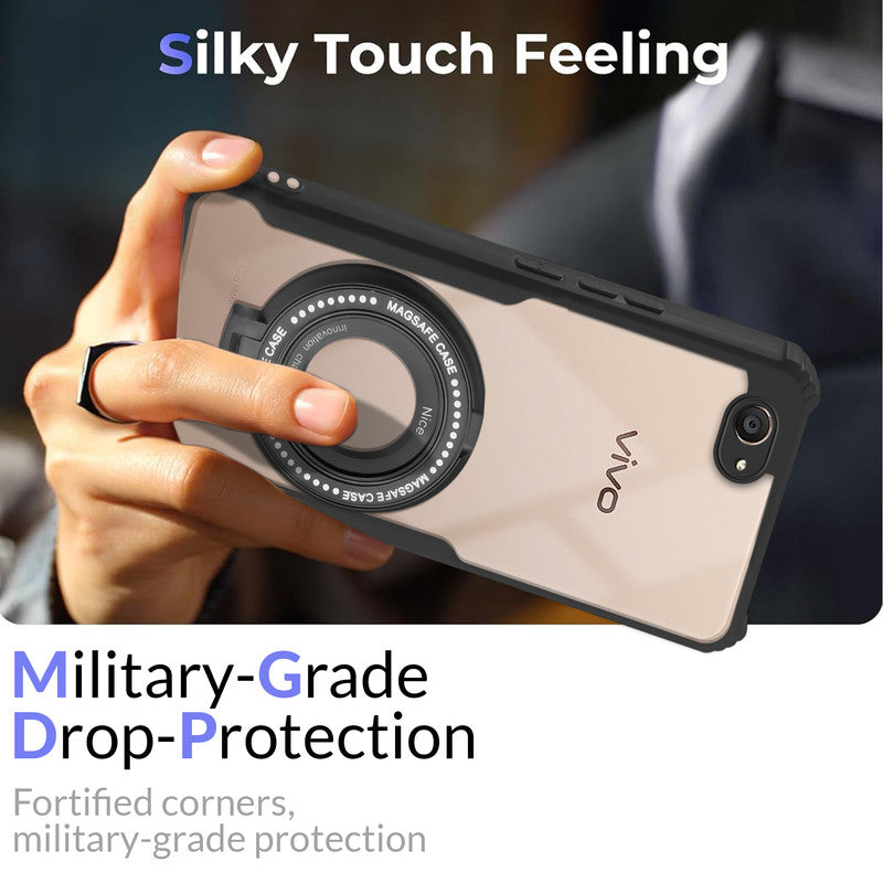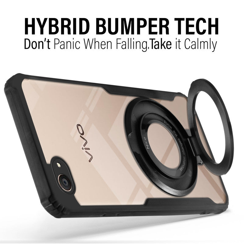 Premium Acrylic Transparent Case with Matte Ring Holder Kickstand Back Cover for Vivo V5