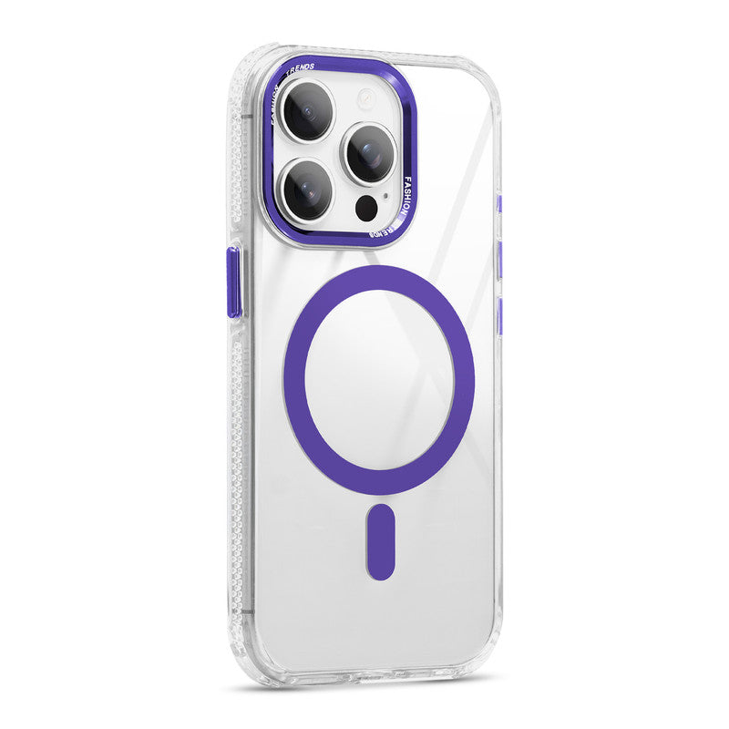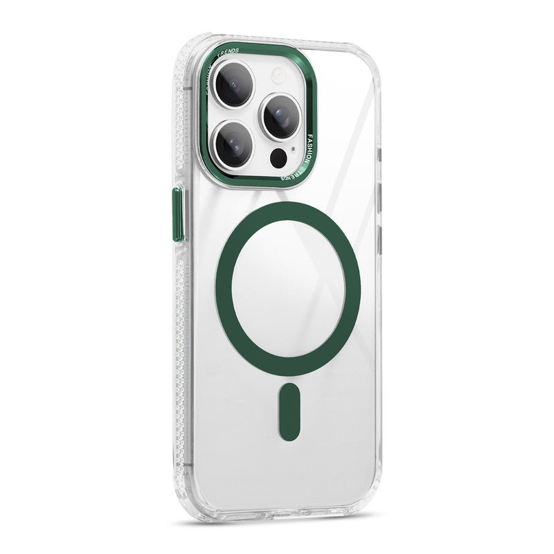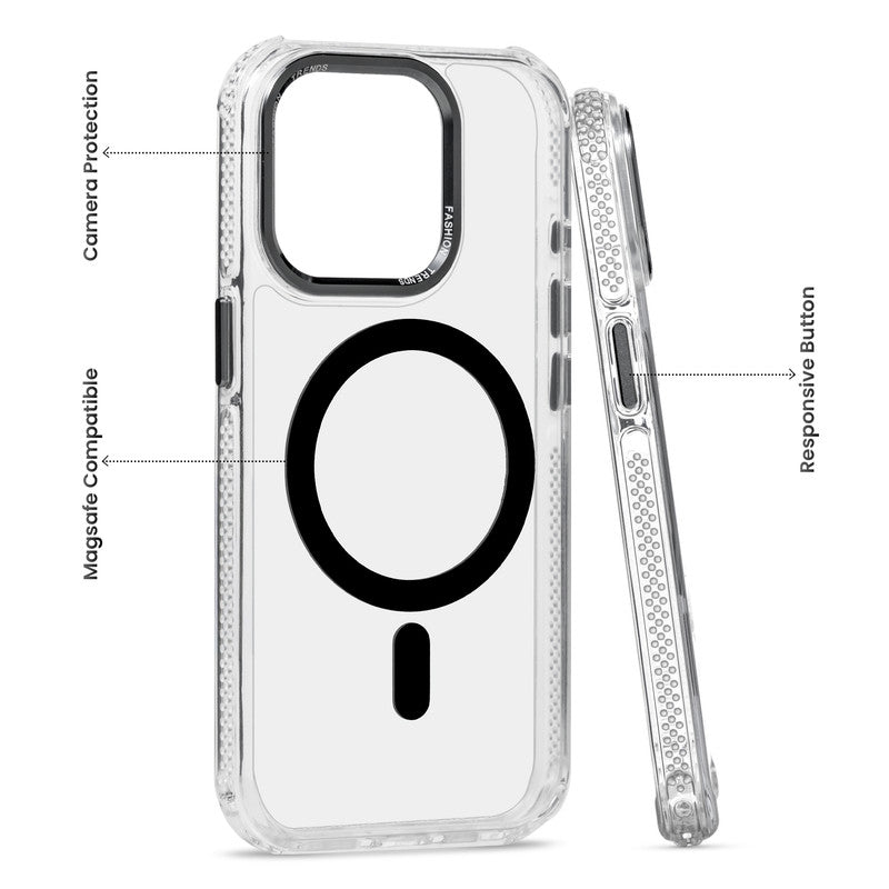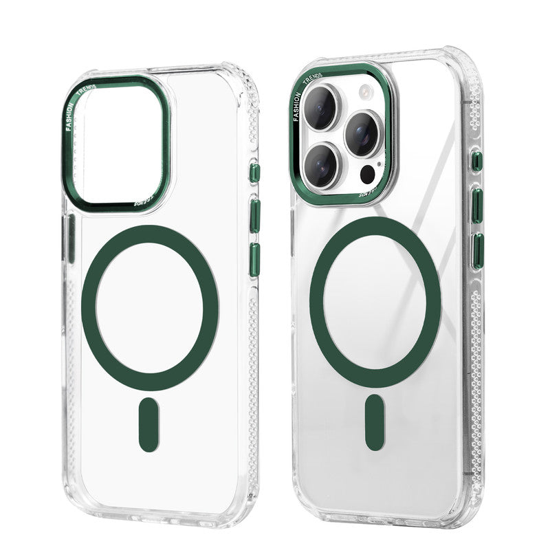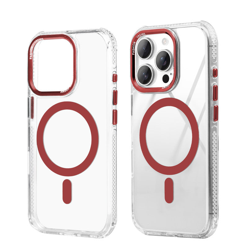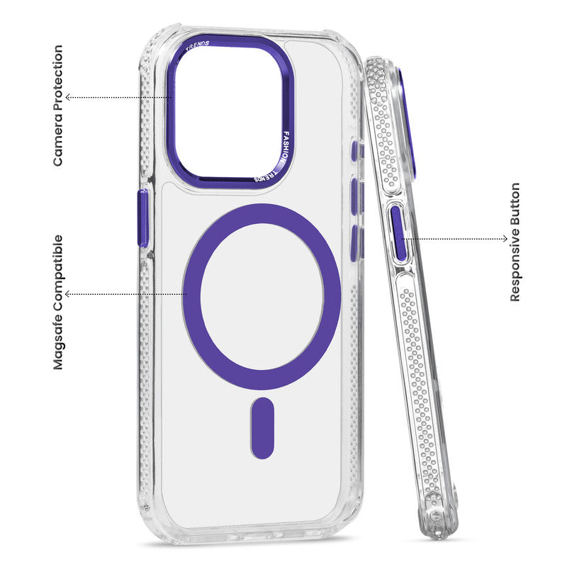 Premium Crystal Clear Hard Back Case For Apple iPhone 15 Pro Max with Strong MagSafe Magnet & Colored Metal finish Ring Camera Protection