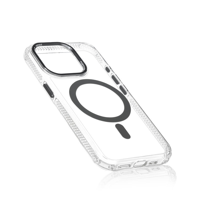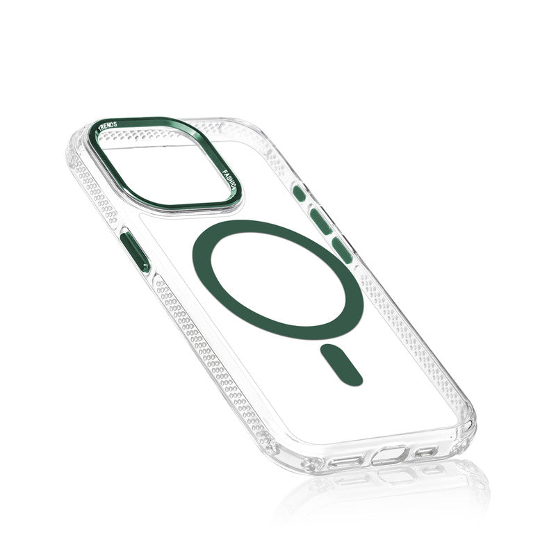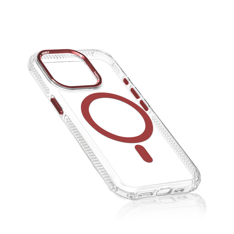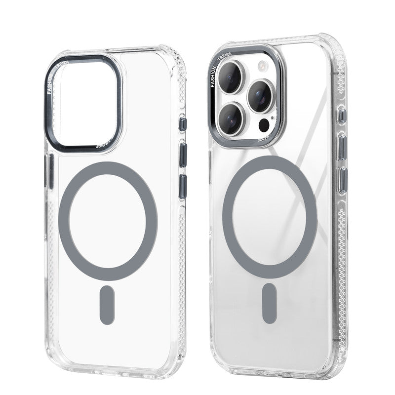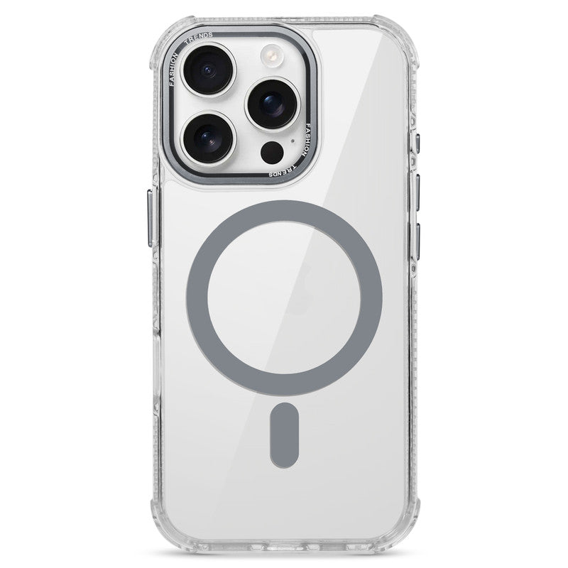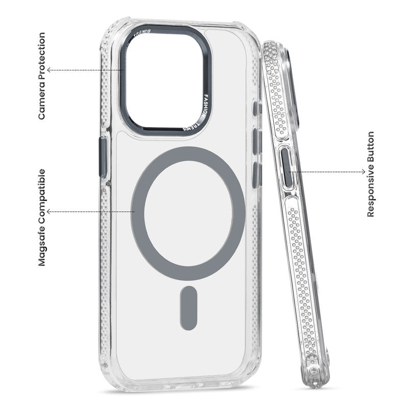 Premium Crystal Clear Hard Back Case For Apple iPhone 15 Pro Max with Strong MagSafe Magnet & Colored Metal finish Ring Camera Protection