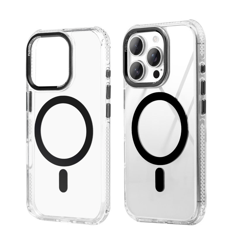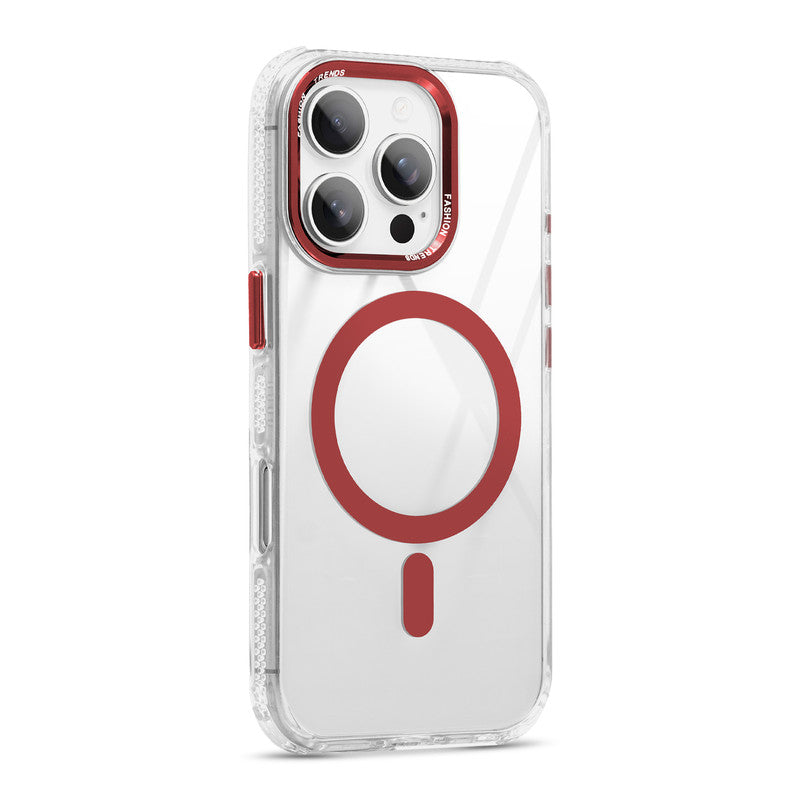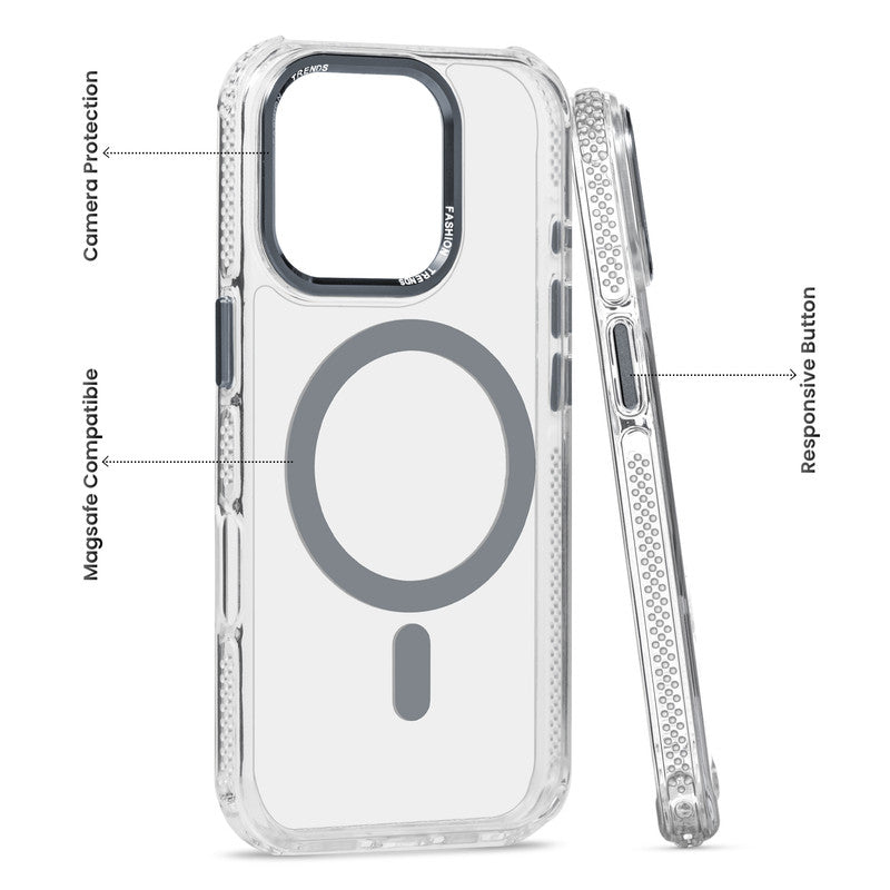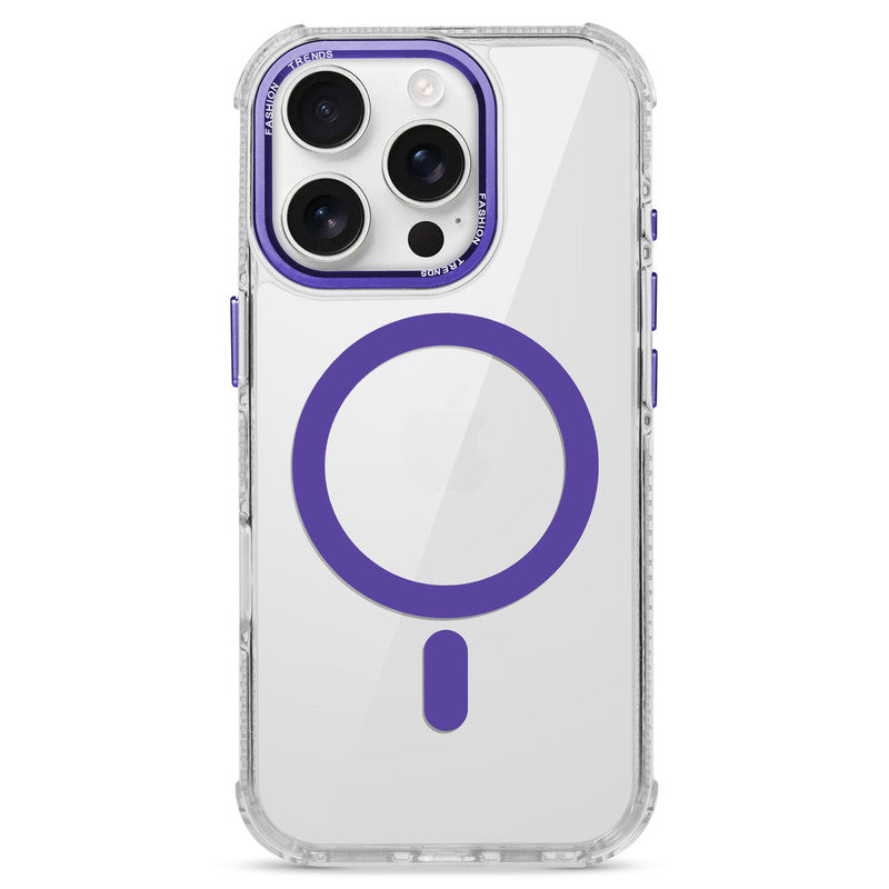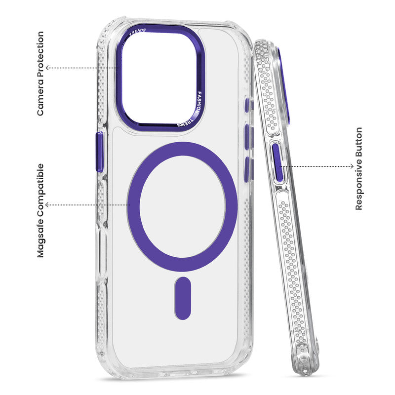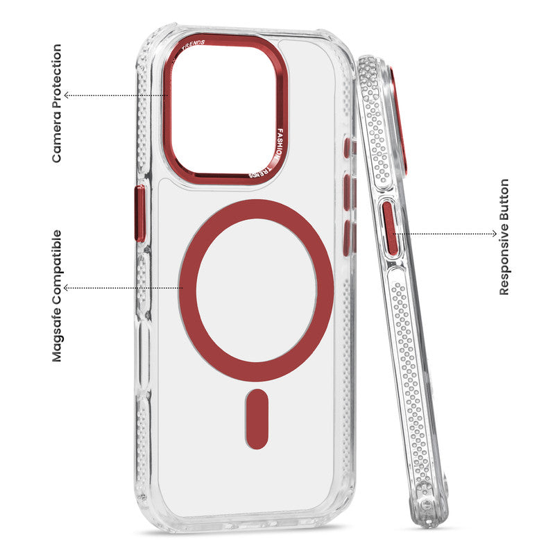 Premium Crystal Clear Hard Back Case For Apple iphone 16 Pro Max with Strong MagSafe Magnet & Colored Metal finish Ring Camera Protection