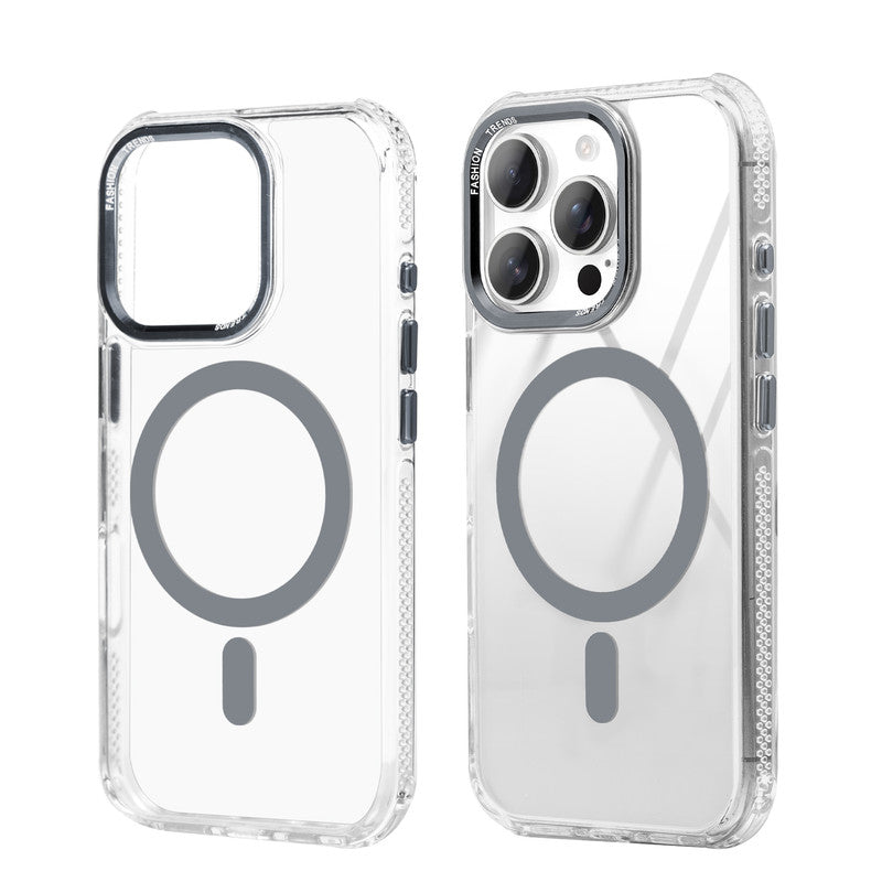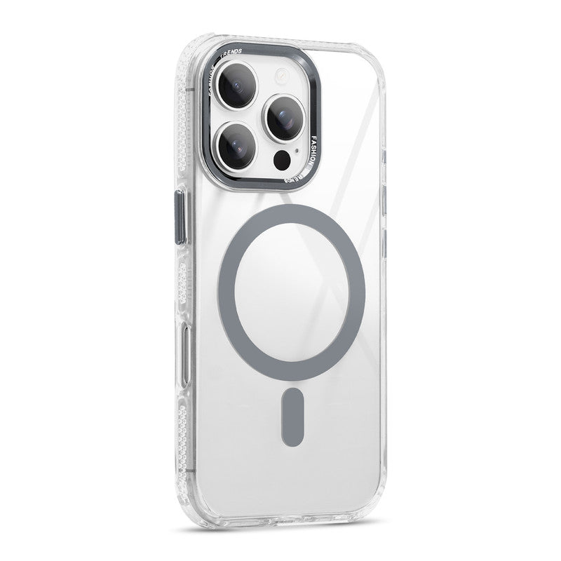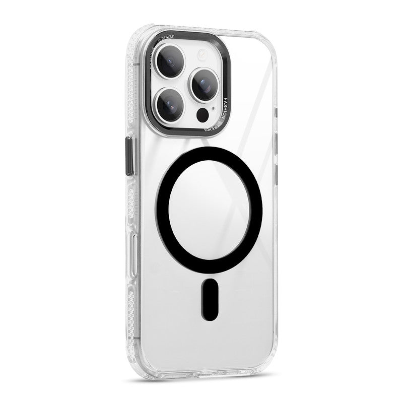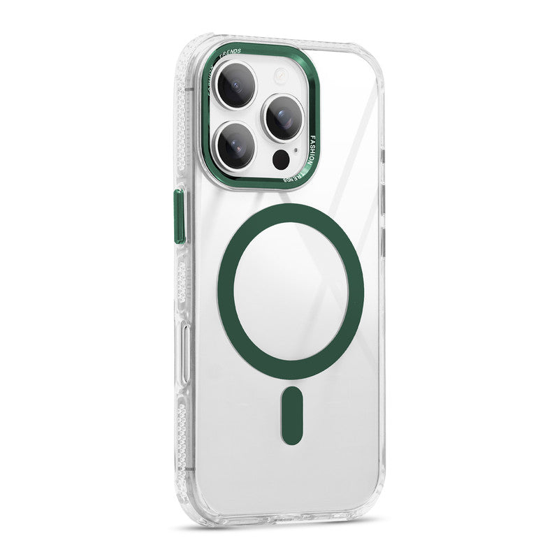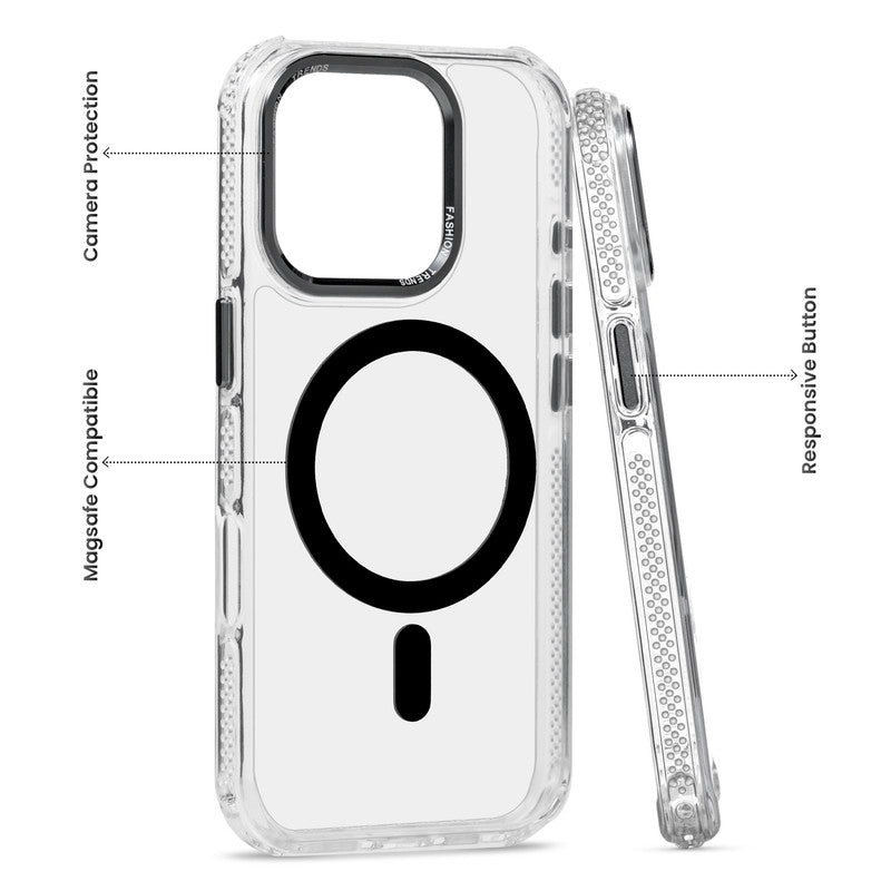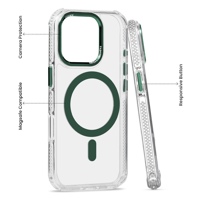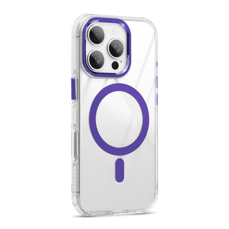 Premium Crystal Clear Hard Back Case For Apple iPhone 16 Pro with Strong MagSafe Magnet & Colored Metal finish Ring Camera Protection