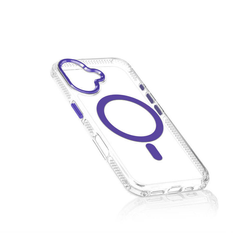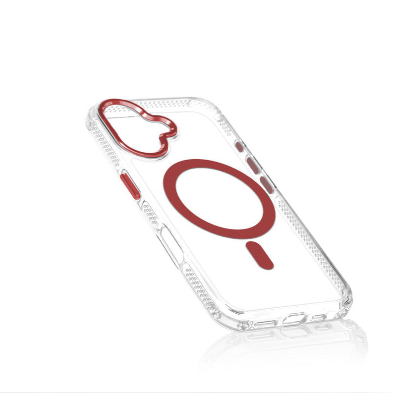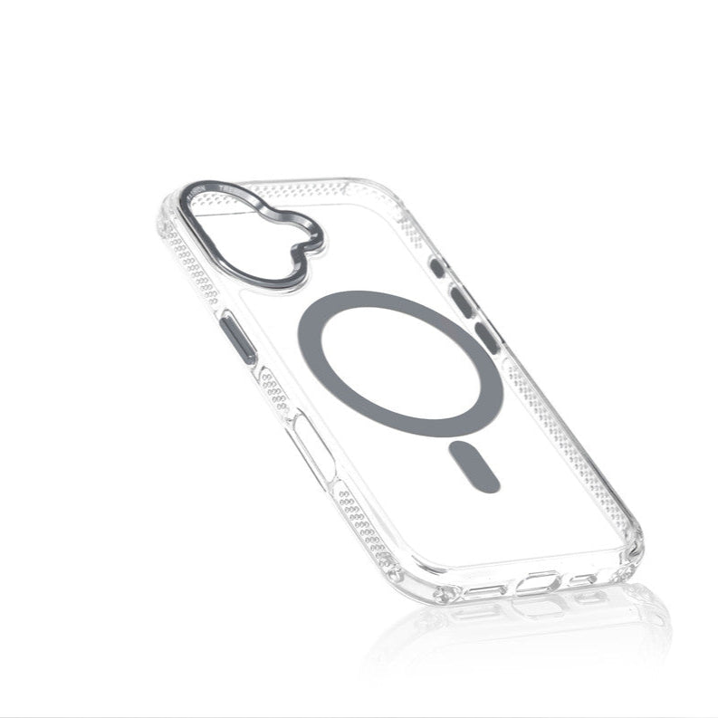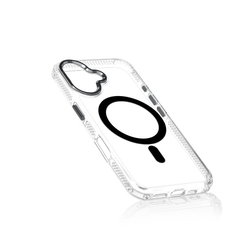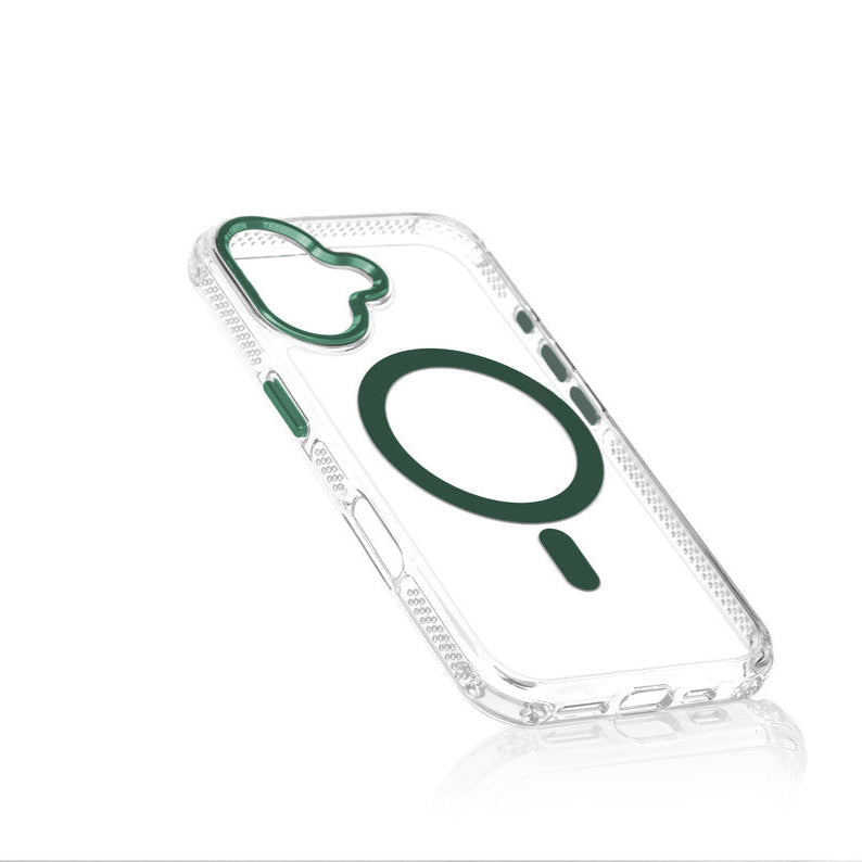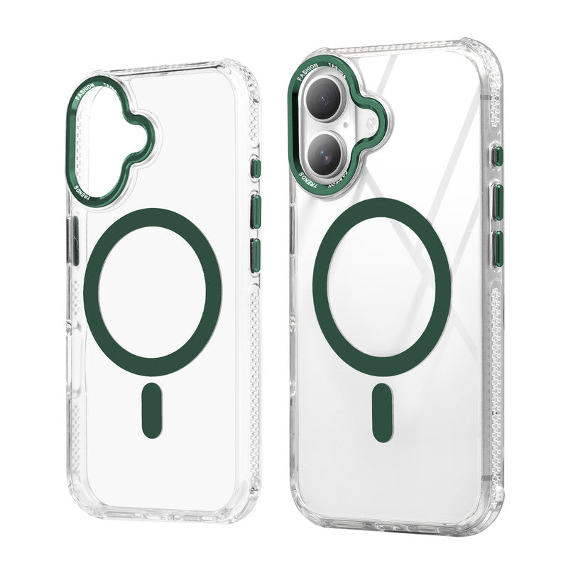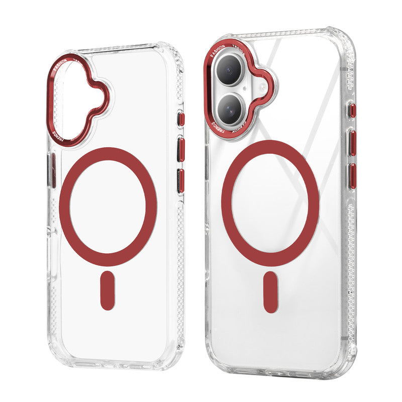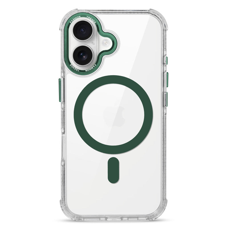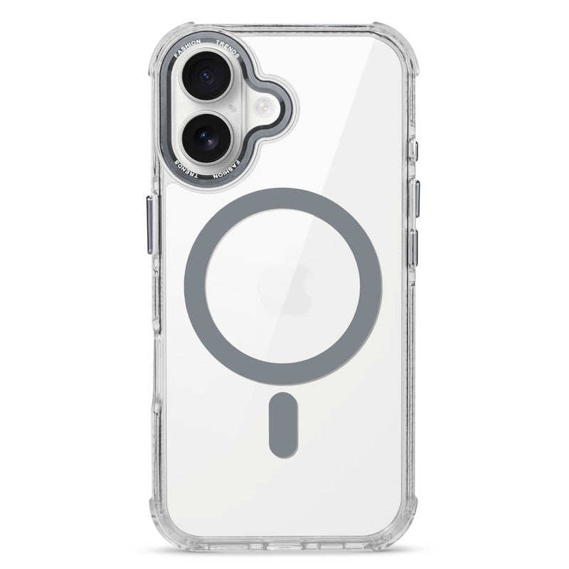 Premium Crystal Clear Hard Back Case For Apple iPhone 16 with Strong MagSafe Magnet & Colored Metal finish Ring Camera Protection