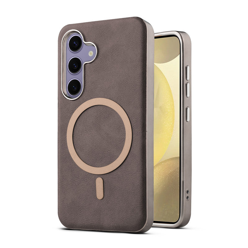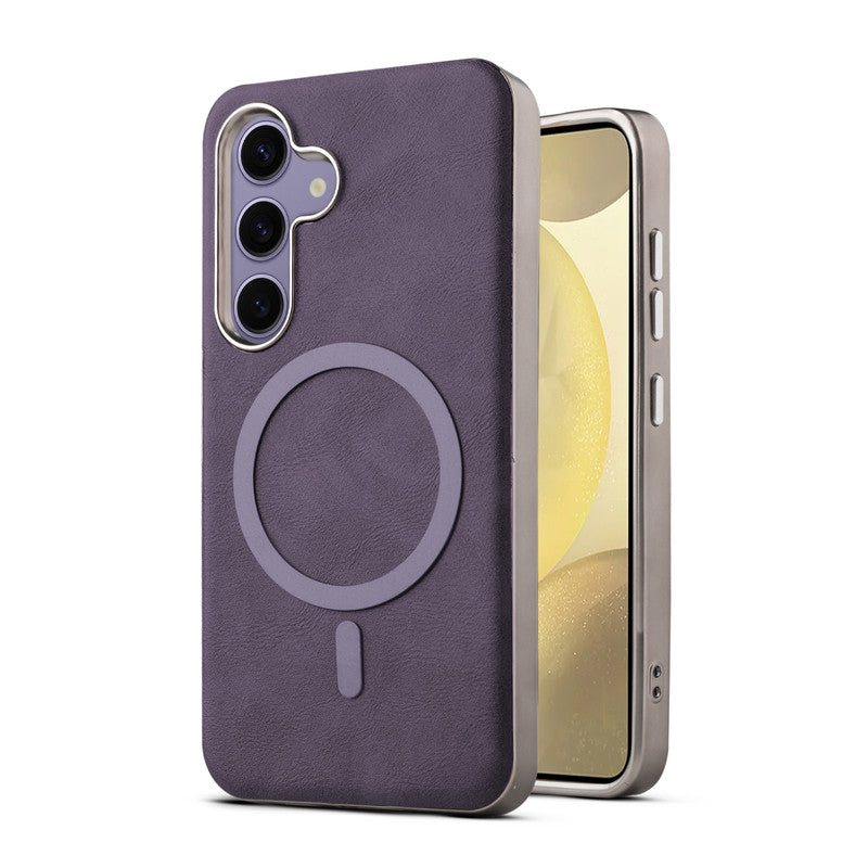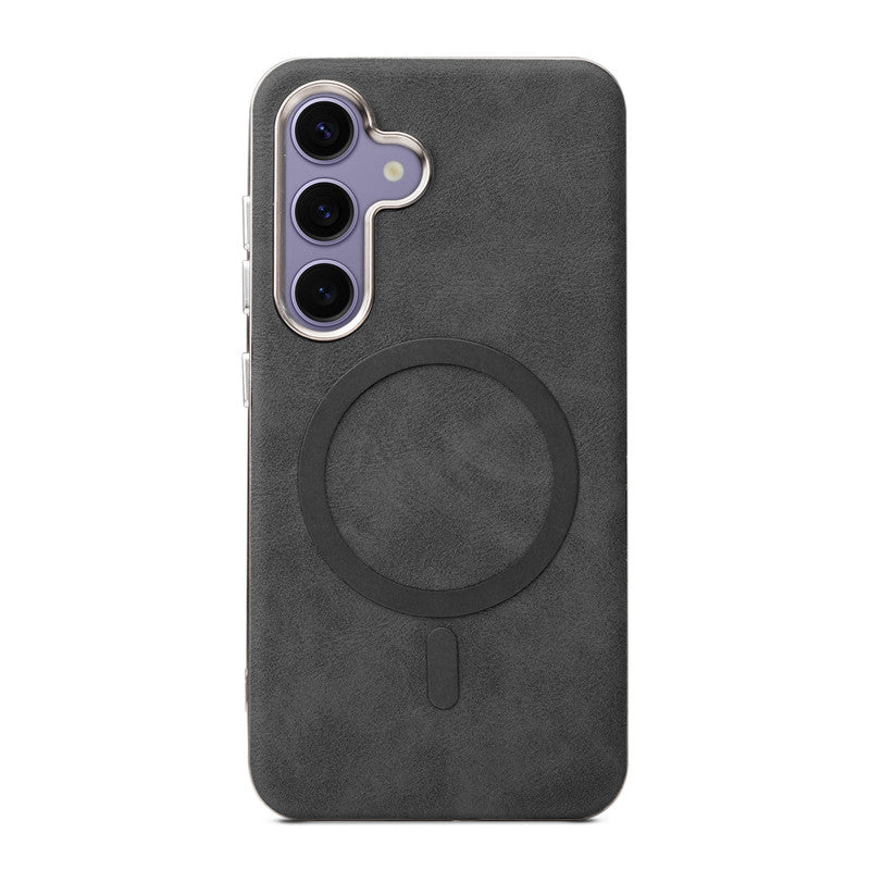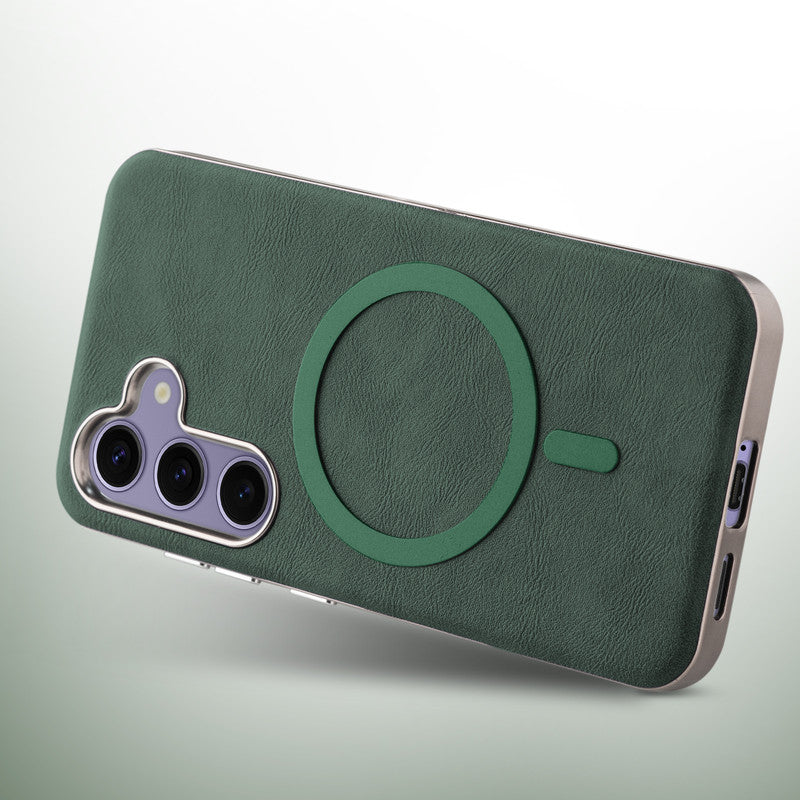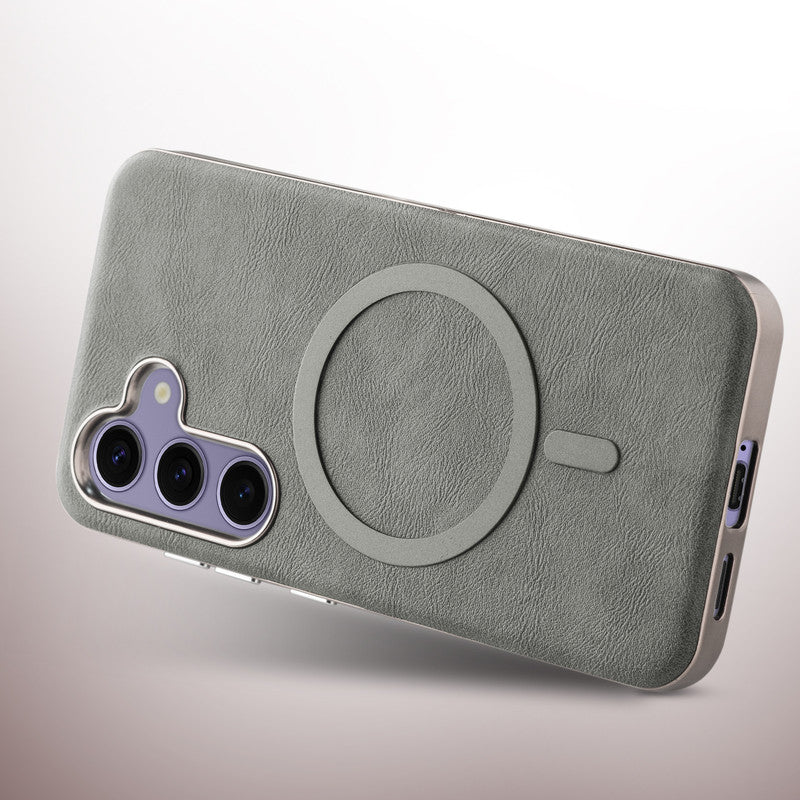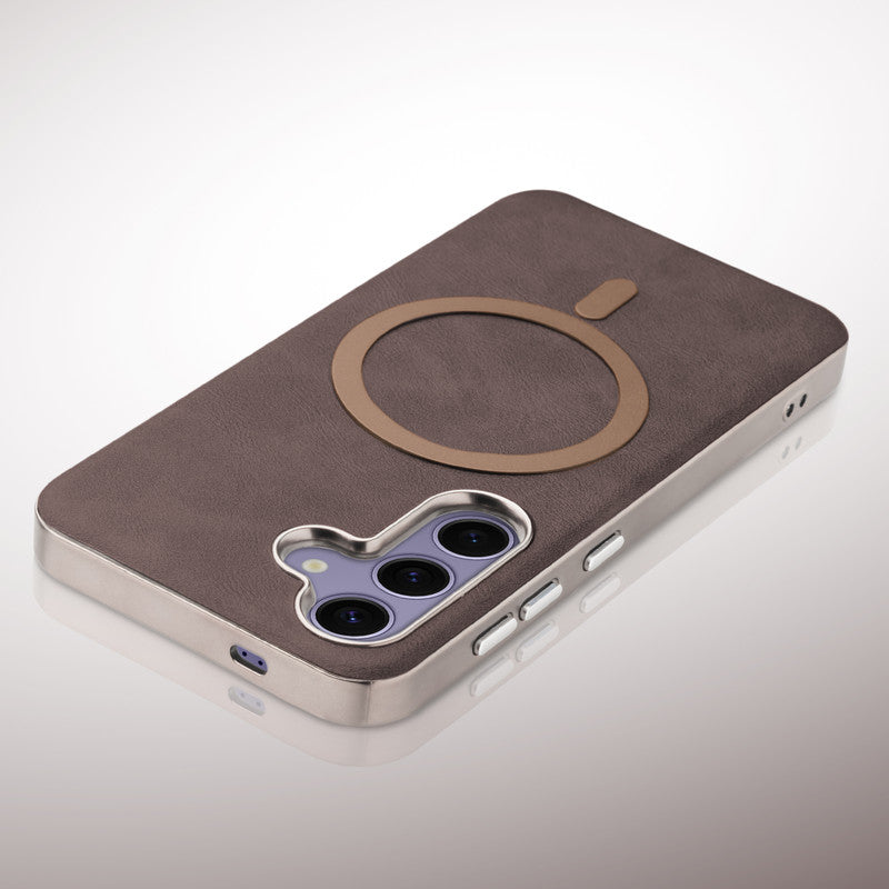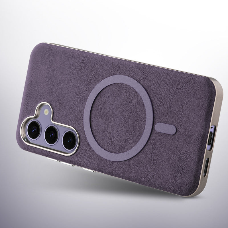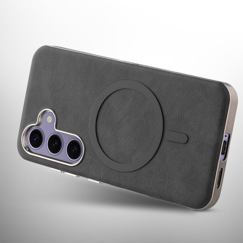Premium Faux Leather MagSafe Compatible Case for Samsung S25 5G With Metal Finish Edges