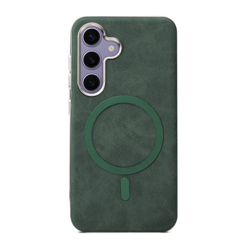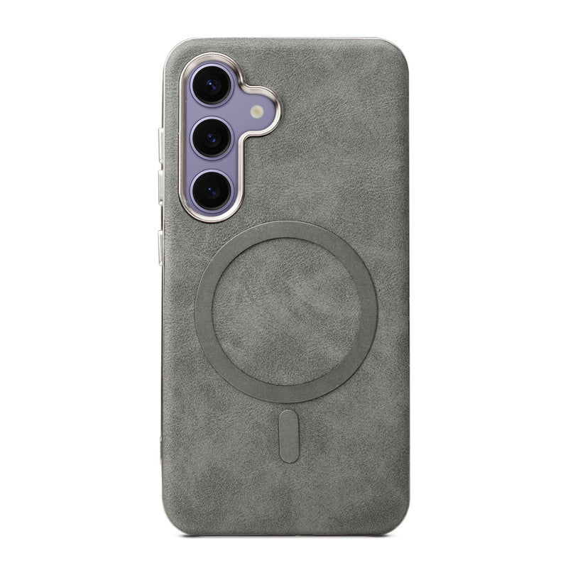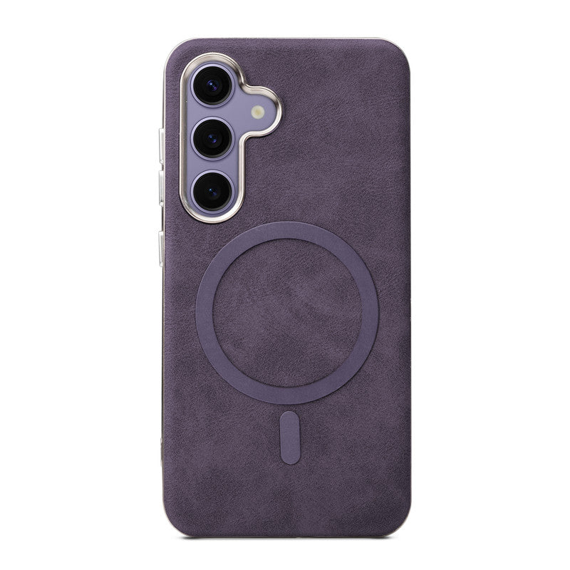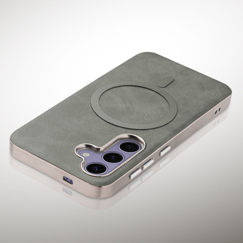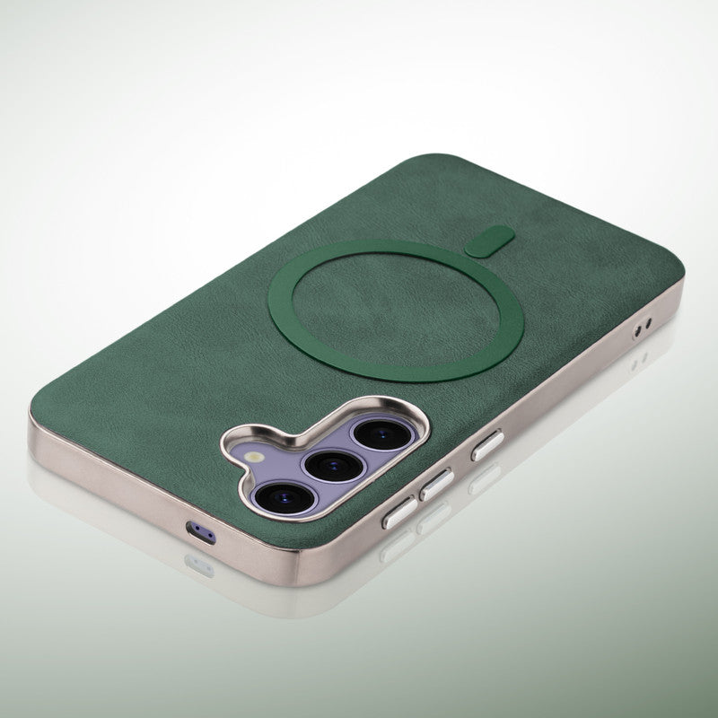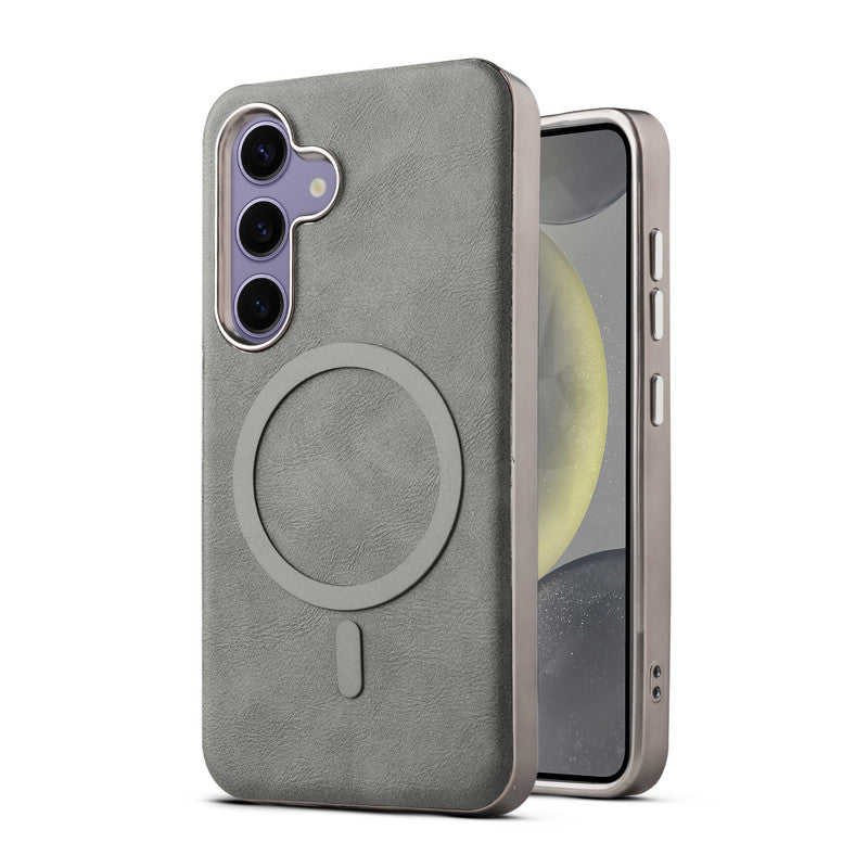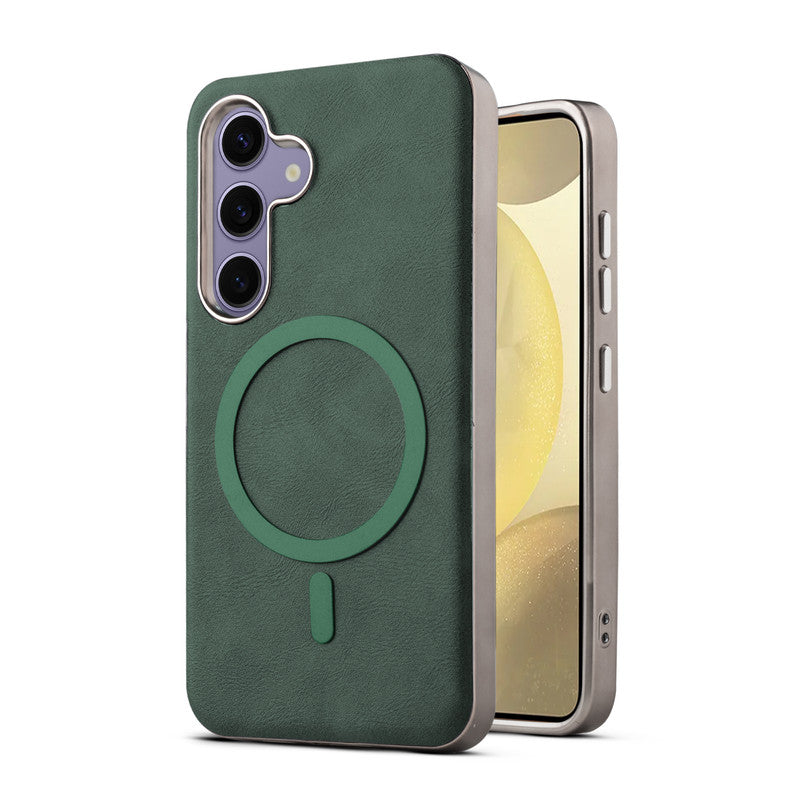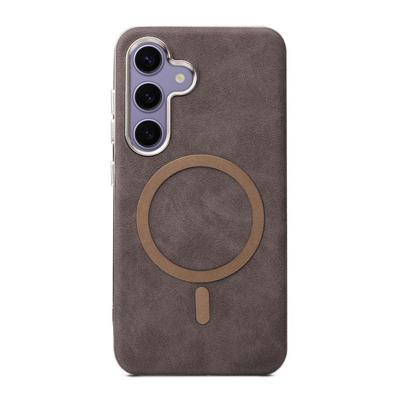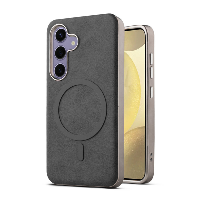 Premium Faux Leather MagSafe Compatible Case for Samsung S25 5G With Metal Finish Edges