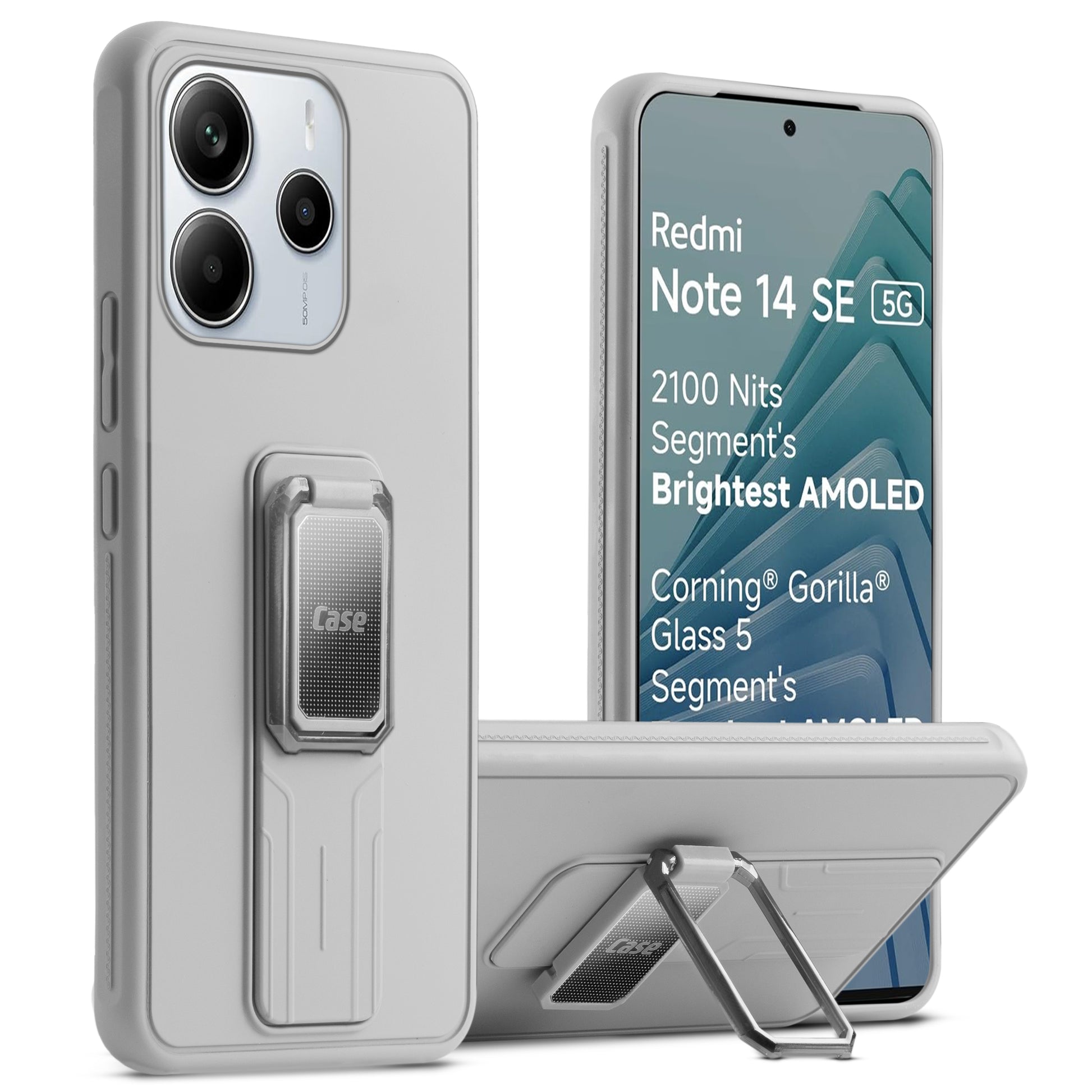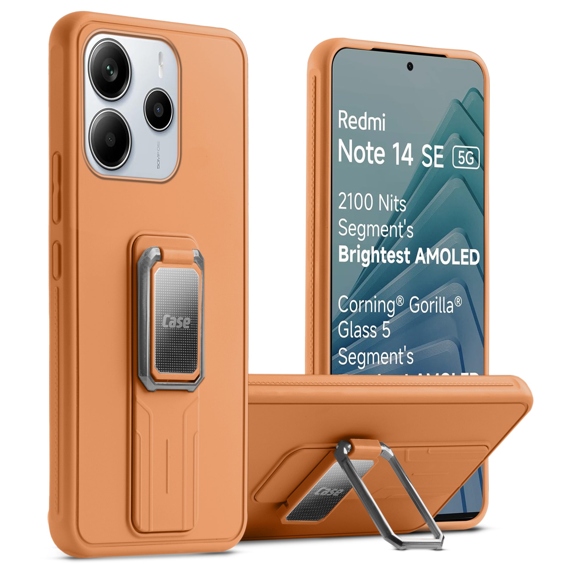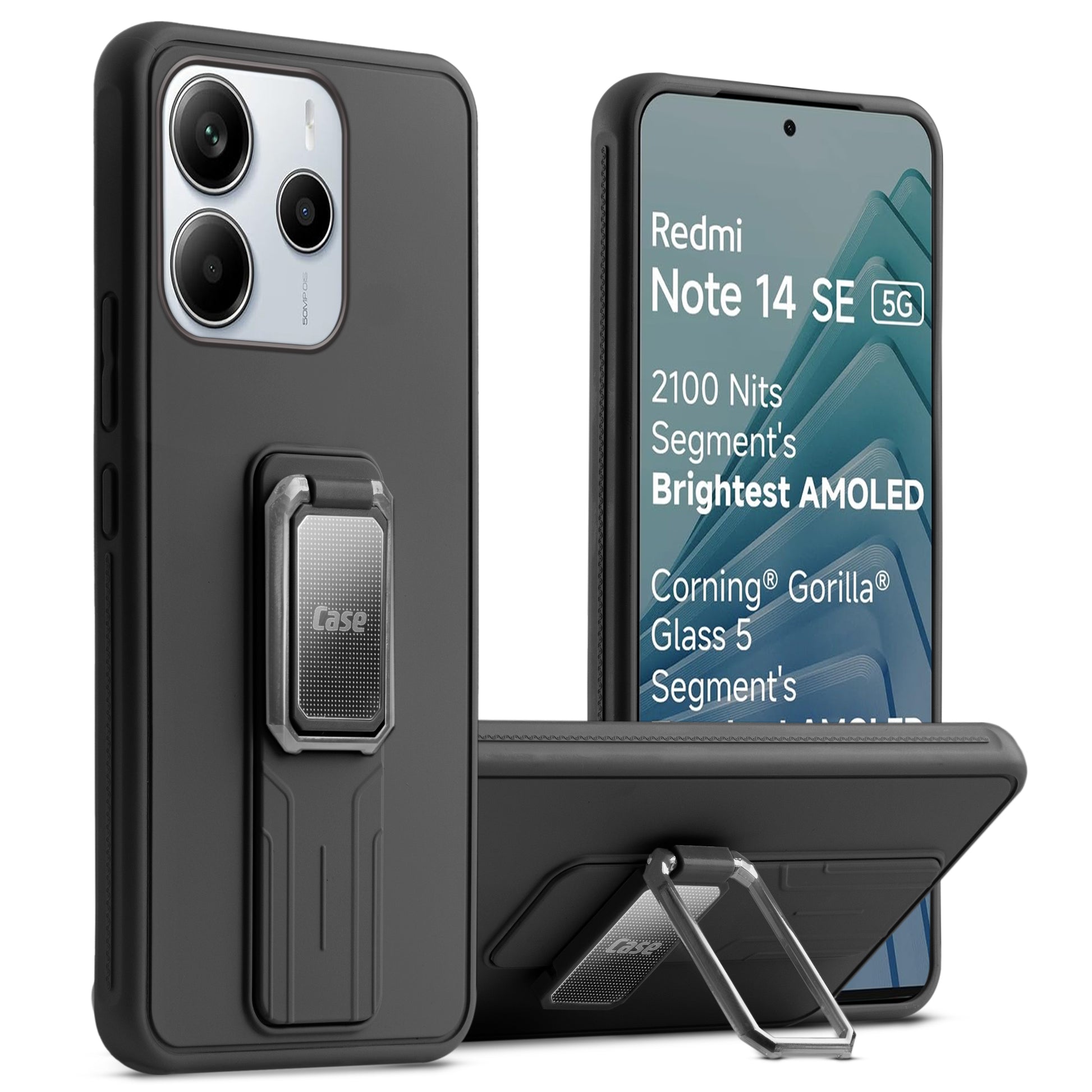 Premium Silicone Case with Metal Kickstand and Camera Protection Back Cover For Redmi Note 14 SE 5G