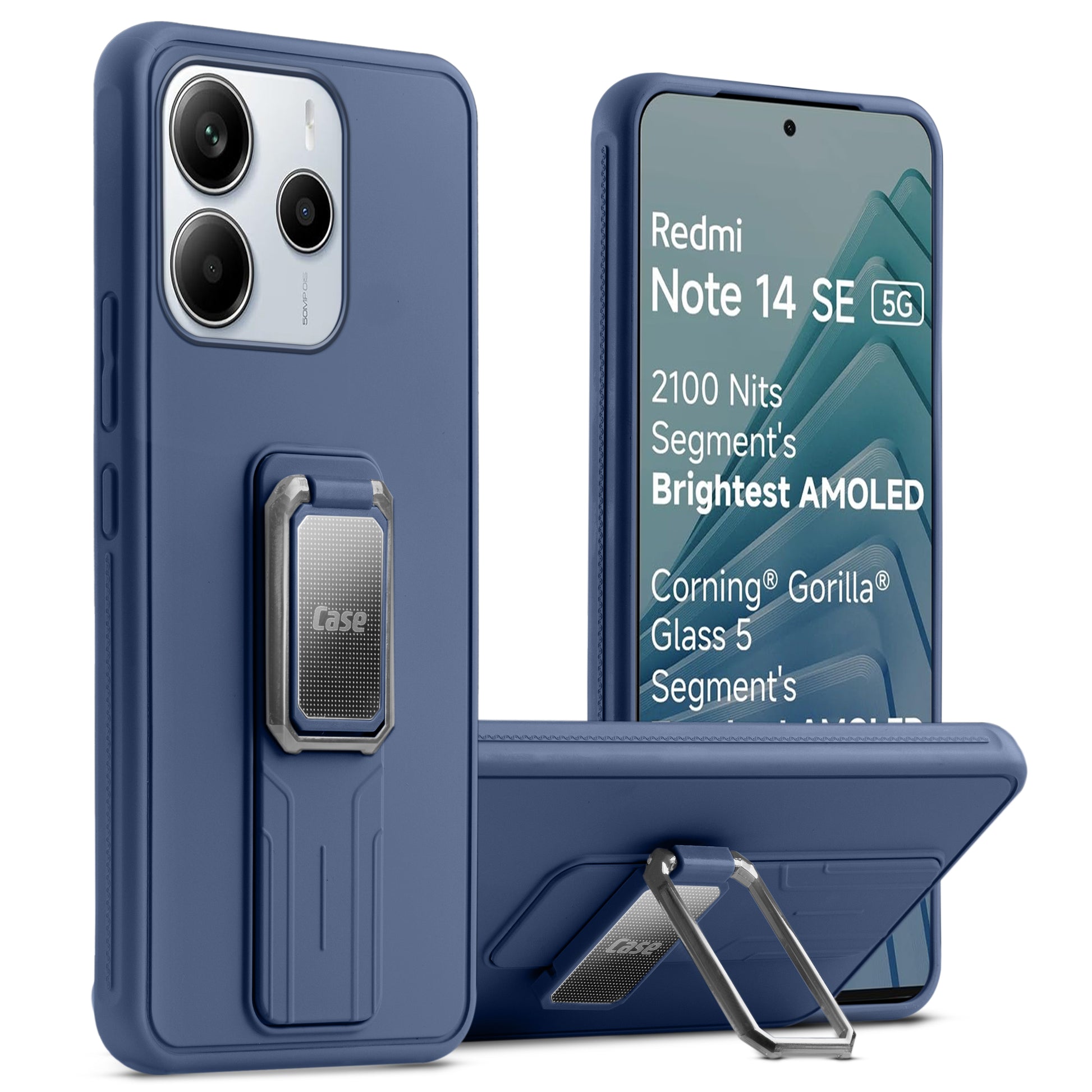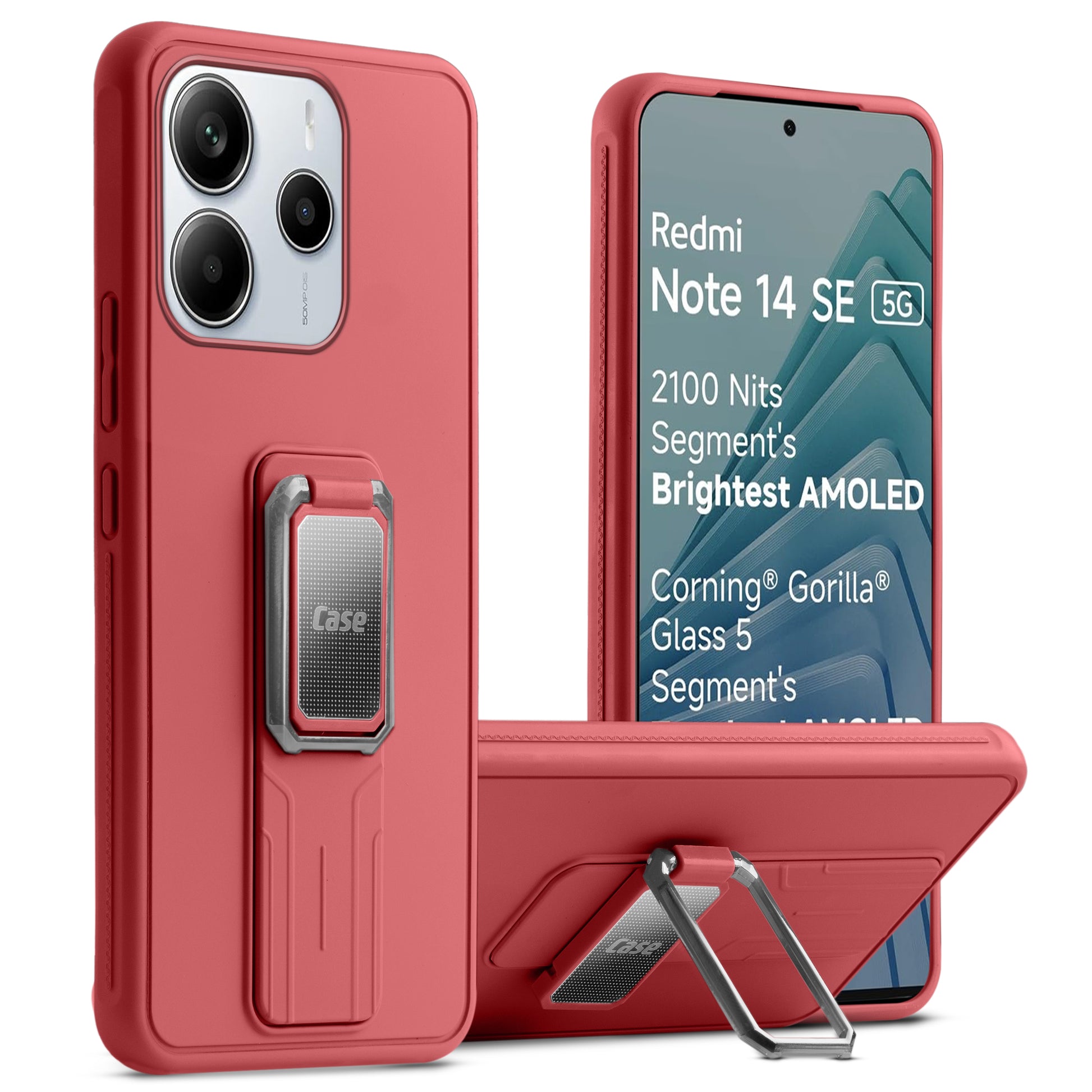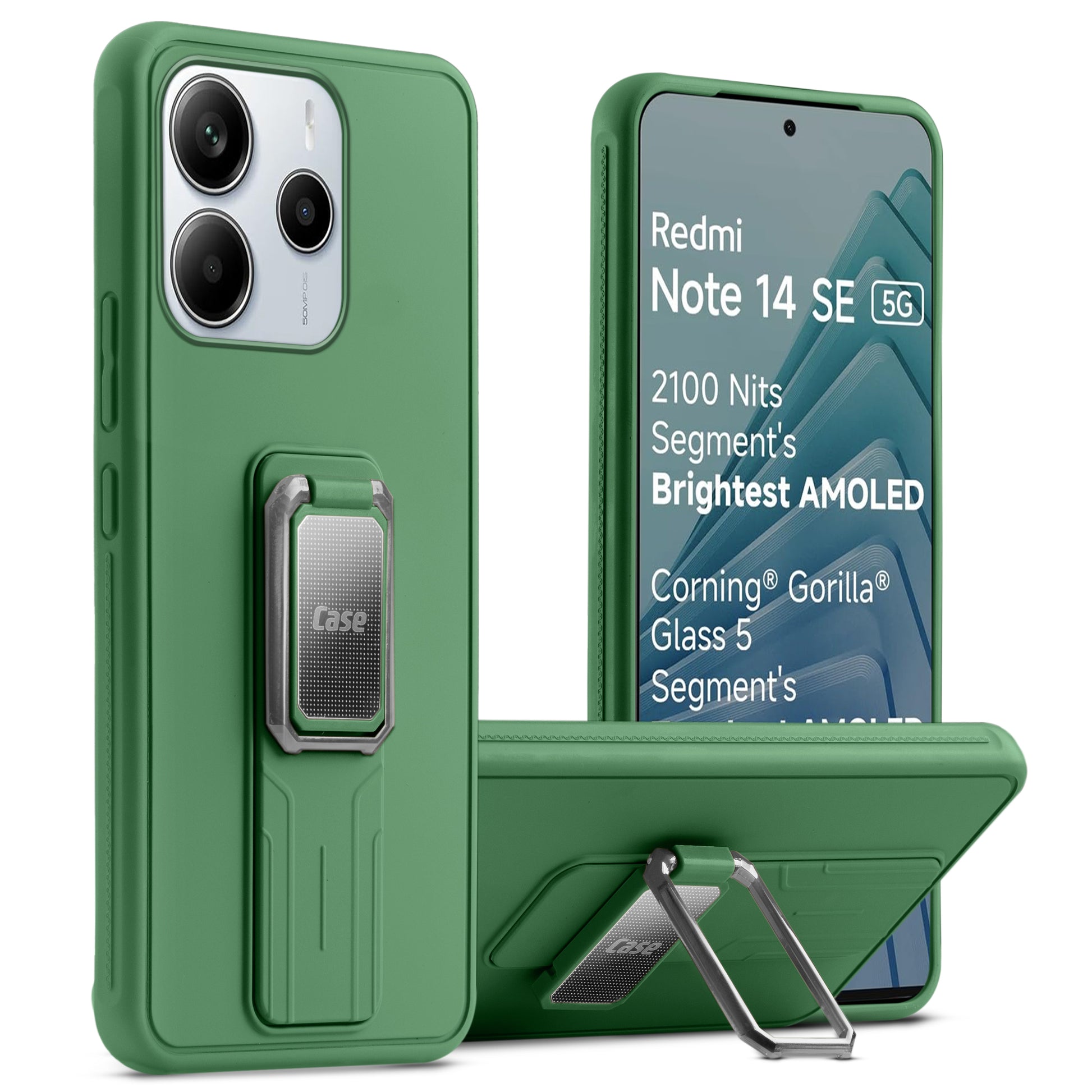 Premium Silicone Case with Metal Kickstand and Camera Protection Back Cover For Redmi Note 14 SE 5G