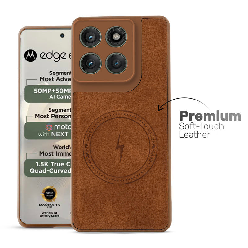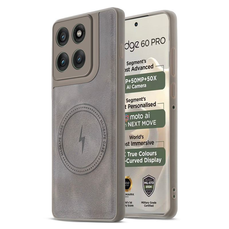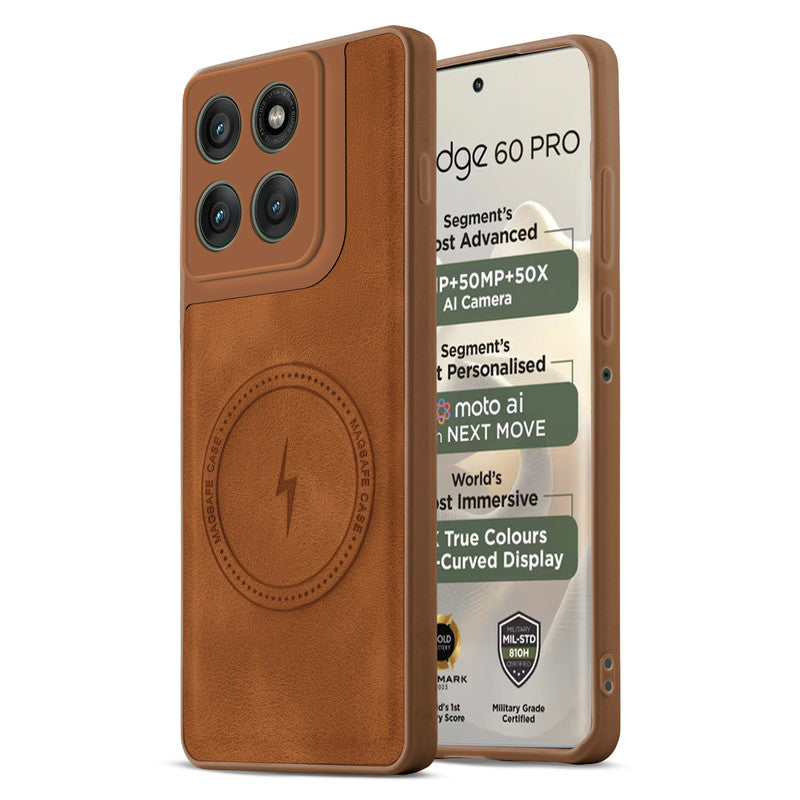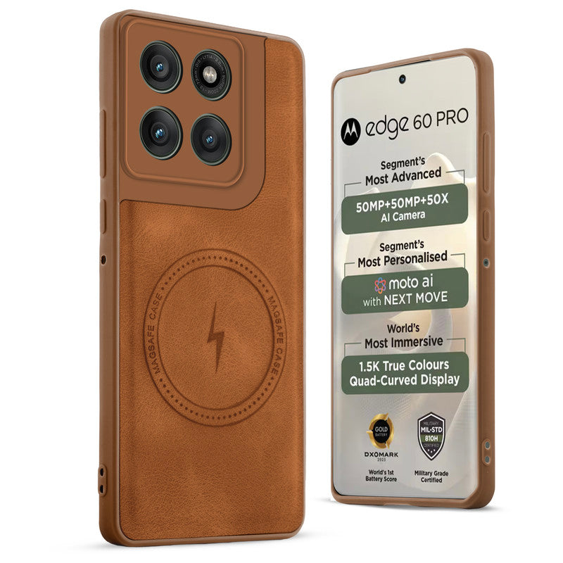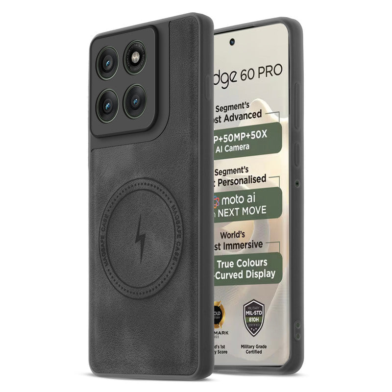 Refined PU Leather Case for Motorola Moto Edge 60 Pro 5G , with Support for MagSafe & Wireless Accessories