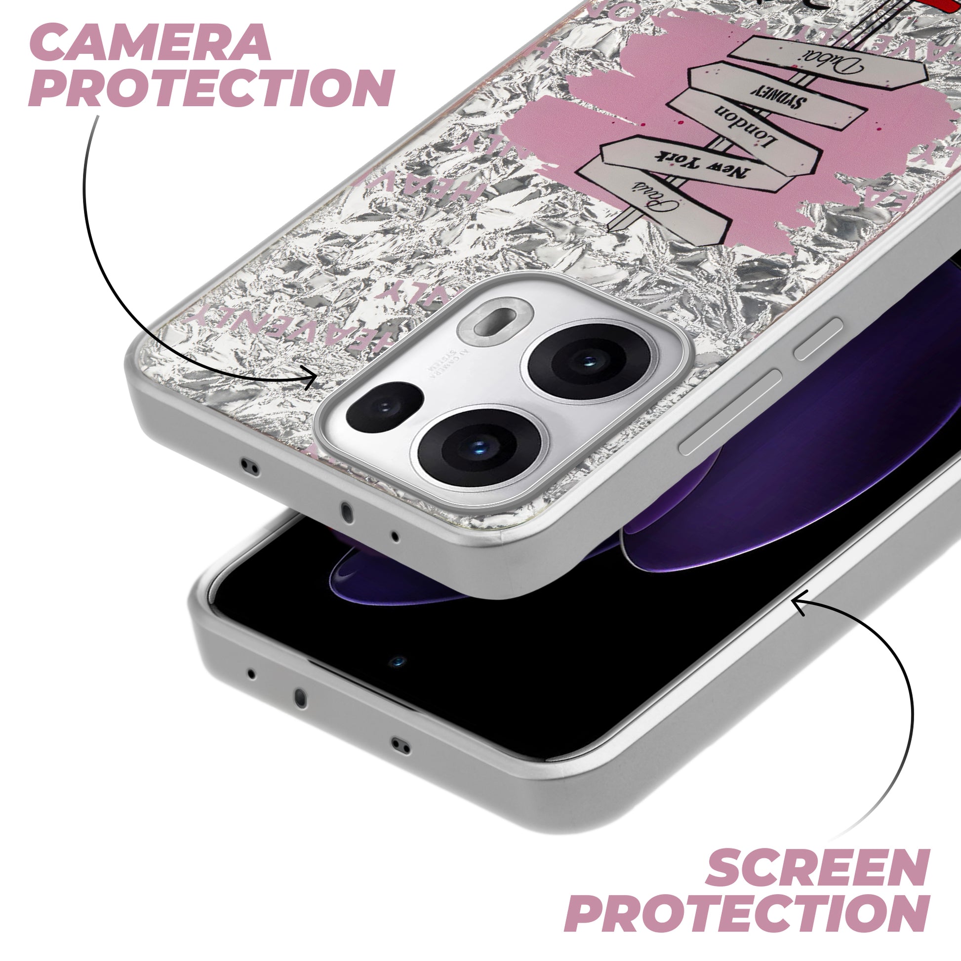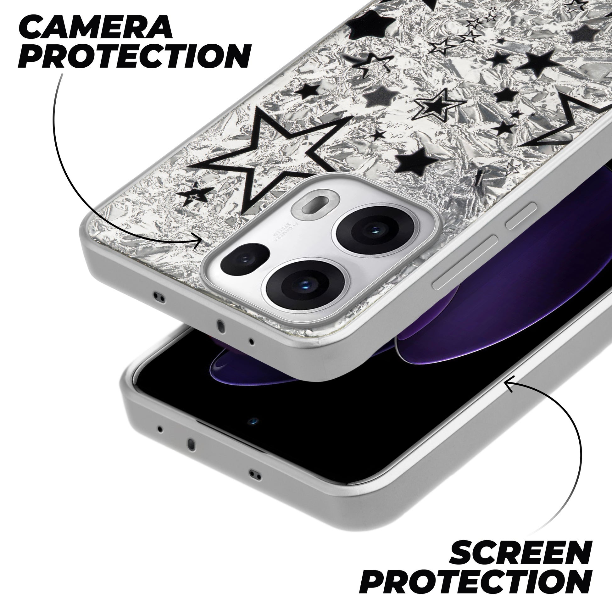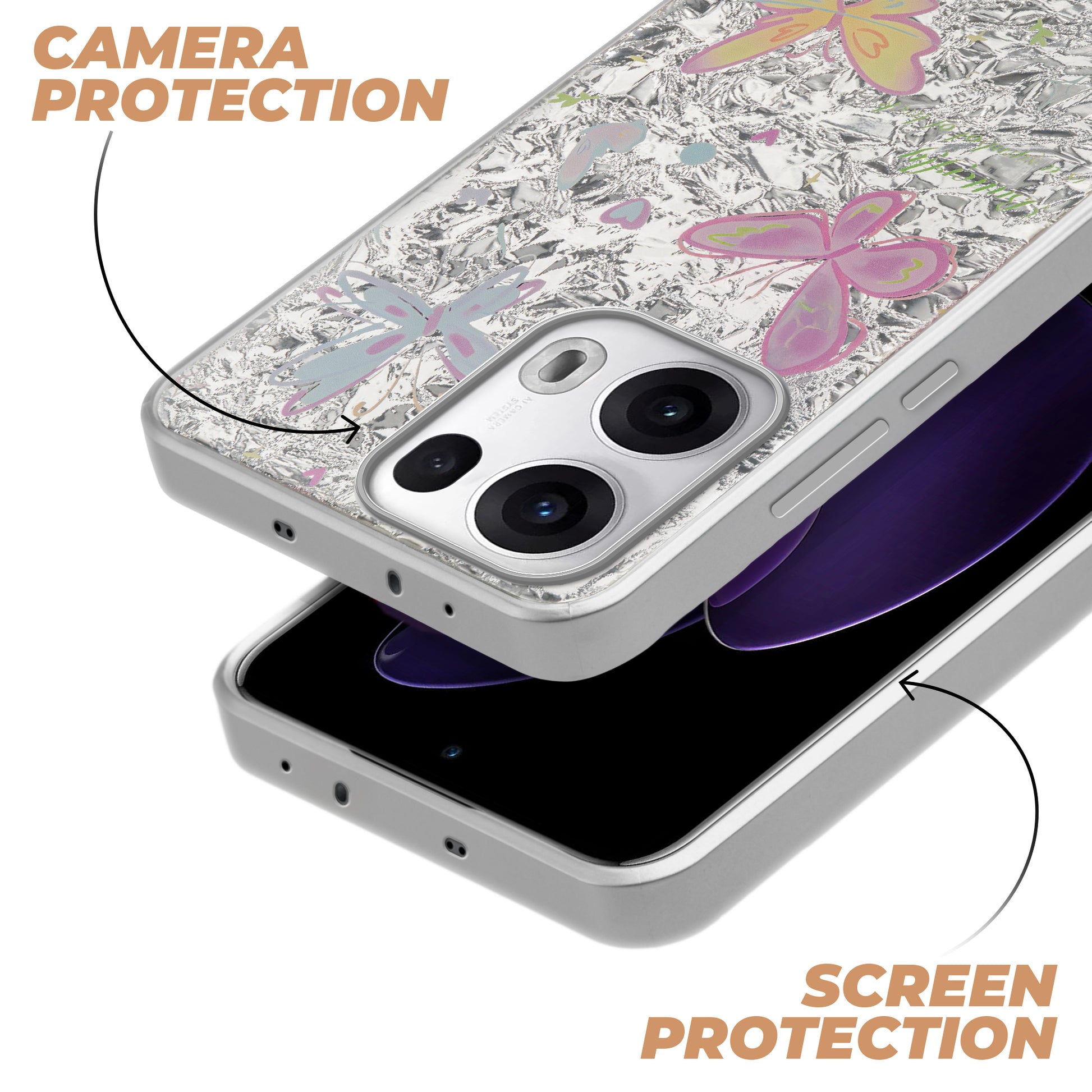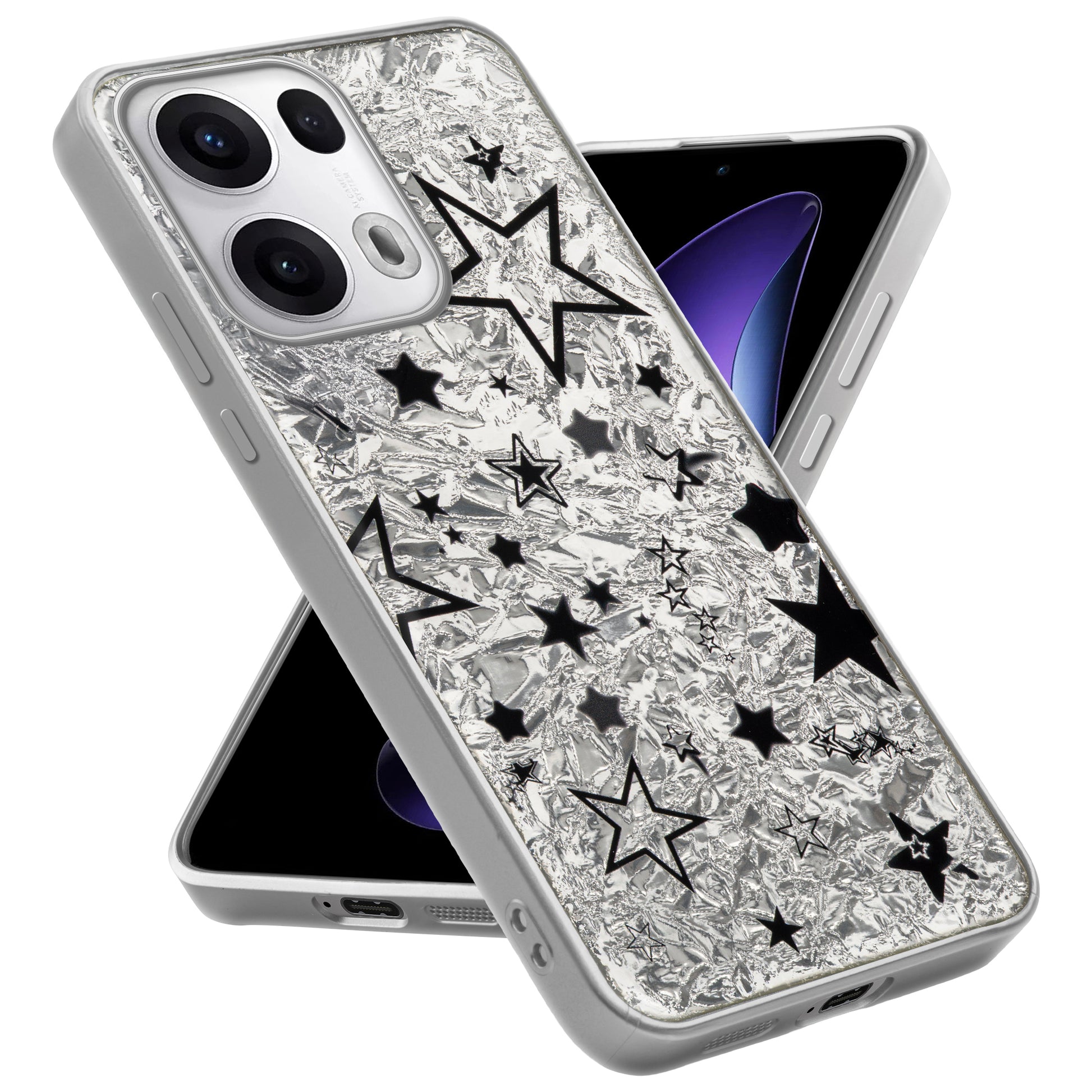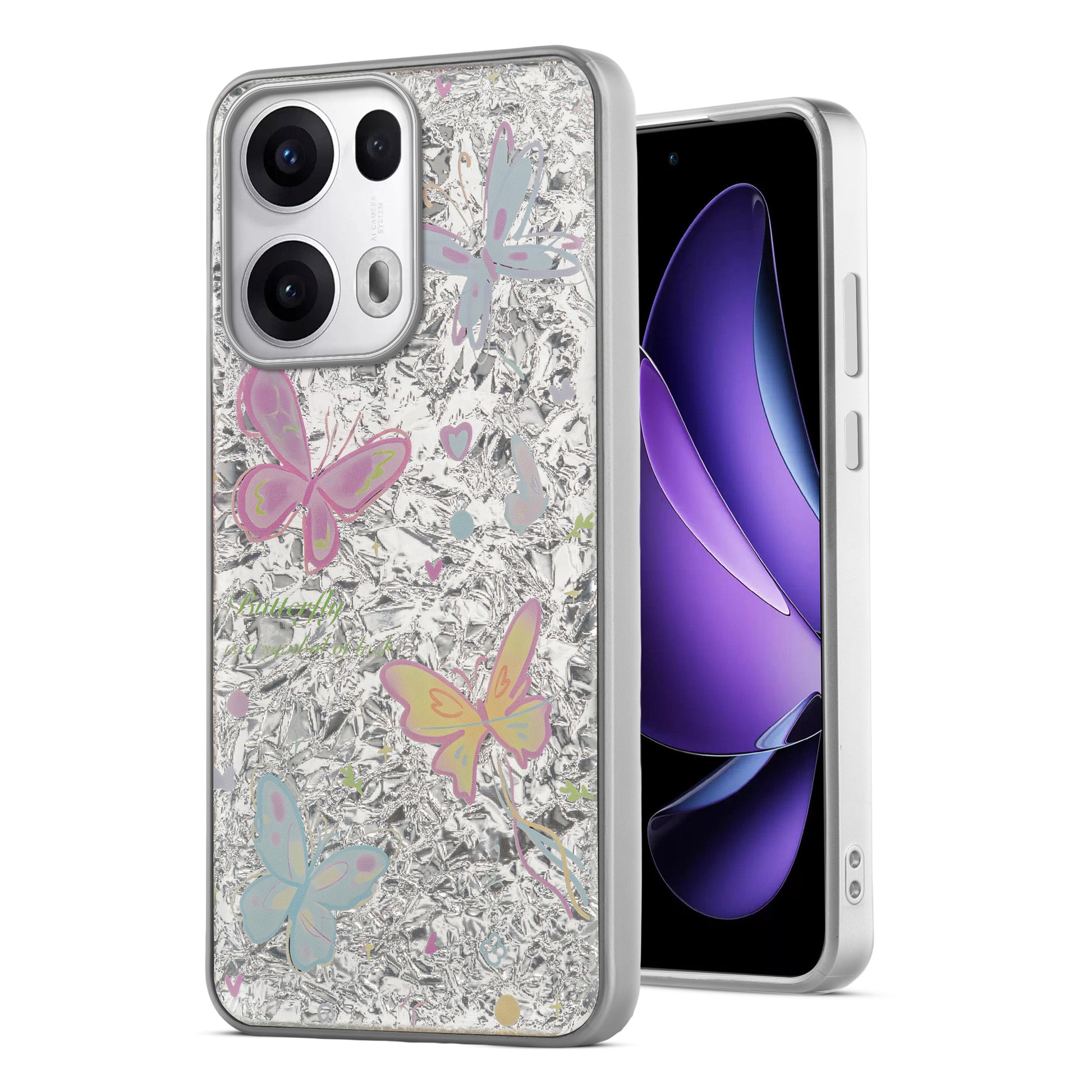 Shiny Foil Design Printed Back Case for Oppo Reno 13 Pro 5G With Soft Edges with Glossy Semi-Hard Back