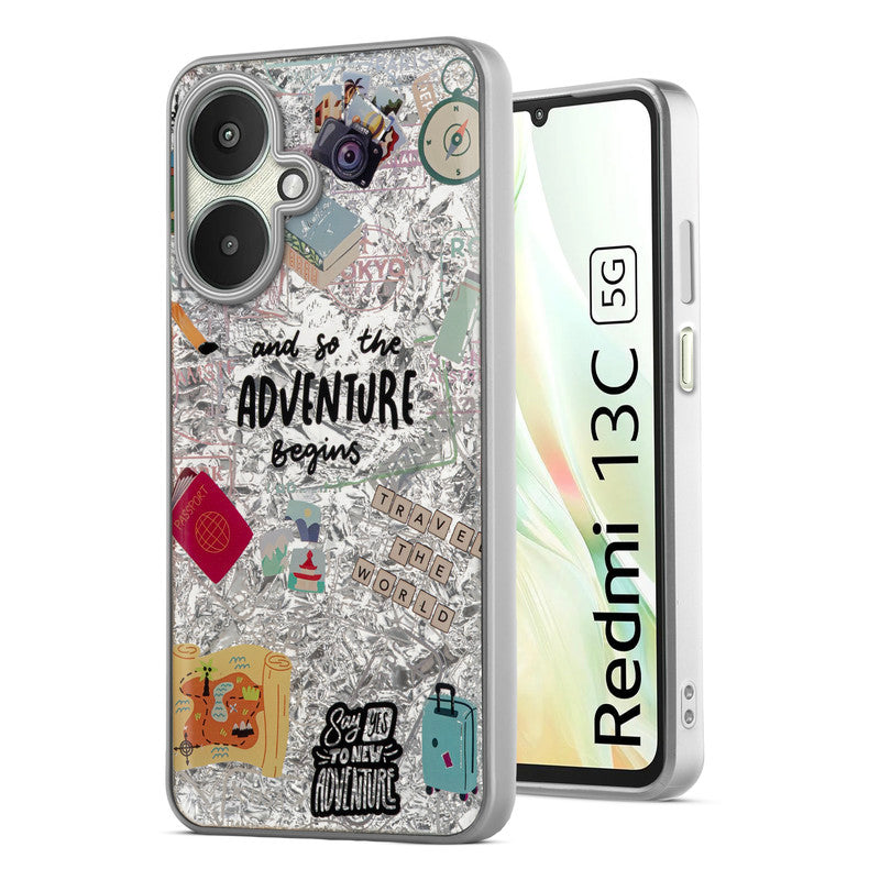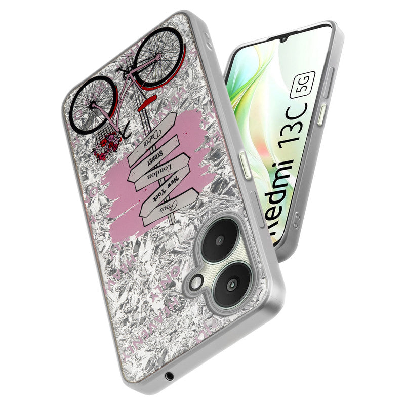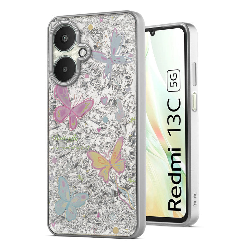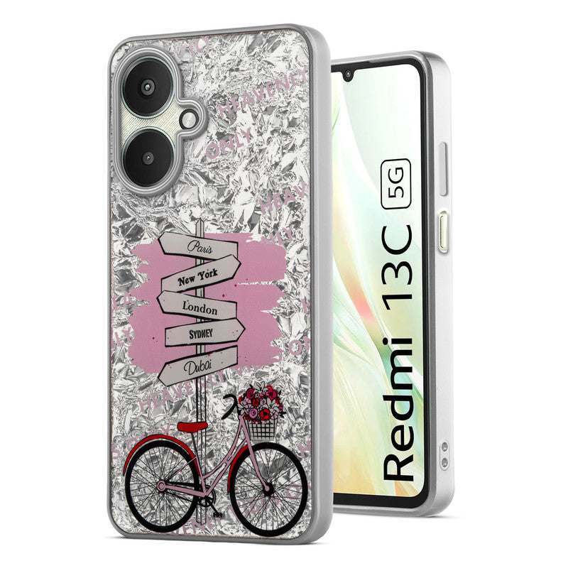 Shiny Foil Design Printed Back Case for Redmi 13C 5G With Soft Edges with Glossy Semi-Hard Back