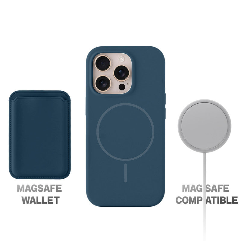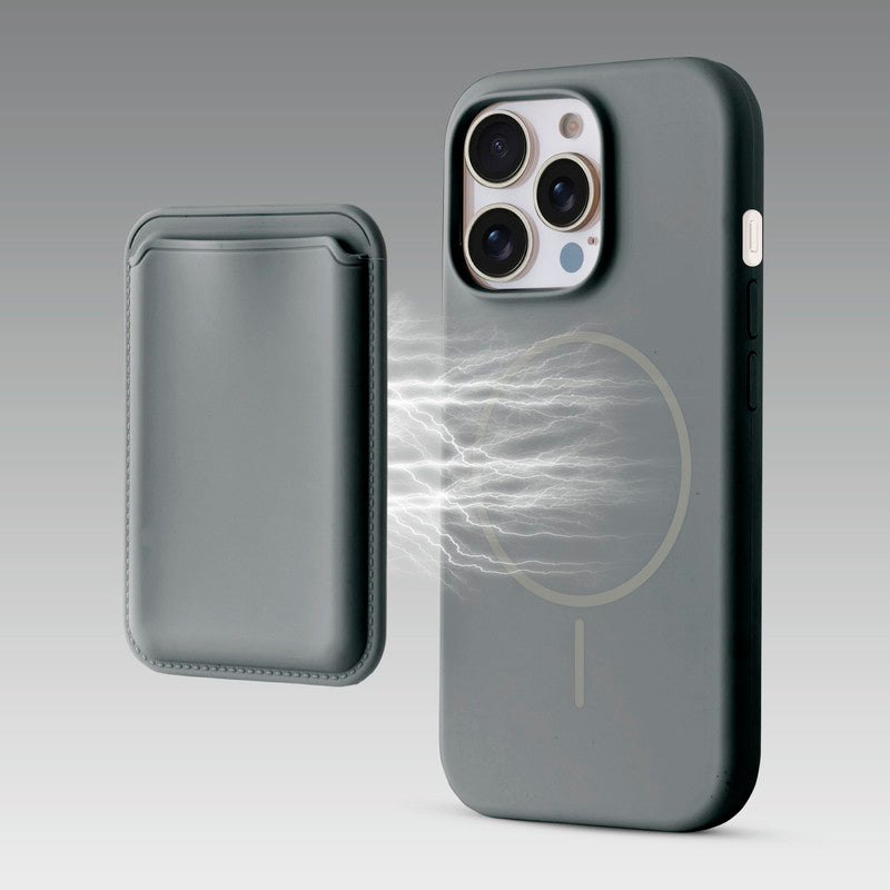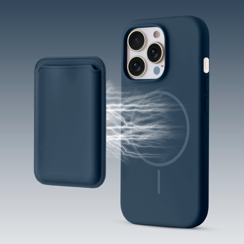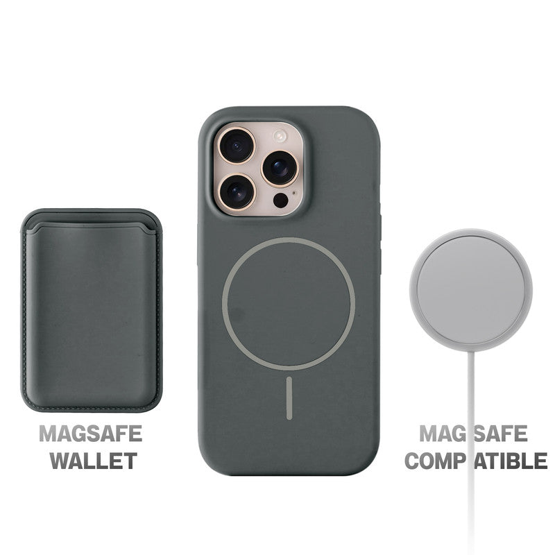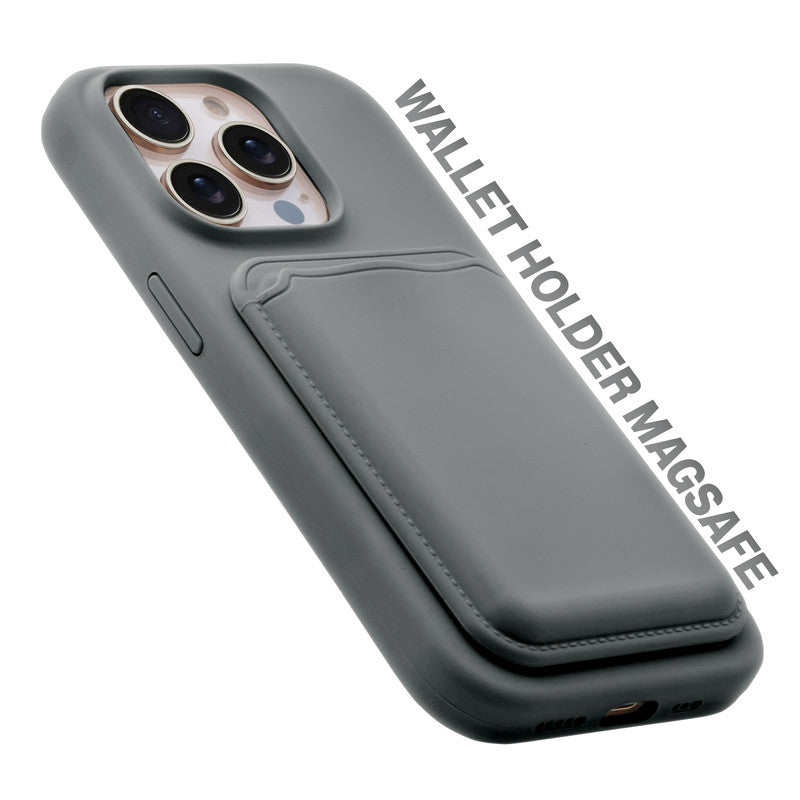 Silicon Magnetic Wireless Charging Back Case For Apple iPhone 16 Pro with Detachable Card Holder