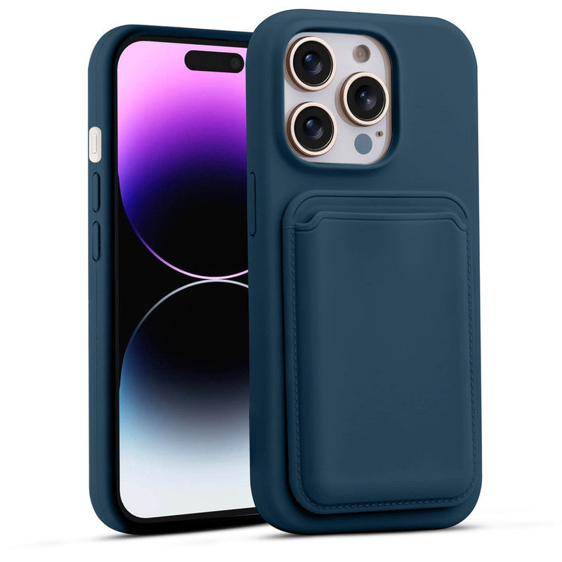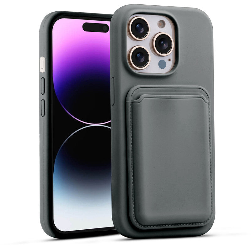 Silicon Magnetic Wireless Charging Back Case For Apple iPhone 14 Pro Max with Detachable Card Holder