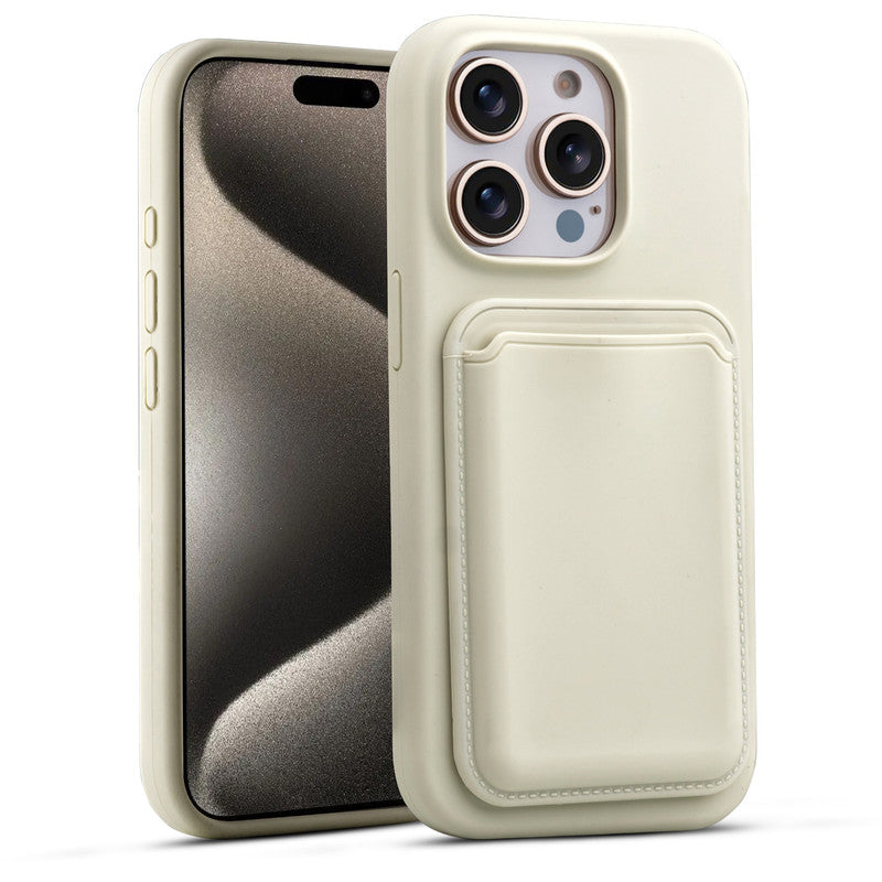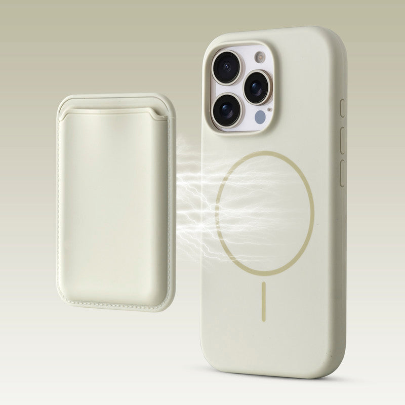 Silicon Magnetic Wireless Charging Back Case For Apple iPhone 15 Pro Max with Detachable Card Holder